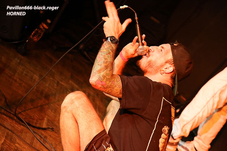 Dernier groupe de la journée voici maintenant les Marseillais de HORNED, et comme par hasard et selon le principe des vases communicants la salle se remplit à nouveau. Car bien entendu avec nos amis sudistes le beatdown est au programme cqfd. Leur tout nouvel EP « sigils » sous le bras ils vont bien entendu délivrer un set puissant et ravageur où se mélangent heavy beatdown et un certain black impur, combinaison impossible me direz-vous, mais pourquoi pas ! En tous cas leur (bonne) prestation a d’une certaine façon marqué les esprits ce soir dans l’oscar.