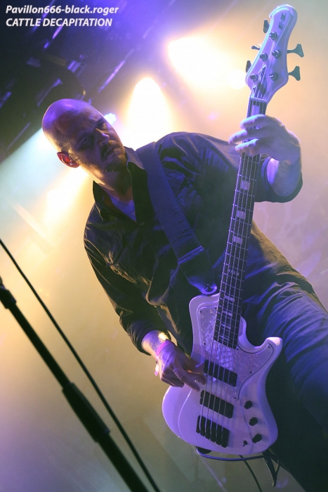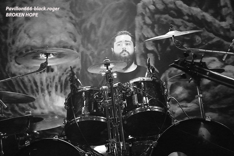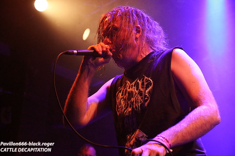 Ce soir les groupes vont défiler à vitesse grand « V » et ce sont les grindcoreux de GLORYHOLE GUILLOTINE qui vont ouvrir le feu dès 19 heures trente pour un set assez court, de 20 minutes. Ce quatuor nous vient de Lake Zurich dans l’Illinois aux « states », mais non de Zurich en Suisse. Ils sont tout fiers de nous présenter un nouvel EP intitulé « amalgamation » et ils ne nous font pas de cadeau en live, ça claque comme un coup de fouet et leur death/grind/power violence est rapide et percutant. Belle entrée en matière pour cette soirée qui s’annonce bien décapante dans tous les sens du terme, essayez de préserver ce qu’il vous reste de neurones ! J’étais impatient de revoir nos amis Transalpins d’HIDEOUS DIVINITY découverts lors d’un concert donné à Chambéry, Savoie, l’hiver dernier. Et je ne fus pas déçu du voyage « into death » au contraire ! Ils nous balancent des titres du nouvel opus « advientis » mais pas que. Ici on ne rigole pas et les Romains vont nous prendre à la gorge de façon brutale. Ces Italiens veulent monter sur le podium du métal extrême dans leur pays et ils possèdent ma foi tous les arguments pour y parvenir. Tirs tendus à boulets rougis, riffs vicieux, dissonances à la Behemoth, le char d’assaut est en route. Ajoutez à cela une présence incroyable sur les planches et vous obtenez un groupe qui a tout comprit au film du brutal death sans concession, une tuerie, aargh ! Et puis, et puis, nous allons encore monter d’un cran avec la venue sur scène là tout de suite, des death-metalleux de Chicago, vétérans de la scène extrême US, BROKEN HOPE. Et leur set va se révéler le plus mortel et accrocheur de cette soirée il n’y a pas photo. Combo présent sur la scène death depuis presque trente ans on ne présente plus ces bouchers du metal-de-la-mort-qui-tue, qui eux nous présentent un nouveau méfait en cette année 2017, son nom, « mutilated and assimilated » tout un programme je ne vous fait pas un dessin. Et en live notre matière grise en prend un coup, nos oreilles aussi. Quant à leur présence sur les planches elle est monstrueusement efficace. Tout est en place, tout est glauque, tout est d’une précision chirurgicale dans les envois, incroyable ! Comment ai-je pu louper ce groupe en concert depuis tout ce temps ? En tous cas ce soir nous nous sommes régalés avec leur brutal death millésimé et implacable. Les « ricains » de San-Diego en Californie, CATTLE DECAPITATION vont-ils pouvoir relever le défi après la tornade scénique de leurs compatriotes ? Oui, enfin pas tout à fait, car leur set se situe peut-être dans un autre registre plus progressif pourrait-on dire. Mais quand même après vingt années d’élucubrations sonores extrêmes, il était temps que ce groupe joue en tête d’affiche pour une tournée. C’est chose faite et ce soir nous apprécions leur démarche enragée et engagée, verte évidemment. Cattle Decapitation n’est pas content des agissements de notre belle société à mette à la poubelle et nous le fait savoir…brutalement en flirtant allègrement avec le grind et la power-violence. Et le calme avant l’orage chez eux c’est du death vicieux et malsain qui part dans tous les sens à l’aide d’accélérations inouïes. Chaud et froid donc, quand le réchauffement climatique s’attaque à la glace du pôle nord pourrait-on dire… Mais je m’égare, Cattle Decapitation arrive à décaper nos conduits auditifs de façon méchamment brutale mais en épiçant le tout de mélodies empoisonnées. Le public a bien adhéré ce soir et a même réclamé un rappel, exécuté bien sûr, merci les gars vous revenez quand vous voulez ! Excellente soirée passée au bord du Rhône à Genève. Merci à PTR l’usine, merci aux quatre formations en lice. Cette soirée valait bien un coup de cœur n’est-ce pas ? |