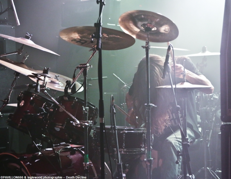 Un petit mot des deux premières partie. Death Decline de Dijon que j'avais déjà eu la chance de voir il y a quelques mois au Lezard'Os. Toujours aussi efficace et percutant, le thrash à la fois moderne et respectant les bases du style est impeccable. Mention spéciale au batteur, César, tout bonnement hypnotisant. Les batteurs modernes me stupéfient.
