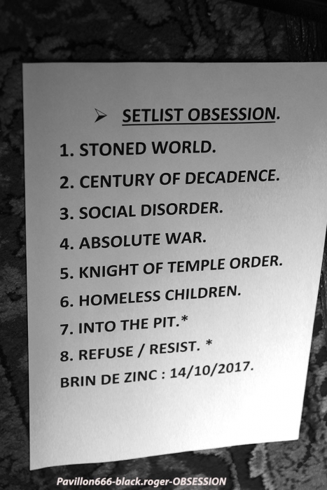 Allez, il faut bien commencer devant un public impatient qui est dans les « starting-blocks ». Alors ce sont les Jurassiens d’OBSESSION qui s’y collent. Un air de soirée agitée était dans l’air ce soir au Brin de Zinc, pourtant Obsession ne s’attendait pas à un accueil aussi chaleureux pour sa prestation. Et ce fut déjà un avant-goût de l’enfer métallique qui s’annonçait. A leur service un son à décorner un troupeau de buffles en rut, des lights percutants, des compositions et reprises qui font mouche et une présence indiscutable en live ont fait le reste. A savoir une ambiance déjà mouvementée qui ira crescendo tout au long de cette nuit en terres Savoyardes. Obsession en a surpris plus d’un ce soir et s’est surprit lui-même par tant de hardiesse motivante provoquée par une ambiance de « ouf ». Guitares en avant avec tricotages remarquables, rythmique implacable et frontman en pleine possession de ses moyens ont trenscendé la prestation heavy-thrash musclée de ceux de Lons-le-Saunier, on n’en revient toujours pas. Sûr que leur album « century of decadence » fera un malheur dans vos salons lors de sa sortie officielle le 16 Décembre prochain « at-home ». Set-list en photo. La salle est blindée maintenant et nombreux sont ceux qui se pressent devant la scène afin d’en découdre avec la prestation de ceux de la « hiaute » les death-thrasheux de SHAYTAN. Le set commence donc avec une agitation peu commune dans la salle et le groupe sent bien vite qu’il va falloir se dépasser car la demande est là, forte et urgente. Et Shaytan se déchaîne alors pour un set de toute beauté et incroyablement vivant ça fait plaisir à voir et à entendre. Et puis, et puis tout se mélange entre scène et public dans la joie, la sueur et une agitation hors-contrôle, c’est le défoulement innatendu. Première fois que je vois les métalleux Annéciens presque dépassés par les événements. Mais le groupe assure et a de la ressource pensez-donc ! Du coup les titres prennent une autre dimension, si si, c’est vraiment incroyable ce soir avec ce public de folie, poussez-donc les murs du Brin de Zinc car il va imploser ! Merci Shaytan tout est maintenant prêt pour accueillir la tête d’affiche, l’ambiance déjantée est là bien installée, happy birthday D’jé ! Set-list en photo. Ramassez vos godasses et vos portables jonchant le sol car maintenant, c’est au tour des Parisiens SUBLIME CADAVERIC DECOMPOSITION de venir vous réduire la matière grise en mayonnaise, je ne vous fait pas un dessin. Avec son nouveau « méfait » sous le bras intitulé « raping angels in hell », SCD ne va pas faire dans la demi-mesure ce soir, âmes sensibles s’abstenir, l’ouragan installé dans un brin de Zinc en fusion va se transformer en tsunami et la vague du public va venir s’écraser régulièrement contre la scène des lieux. Et puis tout va partir en live avec même un « wall of death » peu habituel dans cet endroit, incroyable ! Il faut dire que ce trio de grindcore n’est pas né de la dernière pluie extrême et sait nous bousculer l’esprit à l’aide de compositions farouchement déjantées et implacables en live. Voici donc des instruments sur-boostés, une voix de goret et le tour est joué, inutile de résister le son puissant est là pour contribuer à vous déboiter les nuques, alors ion suit le mouvement, on suit les slams même celui du frontman et on se rejoint sur scène dans la chaleur du grind, la bonne humeur communicative, une boisson houblonnée à la main, que demander de plus, un must vous-dis-je ! Tout a été dit (ou presque) dans cette petite chronique d’une nuit dérangée et agitée comme on aime. Merci aux organisateurs, merci aux musiciens et merci au public bien entendu, on recommence quand ? |