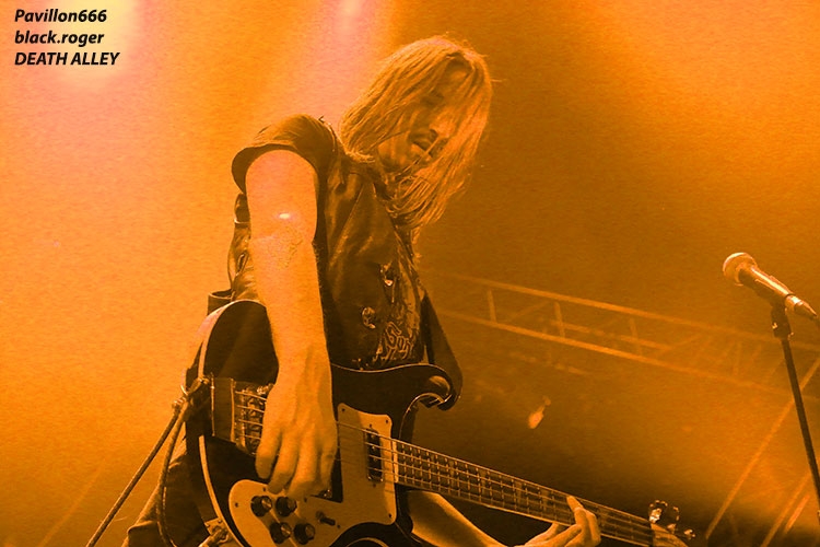 Quelle belle étape de la tournée Européenne pour le public Lyonnais ce Mardi 24 Octobre, heavy-rock à tous les étages, mais pas que ! Cela dépendra de chaque formation présente sur les planches ce soir. On commence à 20heures 20 précises avec la venue sur la grande scène des lieux des Bataves du groupe DEATH ALLEY. Ils mettent pied au plancher d’entrée de jeu sur une dynamique hard-rock seventies. Ici point de folle originalité mais une énergie bien sentie et un côté psyché bien vu. Ici bien entendu nous apprécions certains relents de Motörhead, Black Sabbath, Led Zeppelin, MC5 et au hasard des compositions nous retrouvons aussi l’ombre du légendaire Jimi Hendrix dans certaines sonorités guitaristiques. Ceux d’Amsterdam ne donnent pas dans la demi- mesure et les musiciens tiennent bien la route d’un certain revival qui permet notamment un flash-back pour les plus jeunes, n’ayant pas connu l’époque en question, la puissance de feu en plus C.Q.F.D. Avec seulement quatre années d’existence et plusieurs enregistrements, splits, album et live, ce quatuor formé par l’ancien guitariste de The Devil’s Blood, Oeds Beydale a su tirer son épingle du jeu, preuve en est ce soir avec un show bien réussi. Avec le duo teuton de MANTAR nous entrons dans une autre dimension, certaine binaire à souhait, mais plus orientée sludge, doom, occulte, voire black-metal. Un duo qui va en surprendre plus d’un, moi le premier. Tout d’abord il ne faudra pas tomber dans le piège « en duo c’est mode actuellement » car Mantar fut sûrement l’un des premiers à utiliser cette formule réduite afin de nous propulser, la technologie actuelle aidant, un monde sonore où tout est permis (ou presque) dans ce monde rock-metal et plus si affinités. Ceux de Hambourg vont nous emmener dans un certain enfer glauque et occulte avec notamment les growls du guitariste Hanno soutenu à merveille par son compère Erinc à la batterie, batterie monstrueusement efficace surtout dans des binaires plombés. A l’aise entre thrash riffu, sludge boueux et dirty punk, notre duo germain nous a plaqué contre les murs de l’Epicerie Moderne ce soir, qui l’aurait cru ? En tous cas leur set a laissé au fond de mes neurones une empreinte indélébile. Le trio heavy-rock d’outre-rhin lui aussi, KADAVAR, semble ne plus rien avoir à prouver en matière de revival rock-psyché des fameuses années 70 riches en expérimentations ayant donné une certaine couleur psychédélique au rock, et pourtant. Oui, pourtant Lupus, Simon et Tiger semblent avancer à chaque album et à chaque concert dans un certain chemin de reconnaissance, rejetant par là même la notion de plagiat des groupes d’époque du point de vue musical mais aussi par leur « look », enfonçant le clou de leur démarche. En ce moment le trio de Berlin tourne afin de nous proposer leur 4ème album intitulé « rough time », alors ce soir profitons encore une fois du spectacle audio-visuel qui nous est offert. Kadavar en live ne se refuse pas, leur mélange très étudié de sonorités rétro, de passages sombre et psychés est bien contrebalancé par une certaine puissance sous-jacente, un son Kadavar est né tout simplement et nous allons le constater en live aujourd’hui à l’Epicerie Moderne de Feyzin. Faire du neuf avec du vieux n’est pas donné à tout le monde, mais le trio Berlinois semble avoir réussi sa recette tout simplement, on apprécie. Réussite donc pour cette affiche de choix proposée aux lyonnais ce mardi 24 Octobre. Une affiche ayant attiré une foule de passionnés de heavy-rock qui avait bien compris l’enjeu de cette date peu commune chez-nous. Merci donc aux organisateurs, l’Epicerie Moderne, pour son « à propos » nous reviendrons. |