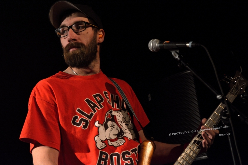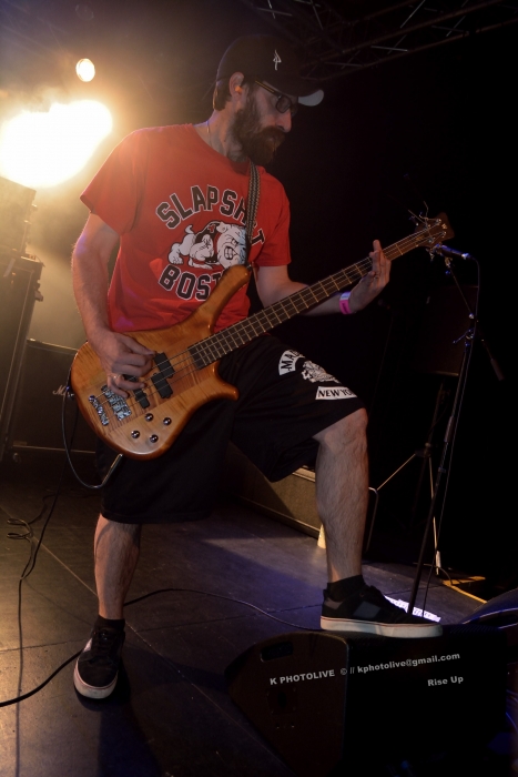 Ce concert, un mercredi soir, attendu avec impatience depuis des mois, par les passionnés de hardcore à l'ancienne, pur et dur, aura connu une affluence honorable. En effet, plus de 200 personnes se sont déplacées pour cette soirée, alors qu'on redoutait une désaffection plus marquée. Un public assez jeune, voire très jeune, s'est défoulé pendant trois heures dans la grande salle de la Tannerie de Bourg-en-Bresse. Dès 19 h 30, RISE UP, une formation toute récente (2016), mais qui a déjà trouvé sa place dans la galaxie punk-hardcore des régions Bourgogne et Rhône-Alpes, est à la fois fière et heureuse d'ouvrir la séance comme unique groupe de première partie. Nos quatre amis, Chris au chant, Guillaume à la batterie, Olivier à la guitare et Xavier à la basse, se préparaient depuis longtemps à cet événement. Le ton est donné d'emblée, la voix puissante et la présence scénique de Chris qui arpente la scène de long en large, son sens de la communication avec le public auquel il se mêle volontiers, contribuent grandement à déclencher un pogo endiablé au centre de la fosse, d'abord modeste en nombre, puis rapidement plus étoffé. Une vingtaine de titres courts vont se succéder pendant une bonne demi-heure. Les thèmes traités, souvent sans concession, se rattachent à l'actualité et aux faits de société, les titres explicites, les chansons courtes dont le côté rebelle et anticonformiste, parfois carrément punk, n'est pas absent, ne laissent personne indifférent. Les commentaires entre deux morceaux ne sont pas neutres. Soulignons également que les nostalgiques d'EXPLOITED auront droit à un morceau spécial. Les titres « On the stage » et « Résistance » susciteront une émotion particulière en même temps qu'une réaction tangible dans l'assistance, « ça brasse dans la fosse ! » Applaudissements nourris. Enfin, ne sous-estimons pas le rôle actif joué sur scène par Gabin, le fils de Chris, un enfant de 10 ans au talent prometteur. Le quartette RISE UP peut être satisfait et rassuré, leur prestation de ce soir mérite la mention « bien ». Une longue pause permet à chacun de gagner la salle du bar et / ou d'échanger ses impressions sur les nombreux concerts de metal ou de hardcore qui sont proposés dans la région en cet automne 2017. Il n'est pas loin de 21h lorsqu' enfin les cinq artistes d'AGNOSTIC FRONT se présentent sur scène, chaleureusement applaudis par un public largement acquis à leur cause. Le frontman et chanteur, Roger Miret , délivre un message à l'adresse des présents, comme s'il cherchait à les convaincre, mais de quoi ? Déjà les gens sautent, dansent, crient...On sait à quoi s'attendre avec les New-Yorkais. Peut-être n'est-il pas inutile de rappeler brièvement le parcours d'AF, parrain du NYHC old school, fondé au tout début des années 80 , sous l'impulsion du jeune Vinnie Stigma, guitariste...et toujours actif en 2017. A l'époque on parlait de « punk sale et radical », en lutte contre « les skins extrémistes ». Les biographies évoquent une sorte de devise du groupe, rejoint en 1982 par un jeune gars de 18 ans, Roger Miret. « Respect, fierté, honneur et partage », telle était cette devise (reprise par d'autres).En 1984, ils se font connaître en publiant « Victim In Pain ». Une parenthèse de six ans (1992-1998) permettra à un autre groupe de voir le jour, il s'agit de 25 TA LIFE. Une quinzaine d'albums seront produits au cours de ces décennies, les plus notables sont « Warriors » (2007), « My Life, My Way » (2011), « The American Dream Died » (2015). Rappelons qu'ils sont très proches à plus d'un titre de MADBALL et SICK OF IT ALL, assez proches de HATEBREED et des Allemands de HEAVEN SHALL BURN, et qu'ils ont joué notamment au SYLAK en 2013 et au HELLFEST cette année. Leur line-up actuel est le suivant : Vinnie Stigma à la guitare (le plus âgé), Craig Silverman (depuis 2014), Mike Gallo à la basse arrivé en 2000 (le plus jeune), Pokey (2009) à la batterie et bien entendu Roger Miret au chant depuis 1982, vaillant quinquagénaire ! Le charisme de Roger Miret n'est plus à démontrer, il a franchi toutes les frontières. Une ambiance folle règne dans la salle où se succèdent pogos, slams, circle-pits, jamais le moindre temps mort, on a affaire à un concert dense et intense, à un rythme tellement rapide qu'il est difficile de procéder à une analyse exhaustive du set, notons le haut niveau et les performances de leur batteur, les riffs lourds et puissants des guitares et l'endurance du chanteur. La sueur ruisselle sur leurs bras tatoués, mais sourires et bonne humeur sont la caractéristique des grands musiciens, des grands artistes. Encore quelques notes, quelques mots, un grand merci au public comblé. C'est déjà la fin du set, ce soir AGNOSTIC FRONT a plu à tous les âges. Une heure dont on se souviendra. Précisons que Roger Miret a écrit un livre de souvenirs, intitulé MY RIOT. * Les set-lists des deux groupes apparaissent ci-dessous en photo. Nous tenons à remercier La Tannerie pour avoir accueilli en une semaine trois événements de cette nature et de cette ampleur, ULTRA VOMIT étant prévu pour le samedi 18 novembre. Merci également pour les accréditations accordées à notre webzine. Et nous n'oublions pas le public motivé, passionné, d'une tenue impeccable. Enfin merci aux musiciens de RISE UP et d'AGNOSTIC FRONT...En attendant |