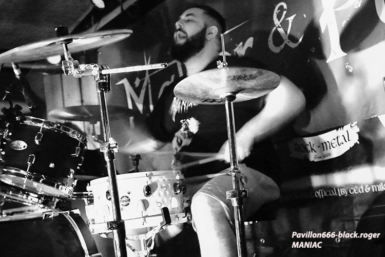 Je ne connaissais pas ce groupe qui prends la suite devant nous, mais nous allons tout de suite entrer dans le vif du sujet avec les Toulonnais de MANIAC. Alors Maniac s’éclaire en rouge, Maniac nous en met plein la vue en blanc et surtout nous balance un death bourrin qui flirte avec le hardcore (le frontman arbore un T.shirt de Suicidal Tendencie, un signe !).