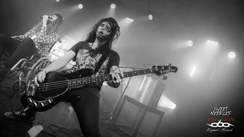 Nos organisateurs du Drouais avaient placé cette soirée sur un thème plutôt Heavy Rock/Stoner avec dans l’ordre Sweet Needles, Burn The Flag et MissingMile. Mais commençons sans tarder avec la formation francilienne Sweet Needles. Malgré un chanteur sur scène en chaise roulante pour cause de cheville défaillante (Non je ne vous dirai pas pourquoi) et un guitariste en moins nos jeunots ont eu cette classe (que certains plus aguerris n’ont pas) d’assurer leur set comme si de rien n’était. Si les influences du groupe sont, comme souvent, diverses nos quatre compères vont délivrer un show heavy rock tout en puissance et bien calibré. Il faut savoir que leur premier EP sonnait plus sleaze/glam rock. Alors peut-être que Sweet Needles se cherche encore même si cette nouvelle direction sonne plutôt bien en live. Certes, difficile de juger sur cette courte prestation mais il faut bien avouer que nos musicos, même diminués savent bouger sur scène (même en chaise roulante, version Axl Rose sous amphet). Oscar essaiera bien par moments de se lever en grimaçant pour chanter mais de toute façon les autres en font bien assez sur les côtés niveau spectacle. Le fait que le groupe ait déjà pas mal tourné dans l’ambiance bar/concert se ressent et le sujet est maîtrisé. Un bon set qui aura ouvert les hostilités et réchauffé la salle. Setlist Sweet Needles : 1. Be Bop 2. Egotrip 3. Feel Alive 4. Better Late Than Never 5. Failed 6. Broken Bones 7. Thirteen A peine le temps de se rafraîchir avec une bonne dose de houblon que déjà le deuxième groupe se met en place et que retentit les premières notes. Burn The Flag, un habitué de la scène Zombi Riot a maintenant un line-up bien solide, toujours sur des textes engagés et rageurs. Une hargne que Guillaume aime transmettre à son public, n’hésitant pas à invectiver parfois le public. Sous les coups de marteau de Manu le barbu derrière les fûts, les riffs acérés d’Arnaud et la basse groovy d’Adrien notre quatuor va de nouveau exprimer sa musique qui mélange stoner, hardcore avec quelques touches orientales. Le tout se fera parfois sur des rythmiques tribales puisque Guillaume sur son Surdo aime s’amuser avec son batteur dans un combat percussif. En attendant la sortie d’un Ep ou d’un album, Burn The Flag continue à accumuler son expérience sur scène. Ils seront d’ailleurs en concert avec Aqme le 7 avril à l’Arsenal de Nogent. Set list Burn The Flag : 1. Mafia Hebdo 2. Derniers Maux 3. L’abattoir 4. Interlude 2 5. L’aigri 6. L’Oppulence et la Misère 7. Stupeur 8. Sous France Après une courte pause, il est déjà l’heure de découvrir MissingMile, un groupe formé en 2010 qui nous viens de Saint-Lô (50). Le groupe va nous donner un set puissant et énergique sur un stoner assez ouvert mélangeant des influences heavy/rock indé. Entre titre lourd et lent comme « Gasoline » ou plus entraînant et pêchu avec « Lucifer Rising », les Saint-lois ou Saint-Laudiens comme vous voulez, envoient sur scène. C’est carré et propre. On sent des influences un peu à la Soundgarden par moments avec des passages planants et hypnotiques. Le tout est porté par le charismatique Joss au chant qui ne ménage pas sa peine pour faire bouger le public. D’ailleurs tous les musiciens ne sont pas en reste, question spectacle, sur cette setlist qui retrace succinctement la discographie du quintette. Un stoner intéressant et plutôt varié (et je pense qu’ils devraient même explorer plus loin encore ce principe) qui sent le professionnalisme. A suivre donc attentivement en attendant le nouvel album. Setlist MissingMile : 1. Appleseed 2. Lucifer Rising 3. Driver 4. Last Days 5. At Last 6. Green Goblin 7. Firecracker 8. Gasoline 9. The Past Il va de soi que je vais remercier une fois de plus, mais toujours avec la même vigueur, les bénévoles qu’ils soient roadies, ingés son et lumière, billetterie, accueil, buvette, communication. Merci également de me faire toujours confiance sur mes photos, vidéos et live report pour Pavillon666 Webzine. La musique ne vit que si elle est vécue et partagée par toutes et tous et donc au final c’est aussi grâce à vous, public, que Zombi Riot continue d’exister. Rendez-vous donc le samedi 24 mars pour la dernière affiche de la saison avec Lost Opéra, Mugslug et Blood Alchemy !!! Pour des raisons de confidentialité YouTube a besoin de votre autorisation pour charger. Pour plus de détails, veuillez consulter nos Politique de confidentialité. |