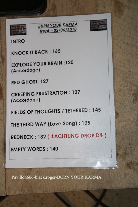 Alors inutile de vous décrire l’ambiance de « ouf » dans les lieux où « slams » et « circles-pit » ont fait leur loi. Metal qui « envoie » donc avec un certain mélange de power, de thrash et de « core » et une envie de tout casser qui tient ses promesses en live. Que dire de plus, Burn your Karma a « envie » et nous aussi, alors suivons les sur leur route (666 ?).