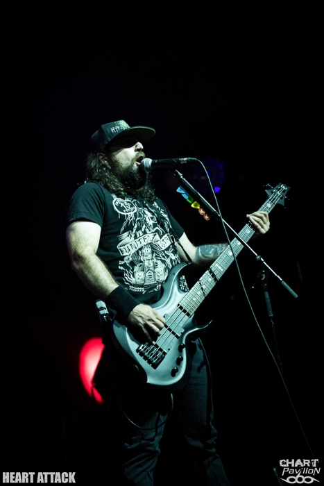 Et pour ouvrir la soirée, rien de mieux qu'un très bon groupe français. On apprécie le choix d'un support local, même si HEART ATTACK nous vient de Cannes. N'empêche que ça fait plaisir de trouver un nom français en compagnie d'une telle formation. J'imagine que pour eux aussi le plaisir est grand. D'ailleurs, cela aurait tendance à se voir durant ce set. Le groupe est clairement motivé et donne tout ce qu'il a à donné. HEART ATTACK fait partie des groupes qui commencent doucement à s'imposer sur la scène française avec une participation au Hellfest et une tournée avec MEGADETH. C'est plutôt agréable mais justifié par un style thrash moderne où le hardcore prend lui aussi part aux compositions. On se laisse vite prendre au jeu de ce set très bien maîtrisé. Il vaudrait mieux se souvenir de ce nom assez simple à retenir car il y a de grandes chances pour que vous le croisiez assez souvent maintenant. Il est donc l'heure d'accueillir comme il se doit cette belle tête d'affiche car comment définir autrement MEGADETH ? Ce groupe existe depuis 35 années, depuis que Dave MUSTAINE l'ait créé après son éviction de METALLICA. Comme quoi la frustration peut aussi amener de bonnes choses malgré la difficulté. Mais bon, les deux groupes semblent maintenant réconcilier, tout comme Dave MUSTAINE et David ELLEFSON, le bassiste du groupe qui n'officiait plus au sein du groupe de 2002 à 2010. Le line up de MEGADETH a toujours plus ou moins ressemblé à celui d'un projet solo tout en gardant une cohérence musicale. C'est du au fait qu'un homme de cette trempe qui gère un projet le fait avec un but précis. Et ce soir, Kiko LAUREIRO (ex ANGRA) tient la guitare tandis que Dirk VERBEUREN (ex SCARVE, ex ARTSONIC, ex ETHS, ex SOILWORK...) se tient derrière la batterie. Je ne ferai pas la liste complète des groupes auxquels ce musicien à participé tant elle est longue ! En tout cas le fait est qu'un batteur de cette trempe dans un groupe tel que MEGADETH n'est qu'une optimisation du super groupe que régit MUSTAINE depuis des années.Ce line up de rêve est bien là pour s'affirmer une nouvelle fois en tant que pilier du metal et défendre son dernier album en date « Dystopia » paru en 2016. On attaque fort ce soir avec le hit « Hangar 18 ». Si habituellement les groupes choisissent le premier morceau du dernier album en date, MEGADETH a préféré jouer la carte du classique afin de mettre tout le monde de son côté. C'est astucieux mais surtout agréable d'apprécier ce gros morceau d'entrée de jeu. On poursuit néanmoins avec un premier extrait de « Dystopia », « The Threat Is Real ». Ce morceau s'impose comme implacable, encore plus en live et se lie particulièrement bien avec le passé du groupe. Pour preuve, « The Conjuring » issus de « Peace Sells... Who's Buying ? » de 1986 lie parfaitement l'ensemble. MEGADETH a toujours été un groupe de thrash particulièrement au point sur ses compositions. Il n'y a aucun doute non plus sur le niveau technique des musiciens toujours choisis en conséquence. On continue avec « Wake up Dead » lui aussi de 1986 suivi de « In My Darkest Hour » paru en 1988 sur « So Far, So Good... So What ! ». C'est une allure de best of que prend ce concert et on ne va pas le regretter. En effet, cela apporte pas mal de variété à ce concert avec des morceaux tels que « Sweating Bullets », « She-Wolf » ou encore « Tornado Of Souls ». On apprécie aussi la nouveauté avec l'instrumental « Conquer Or Die » et son introduction à la guitare acoustique remarquable et forcément « Dystopia ». On n'évite pas non plus le plus grand classique du groupe, « A Tout Le Monde ». Comment cela serait-ce possible de toute manière ? Surtout en France avec le public qui reprend ces quelques mots en français avec le plus grand plaisir. Comment éviter aussi l’implacable « Symphony Of Destruction » et le thrash de « Mechanix ». Je ne pensais pas que le groupe le jouait encore sur scène. L'histoire de « Mechanix » est intéressante dans la mesure où ce titre a été composé à l'époque ou MUSTAINE était encore dans METALLICA. Les deux groupes se retrouvent à le jouer tous les deux mais avec des paroles différentes et sous le titre « The Four Horsemen » pour METALLICA. On conclue logiquement par « Peace Sells », bien représenté ce soir avant le rappel qui se fait sur « Holy Wars... The Punishement Due ». Ce morceau a été un point de référence important pour la construction du dernier album et il occupe forcément une place de choix. MEGADETH a fait son job avec brio. Le groupe se passe de fioritures et mise tout sur la musique. Il y a bien les deux passages sur scène de Vic RATTKEHEAD la mascotte du groupe mais rien à voir avec le Eddy de IRON MAIDEN qui lui est présent en continu à travers les fonds de scène ou en marionnette géante. Non, pas d'avion qui décolle du fond la scène, juste un logo géant derrière un mur d'amplis et des musiciens qui exécutent avec précision leurs morceaux. On espère néanmoins que le groupe mettra un peu moins de temps à nous revenir et que surtout il donnera l'envie à d'autres grands noms de passer nous voir sans se focaliser uniquement sur Paris. |