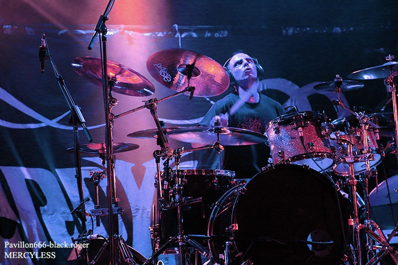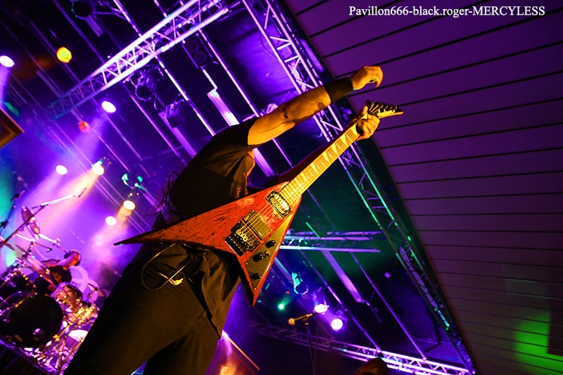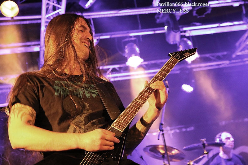 Et nous avons pu apprécier 6 groupes venus d’ailleurs dans des conditions optimales de son, de lights…et d’accueil. Un super accueil de la part des organisateurs et des bénévoles il fallait le souligner. Du coup, THE GREAT OLD ONES, MERCYLESS, BALANCE OF TORTURE, THE OATH, SKOX et INNER TORTURE nous ont éclaboussé les yeux et les oreilles à l’aide de prestations remarquables et remarquées. Première formation à se présenter sur scène, INNER TORTURE de Lyon qui va nous introduire d’emblée dans l’ambiance metal qui arrache dès 19 heures. Ici pas de fioritures, pas de faux-semblants, on joue fort, on joue bien et on nous colle au plafond à l’aide de compositions ne faisant pas dans la dentelle, et le public déjà bien présent adhère complètement. Nul n’est prophète en son pays et ce vieil adage va se vérifier encore une fois. En effet les Lyonnais de SKOX qui sont souvent « boudés » chez eux vont mettre une claque mortelle à tous les participants du Graveyard Fest. Ce soir ça va donc bousculer sec dans le pit sous les coups de boutoirs de la bande à J.C. Tant mieux pour eux cela prouve s’ il en était encore nécessaire la puissance de feu en live de ces thrashers fous. Du Old-school certes mais flirtant bien souvent avec le death . Prestation forte et agités qui a séduit un public prêt à en découdre, que demander de plus ? Avec THE OATH on change un peu de registre. Ici on donne dans l’original à l’aide de black-death prog qui en a séduit plus d’un depuis la création du groupe en 1999 avec la sortie de 4 albums et des prestations live de qualité. The Oath est un peu comme une main de fer dans un gant de velours, son côté mélodique n’est là que pour mieux nous mettre K.O à l’aide de parties arrachées et plombées que l’on a pas vu venir. Ce soir deux nouveaux titres parmi les « anciennes » compositions nous montrerons que les Lyonnais tiennent toujours le haut du pavé dans leur style, si style il y a… Un peu de death/grind ne nous fera pas de mal, au contraire, avec la venue des Lillois de BALANCE OF TERROR qui vont nous mettre un direct « in your face » d’entrée de jeu. De formation assez récente (2014) et avec la sortie d’un album tout chaud, tout brûlant intitulé « world laboratory » ils vont nous offrir un show mortel. Quel punch, quelle énergie, quel savoir- faire dans le domaine de la brutalité ! Cela m’a fait penser à Aborted et son album « the archaic abbatoir » vous voyez ? Non, vous ne voyez pas, alors nous en avons pris plein la ‘g…e » hier au soir, découverte donc dans un registre qui ne manque pas de prétendants, mais là… Au plaisir de revoir ces gens du nord qui m’ont carrément bluffé avec un set d’enfer. Ah MERCYLESS, l’un des pionniers du metal-de-la-mort-qui-tue frenchie qui a fêté l’an dernier ses 30 années d’existence (comment vous n’avez pas leur t-shirt anniversaire ?). Bien sûr le death-metal en France à l’instar d’un Loudblast a eu des passages à vide après les 90’s (mode des genres quand tu nous tiens !). Mais Mercyless est revenu du monde des morts après dix années passées dans son cercueil (2001-2010) avec toujours son mentor Max Otero, avec des changements de line-up à la clé. Mais ici on reste fidèle au death old-school avec ses parties malsaines qui vous glacent le sang. Du coup Mercyless est un groupe légendaire à ne pas manquer en live. C’est ce qu’on fait les participants du Graveyard Fest ce soir et ils ne furent pas déçus du voyage depuis le cimetière d’à côté, set puissant et mouvementé qui a fait l’unanimité je pense. Changement de style (encore) mais toujours dans l’extrême avec la présence scénique de THE GREAT OLD ONES en provenance de Bordeaux. J’avais vu ce groupe vu il y a peu lors du Outch Fest en Lorraine (27/28/05/18) et je savais donc à quoi m’en tenir quant à cette entité black/dark metal qui s’inspire des écrits de Lovecraft. Ce groupe n’a pas choisi la facilité en nous proposant un certain black avant-gardiste, mais en live leurs compositions prennent une toute autre dimension avec notamment un visuel bien obscur et un son profond et lourd (surtout ce soir à combien de db ?). Avec une prestation faisant ressortir un côté sombre et agressif TGOO a emballé un certain public de connaisseurs mais aussi fait de nouveaux adeptes (je pense) à son chemin noir et tortureux (torturé ?). Et bien mes amis metalleuses et metalleux je crois bien que cette première édition du Graveyard Fest à fait mouche ? Les organisateurs, Happy Coffins, que nous remercions, ont vu juste en nous proposant ce nouveau festival très bien organisé je le répète. Alors, on se retrouve je pense, je le souhaite, lors d’une seconde édition de cet événement qui a tenu toutes ses promesses, bravo ! Et bien sûr bravo aux six formations en lice et au public ayant répondu présent. |