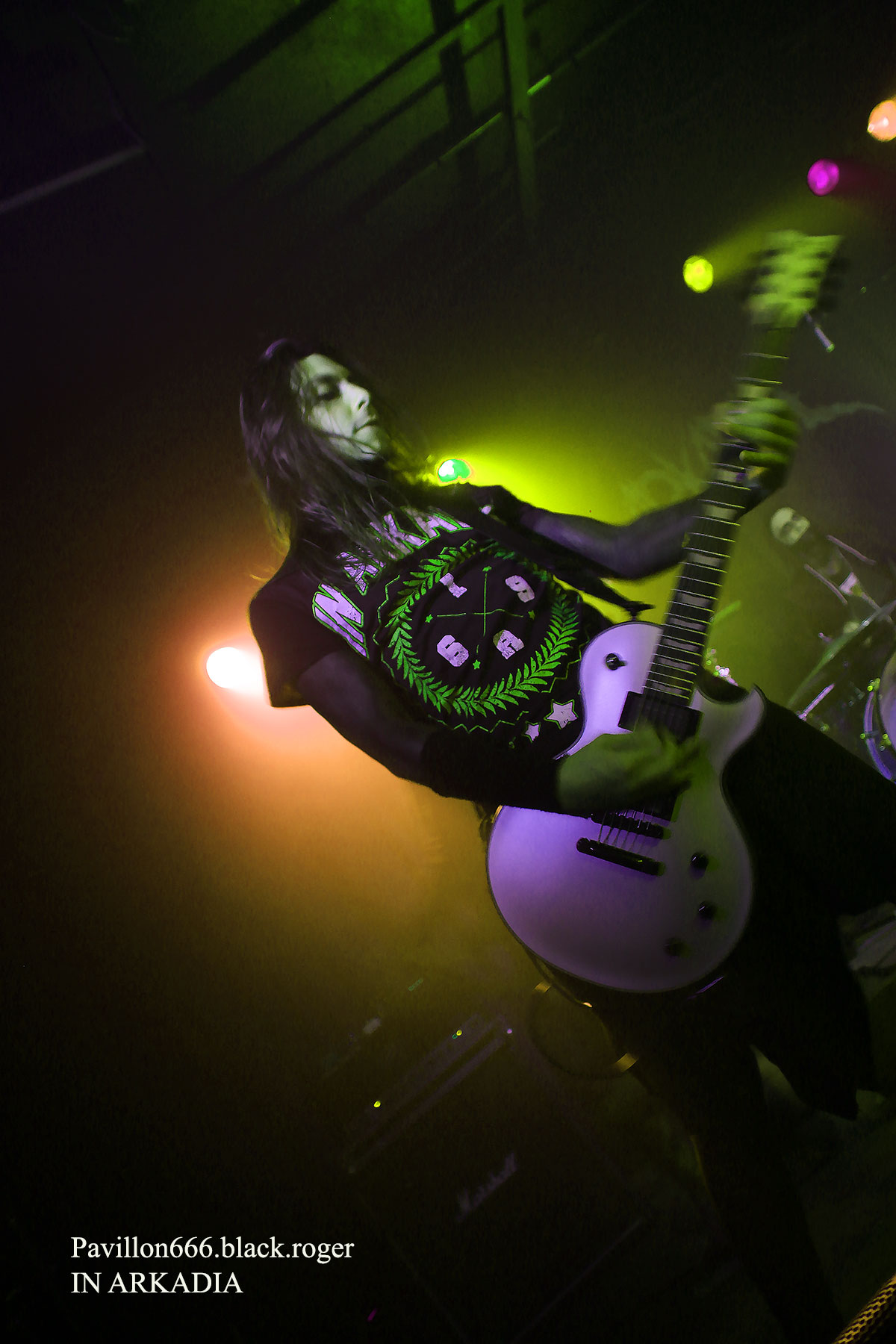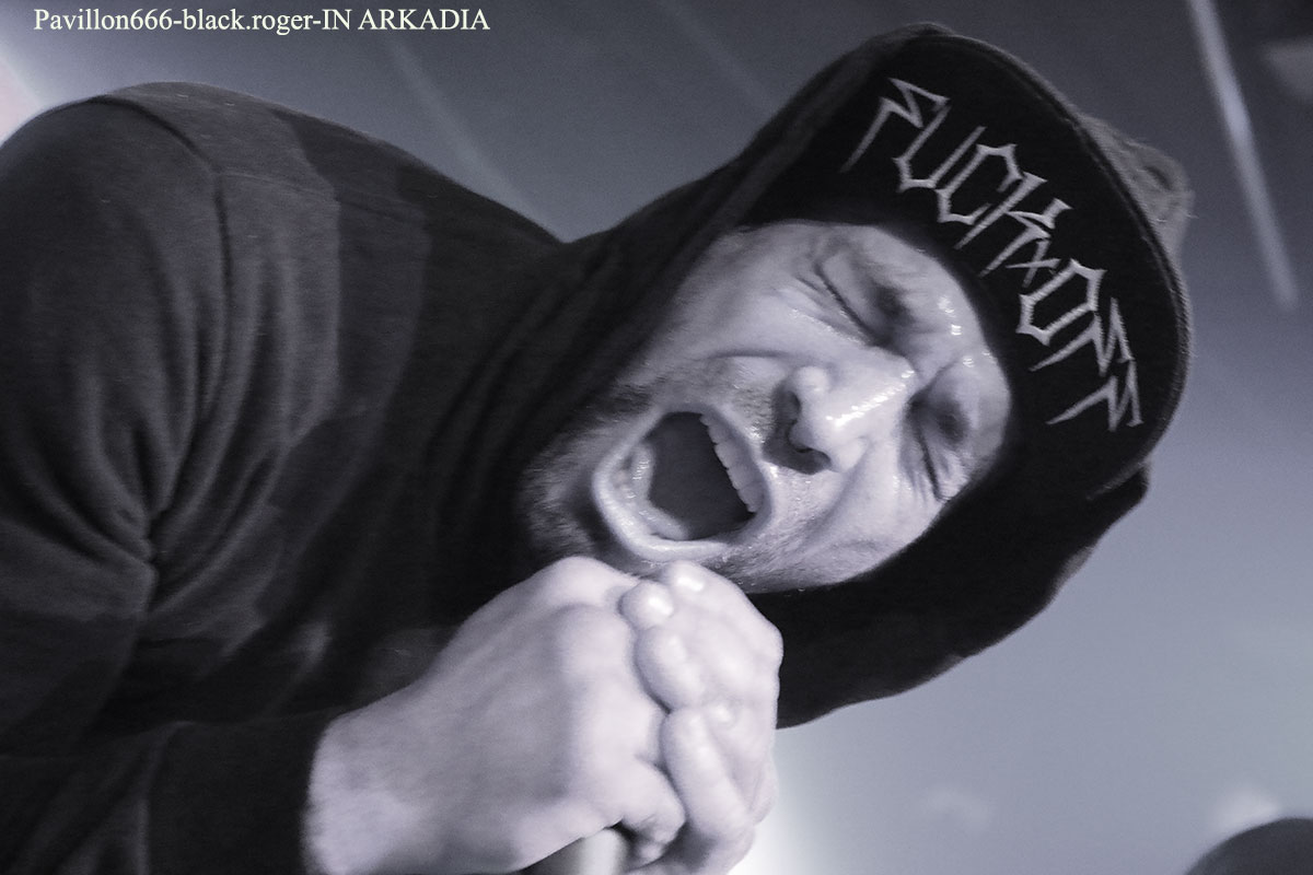 LOVE IN PRAGUE (par Jean) La deuxième journée de notre festival bressan commence relativement tôt, 14 h 30 par le show d'un duo lyonnais plutôt inattendu. Non, malgré leur nom, ils ne viennent pas de la capitale tchèque. Lorsqu'on entre dans la grande salle de la MJC, sombre et froide, il y règne une atmosphère insolite, quatre ou cinq personnes immobiles, à cinq mètres de la scène. Et sur la scène, deux artistes qui n'ont rien de métalleux en apparence. LOVE IN PRAGUE est un duo coldwave qui a déjà au moins deux albums à son actif, « Ghost Note » sorti en 2013 et « Fallen Angels » en 2015. Tout vêtu de noir, visage glabre dont la blancheur rappelle le gothique, Benoît chante de sa voix unique, on le regarde et on l'écoute dans un silence religieux, tandis que Chloé, la bassiste, intervient aussi vocalement, duo en parfaite harmonie. Tous deux ont eu la gentillesse de m'accorder quelques minutes à l'issue de leur prestation, j'ai ainsi appris que LOVE IN PRAGUE se produit davantage en Belgique et en Suisse qu'en France, ils sont invités dans différentes radios, France Culture notamment. L'Allemagne, les Etats-Unis et le Canada les ont reçus également. De même La Tannerie de Bourg-en-Bresse en janvier 2018. Il est regrettable qu'aussi peu de gens aient pu apprécier, ce soir, les qualités artistiques de ce duo inédit MITHRIDATIC (par Jean) Dès 15h 30 total changement de registre. Connu et reconnu en Auvergne-Rhône-Alpes et bien au-delà, le quintette stéphanois MITHRIDATIC, spécialiste du death-metal extrême, teinté de black, était très attendu dans le cadre du Dark Break Fest. Et on va le voir, ils n'ont pas déçu un public enfin plus nombreux, plus motivé ou simplement curieux. Le chanteur que tous ses amis et collègues appellent Guitou donne le ton sans perdre une seconde, il crie, il hurle, il s'agite, s'arrose de bière, balance une canette dans la salle, crache, éructe...Bref vous avez compris, mais son talent est indiscutable, sans lui MITHRIDATIC ne serait pas MITHRIDATIC. Il torture son micro, se blesse volontairement...Ce personnage atypique et attachant ne doit pas reléguer au second plan les grandes qualités artistiques et techniques des quatre autres membres de la formation de Saint-Etienne : Kevin Paradis, batteur hors pair, recruté par d'autres groupes de metal, BENIGHTED par exemple, Alexandre Brosse, pédagogue de la guitare, membre du groupe depuis ses débuts, Romain, l'autre guitariste et Remolow, le bassiste. Le groupe fondé en 2007 a connu quelques passages plus ou moins difficiles, il s'est rapidement ressaisi, a participé à des festivals ( Sylak, Printemps de Bourges en 2017 etc.) et a partagé la scène avec des groupes prestigieux (Belphegor, Svart Crown, Shining, Benighted…) Et le public ? Il a bien survécu à l'épreuve de 40 minutes ! Sans se déchaîner outre mesure dans la fosse, ceux qui ont découvert MITHRIDATIC se souviendront de ce show pour les yeux et les oreilles. On attend un nouvel album de nos amis stéphanois, prévu pour début 2019. Bon vent à MITHRIDATIC ! ROSENKREUZ (par Roger) Il est 16 heures 50 et c’est l’heure du metal-gothic avec la prestation très attendue de ceux de Rosenkreuz. C’est l’occasion pour tous ceux qui ne connaissent pas encore le sextette Lyonnais de pénétrer dans leur univers particulier. Cet univers du monde de la nuit, cet univers décadent bien vivant malgré la dépravation et la mort qui rôde aux alentours. Rosenkreuz nous martèle les neurones à l’aide de ce metal plombé et martial qui nous prend aux tripes, un metal dynamisé par l’Abbé SM, mentor et vocaliste du groupe. La démonstration est toujours aussi convaincante pour ne pas dire spectaculaire entre en filigrane un certain Rammstein et autre Sisters of Mercy. Mais ici pas de copier/coller de ces influences, Rosenkreuz maitrise son sujet et se l’approprie avec une originalité qui lui est propre, bref on en redemande ! SACRAL NIGHT (par Jean) Après Lyon et Saint-Etienne, voici Grenoble. En effet, le quatrième groupe du deuxième jour du DARK BREATH FEST nous vient de la capitale des Alpes, il s'agit de SACRAL NIGHT, un quintette qui évolue dans le heavy metal noir. C'est Antoine Volat , chanteur d'Electric Shock, qui officie ici au chant, avec à ses côtés Laurent Buk, guitariste, également membre d'Electric Shock, Florent, alias Amphycion, bassiste, Mörkk, le batteur et Marc (?), l'autre guitariste . Cette jeune formation (2017) a déjà sorti un album bien accueilli, « Dark Process », en octobre 2017. Pour qualifier le style de leur œuvre, il semble que le mot « dark » soit le plus approprié, tout comme pour leur « frère » ou cousin NECROWRETCH. Ce soir, SACRAL NIGHT se produit pendant 45 minutes devant un public d'âge mûr, des gens avertis et motivés, qui ne sont pas avares de leurs applaudissements. Les guitaristes arpentent la scène, l'unité et la cohésion du groupe sont des éléments majeurs de leur succès en concert. Mais pourquoi des musiciens aussi talentueux et chevronnés s'arrêtent-ils si soudainement, sans un mot à l'adresse du public, surpris et un peu déçu ? Pour la set-list (8 titres), se reporter aux photos. IN ARKADIA (par Roger) Place maintenant au « blackcore » proposé par les Lyonnais d’IN ARKADIA. Et là, on ne rigole plus, l’hydre bicéphale formé par les deux chanteurs-hurleurs du groupe envoie la sauce hardcore et autour des agitations mouvementées du duo, les musiciens tabassent sec. Guitare, basse, batterie en formation de combat défoncent tout sans compromis, sans faux semblants. Et « la famille » devant la scène apprécie d’être prise à la gorge par ce groupe qui se lâche sur scène et dont les envois nous collent au plafond, quelle énergie, quelle « quécla dans la chetron » comme dirait mon ami le punk défoncé ! Merci les gars on vous suit, @ bientôt à Lyon. ADX (par Jean) L'avant-dernier groupe du DARK 