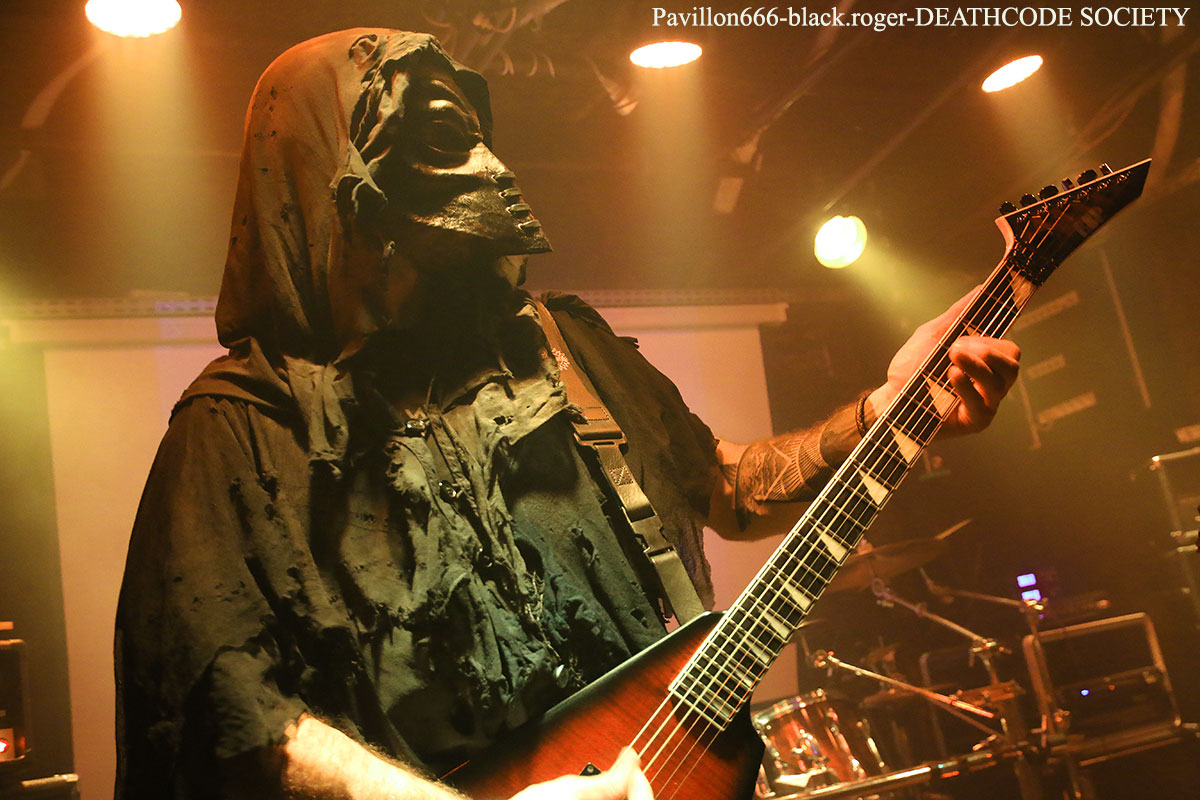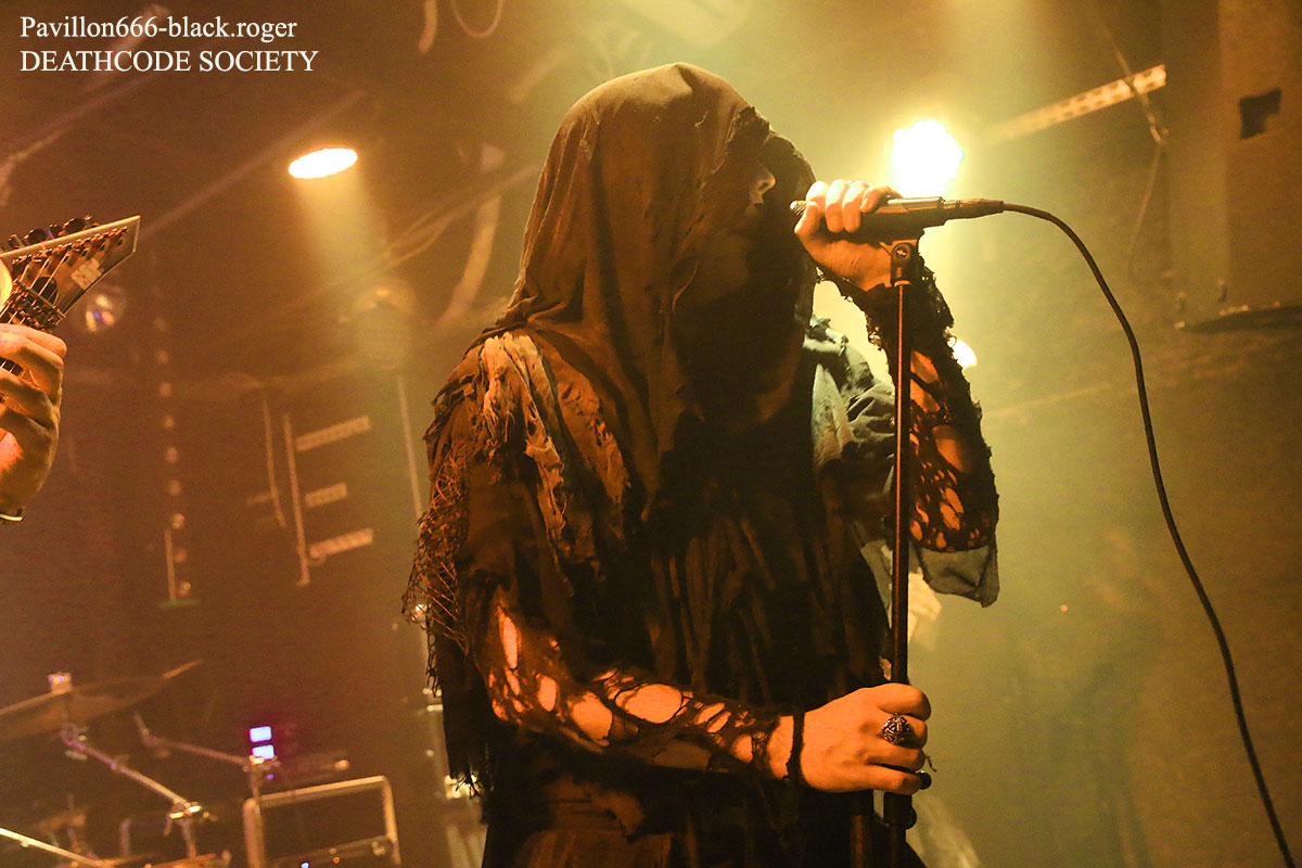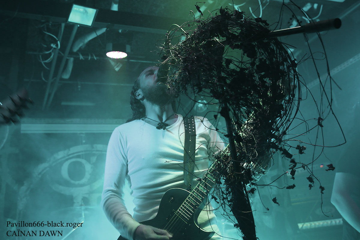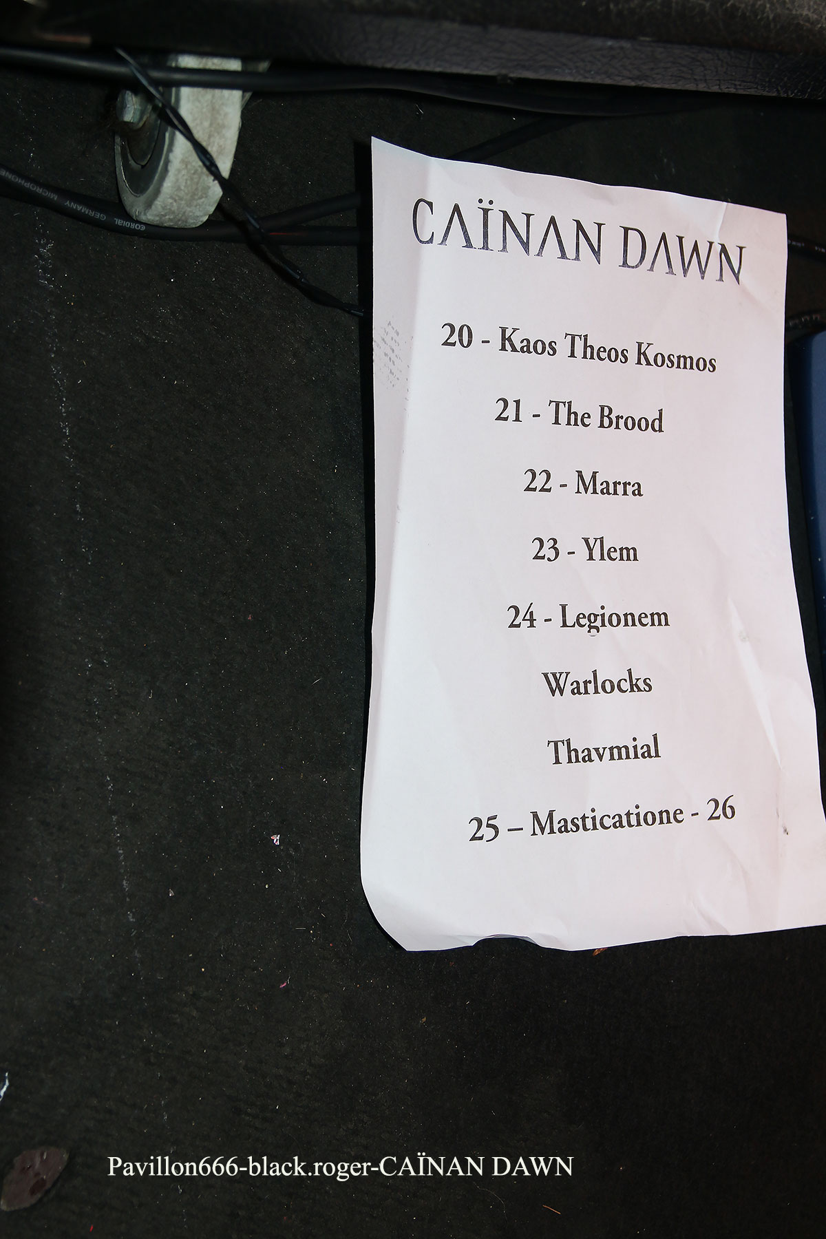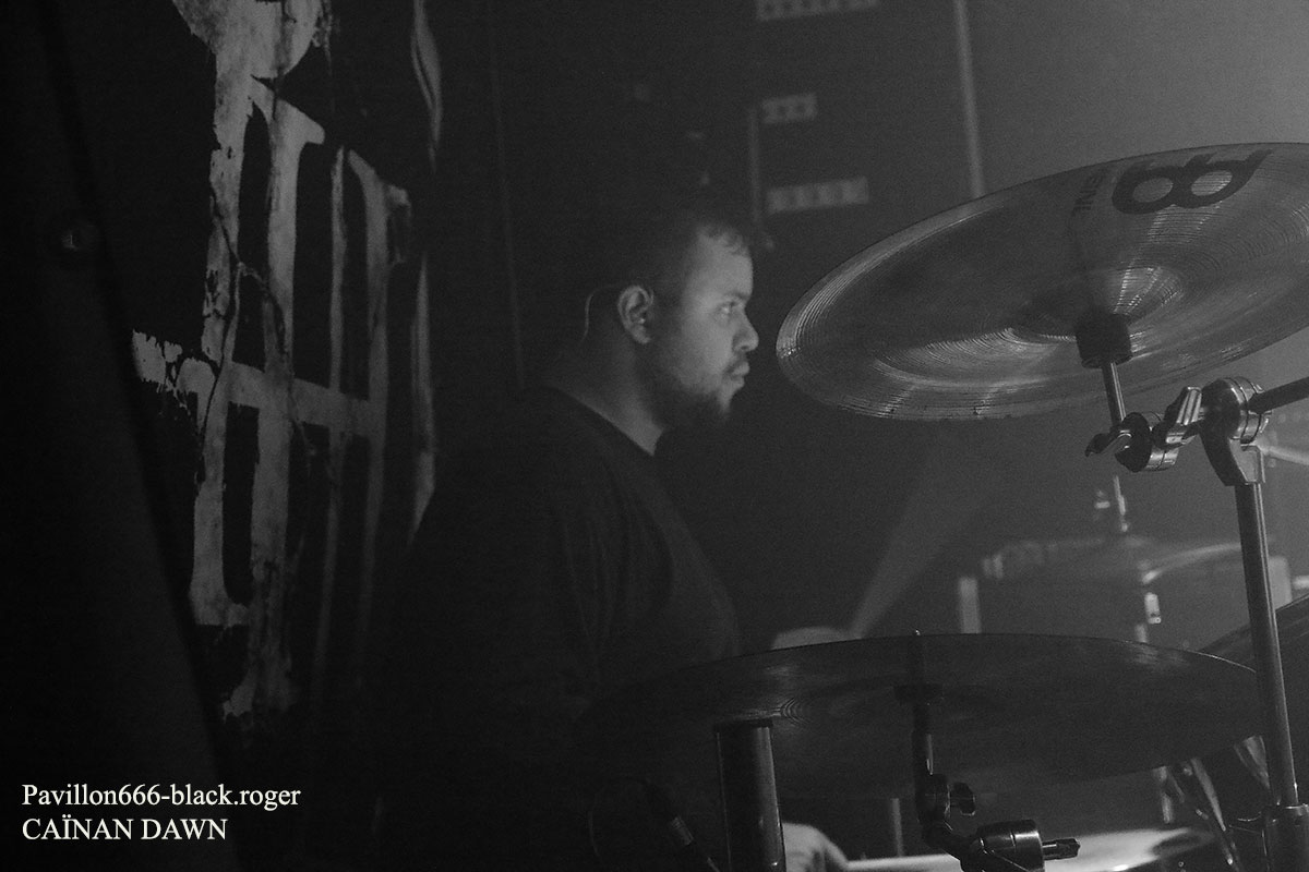 Dès le début de leur set, ceux de DEATHCODE SOCIETY nous offrent en fond d’écran des images de leur guitariste Franz disparu, le 11 mars dernier, moment intense donc, hommage tout simplement. Et puis le combo Savoyad occupe la scène, musiciens encapuchonnés, masqués et en haillons pour une cérémonie de black symphonique, mais surtout pour des envois tout simplement apocalyptiques. Arnhwald mène la danse « macabre » et ses frères de noirceur jouent de façon précise sans faux plis. Alors défilent dans les lumières blafardes les titres de leur album live de 2018, « The armageddon carnival », enregistré à Annecy le 27 Avril 2017. Ces titres qui nous ont interpellés le 21 Septembre dernier au CCO de Lyon-Villeurbanne où cette horde maléfique se produisait en ouverture de Batushka souvenez-vous ! La scène plus petite du Brin de Zinc permet d’être d’une certaine manière en « communion » avec les 5 musiciens, c’est ce qui fait la force d’une prestation en petite salle, avec une ambiance brûlante, rouge et noire à la fois. Deathcode Society, groupe encore jeune, peut se vanter dorénavant d’être connu et reconnu cela va de soi témoin ce nouveau concert donné dans leur Sabaudia natale. Set-list-en photo. Quel plaisir de retrouver maintenant EVOHE et son pagan black-metal, un Evohé qui se fait rare en live (dernier concert donné au Réservoir de Belley en 2016). Du coup des « vétérans » du black savoyard n’en seront que plus appréciés dans cette affiche de la nuit des Morts. Bientôt vingt années que cette formation navigue sur les eaux troubles d’un black-metal païen et qui nous avait offert des enregistrements remarqués dans le style. Les vocaux, parfois criés, sont puissants, variés, pour des envois « riffus » à souhait se rapprochant parfois d’un rock sauvage, puis se déclinant en mélodies d’un autre âge avec parfois cette touche de guitare acoustique. Ce quatuor n’a pas enregistré énormément d’albums, mais la qualité compense largement la quantité comme l’on dit communément, alors ne boudons pas ce moment privilégié de voir ces précurseurs du black savoyard qui nous font partager leur quête d’un metal sombre et magique non dénué d’une certaine violence sous-jacente. Bref, merci Evohé à une autre fois, c’est quand vous voulez ! Set-list en photo. Du pagan à l’occulte, il n’y a qu’un pas que nous franchissons allègrement avec la venue de ceux de CAÏNAN DAWN encore tout auréolés de leur prestation donnée l’été dernier au Hellfest. Ces Chambériens, après dix ans d’activité et la sortie d’une démo « in darkness I reign » et trois albums, « nibiru » (2011, « thavenial » (2014) et enfin « F.O.H.A.T) » (2017), sortent enfin d’un certain anonymat dans la scène black-metal. Cela est sûrement dû au dernier album dont les compositions, résultat d’un travail acharné, ont fait éclater au grand jour les possibilités de cette horde Savoyarde et par là même leur a ouvert des portes Cqfd. Bref, quel est le secret de Caïnan Dawn ? C’est d’avoir je pense donné en quelque sorte ses lettres de noblesse à un certain mysticisme, à une certaine déviance occulte qui subtilement par le biais d’ambiances somptueuses et variées s’incruste dans votre matière grise avec un effet hypnotisant. Alors on ne voit pas le temps passer et la petite heure de set qui leur fut allouée ce soir vous a laissé perplexe, ce temps passé trop vite, et c’est fini on sort d’une certaine torpeur intense qui nous a subjugué, incroyable ! Set-list en photo Comme réussite, il n’y a pas mieux je pense. Une soirée bien organisée, une ambiance des grands soirs dans un brin de Zinc complet, trois hordes sombres et maléfiques pour vous prendre l’esprit, que demande de plus ? Alors merci aux organisateurs et merci eu Brin de Zinc pour l’accueil toujours aussi sympathique ! |