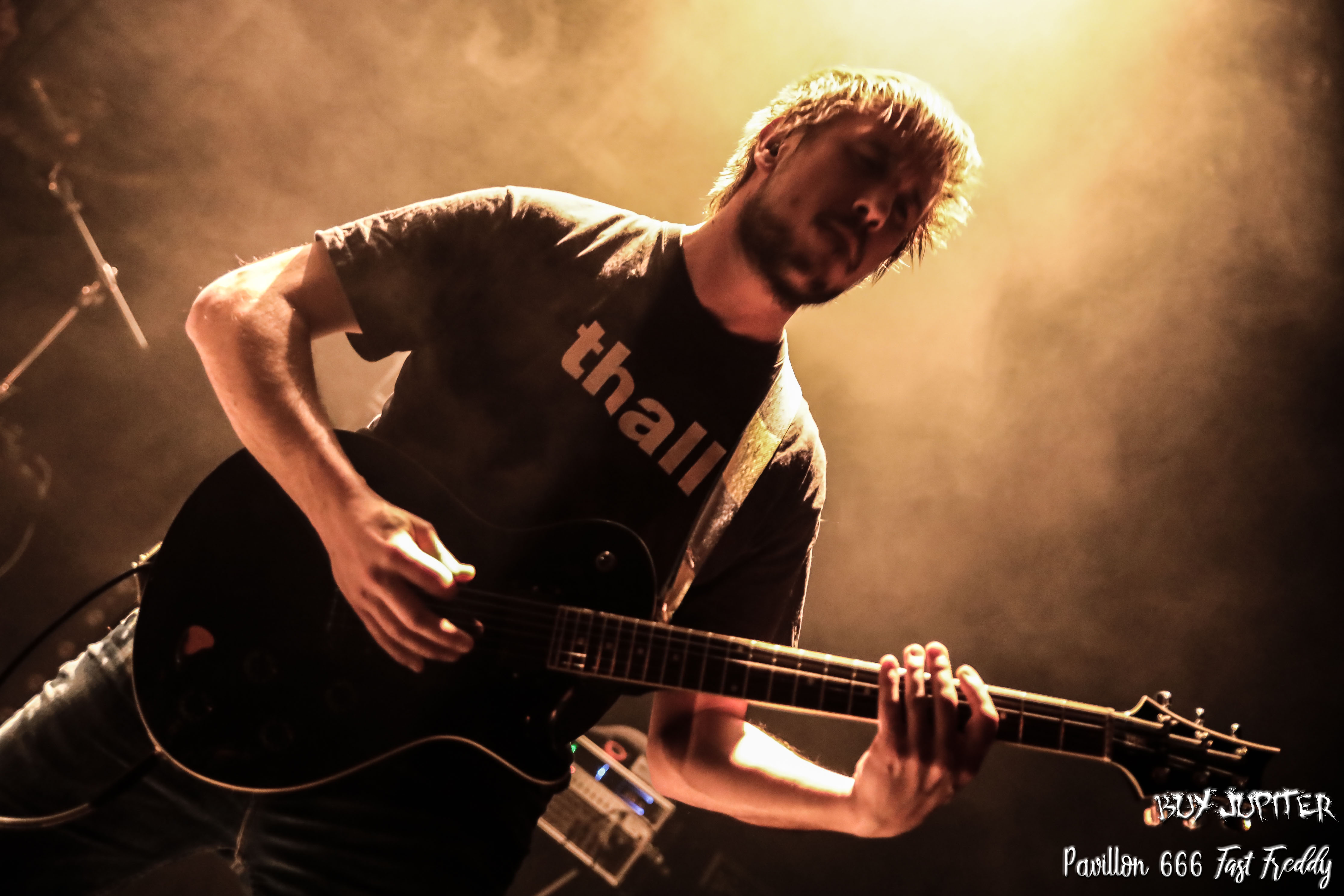 Question débauche d’énergie, on peut faire confiance à BUY JUPITER, combo lyonnais qui s’est inscrit dans le paysage Metal avec deux EP (Departure et Crossworld) de très bonne facture -en attendant celui qui va clore leur trilogie et dont la sortie est annoncée en juin- et des live puissants, tant sur le plan musical que sur la prestation scénique du quintet qui ne joue pas petits bras sur les planches ! Et la dérouillée de ce soir s’inscrit dans la droite ligne de ce qu’ils font de meilleur dans le registre ! 50 minutes de show non-stop passées à la vitesse de l’éclair plébiscité par un public désormais en nombre et reconnaissant de cette performance une fois encore superbe ! Pi (chant) est intenable, grimpant sur les enceintes, les murs, se mêlant au public à maintes reprises et offrant des vocalises variées dans ses hurlements ! Martin (basse) livre une excellente prestation scénique également, énergique (j’ai mal pour ses cervicales), consistante tout comme Manus et Vinz (Guitares) ! Lucas n’est pas en reste derrières ses fûts qu’il martèle avec force pour donner encore plus de poids à l’ensemble l Vous l’aurez compris, chacun donne tout ce qu’il a en soute, sans retenue pour un résultat final époustouflant qui incite à la bagarre… Comme toujours oserais-je dire ! BUY JUPITER possède toutes les qualités pour prétendre à être accroché sur des affiches prestigieuses ! Y’a du potentiel qu’on se le dise !