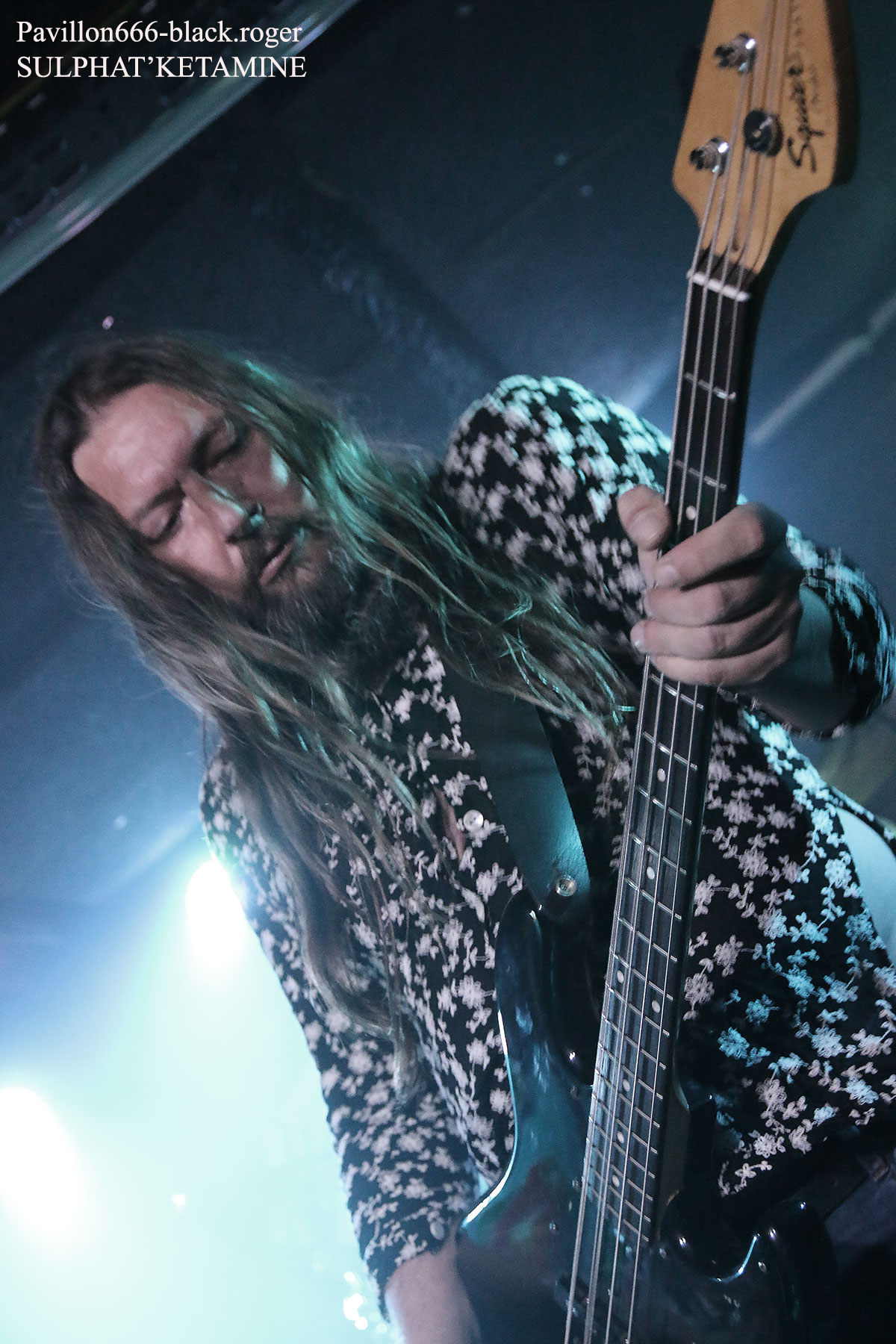 THE WOW SIGNAL est un trio de hard-psych-rock de Lyon qui depuis trois ans maintenant « magnifie » ses influences seventies, Floyd, led Zep, Black Sab par exemple avec des compositions bien originales. Ici la guitare est aventureuse dans un certain space-rock, donc beaucoup d’instrumental, le duo basse-batterie plombe le tout à l’aide d’un fort binaire où les chants doublés viennent se placer sans peine pour un voyage rappelant fortement The Beatles, pour ne pas les nommer. Alors durant une heure de set, The Wow Signal nous a régalé de ses envois, tantôt musclés, tantôt psyché. Musiciens remarqués et remarquables donc qui nous ont fait planer tout simplement dans le temps et dans l’espace (sic). Et au final la tentation fut forte aussi de rejoindre leur stand afin d’acquérir leur récent EP Vinyle « seaweed and stardust paru fin Novembre dernier. Set-list en photo. Et voici maintenant les « beatniks » de Lyon, le trio SULPHAT’KETAMINE qui évolue dans un paysage non-conformiste de rock 70’s saturé d’amphétamines où l’on mixe allègrement un peu de soul, un peu de metal, un peu de Motörhead, un peu de stoner, un peu de tout quoi, tout ce qui traine et qui donne l’occasion de faire du « brui ». Mais pas n’importe quel bruit, ici on joue mesdames, mesdemoiselles et messieurs n’en déplaise aux censeur de notre musique préférée issue du rock et du blues, et on le fait avec beaucoup d’imagination, un poil d’humour et de bonne humeur cela va de soi ! Alors, tout le monde semble aimer leurs ébats scéniques (leurs débats ?), et nos neurones s’éclatent à qui mieux, mieux, les yeux éblouis et les tympans qui rendent les armes. Que dire de plus en fait ? Rien mes amis, Sulphat’ Ketamine en live c’est de la bonne et l’on devient vite « accro ». Ils sont complètement barrés ces mecs là et après leur set de malade mental on va à leur stand récupérer le précieux sésame, le vinyle qui a failli ne pas arriver à temps à Lyon pour ce soir et qui se nomme, comme dit plus haut, « over the runk », quel titre d’ailleurs ! Le « baluche rocky » du Samedi soir a rameuté tous les rockers invétérés de lyon (et d’ailleurs), et ce fus bien tout simplement. Merci au Rock n’Eat, aux organisateurs et au public venu en nombre pour le meilleur ou pour le pire, le meilleur ce soir assurément ! |