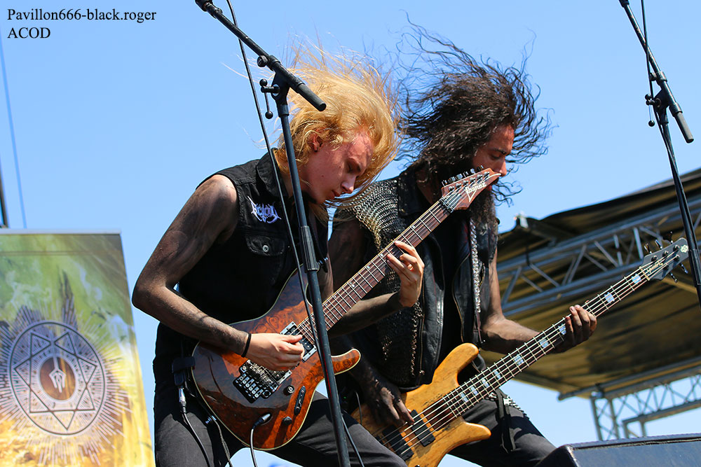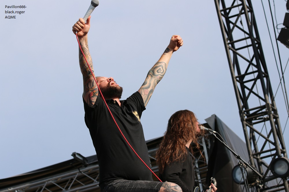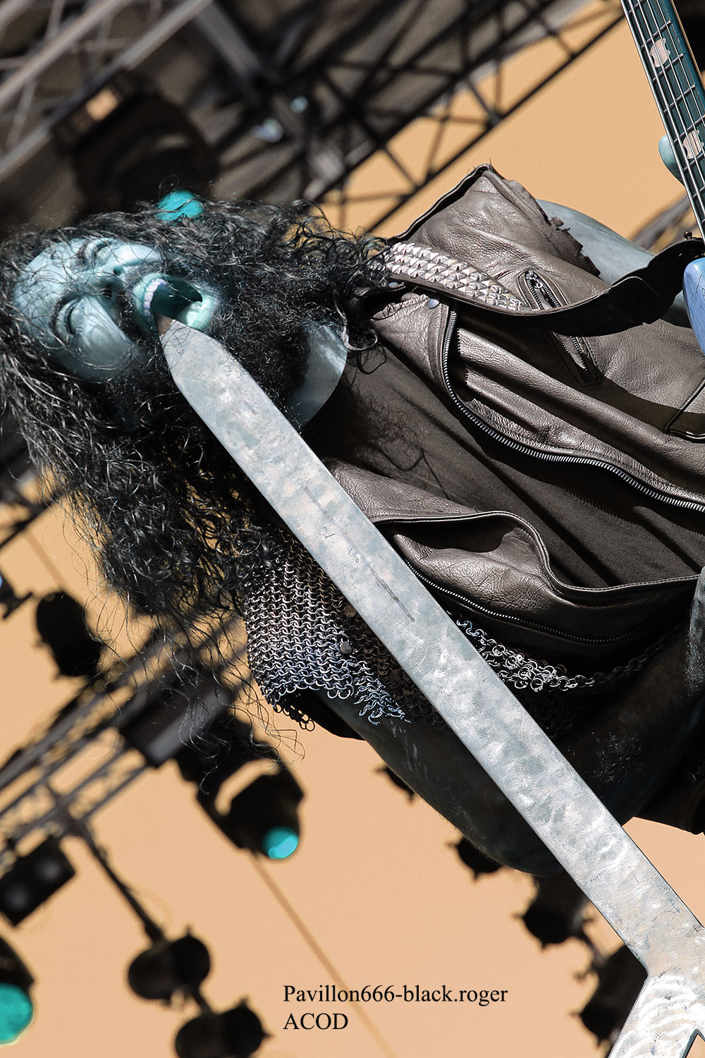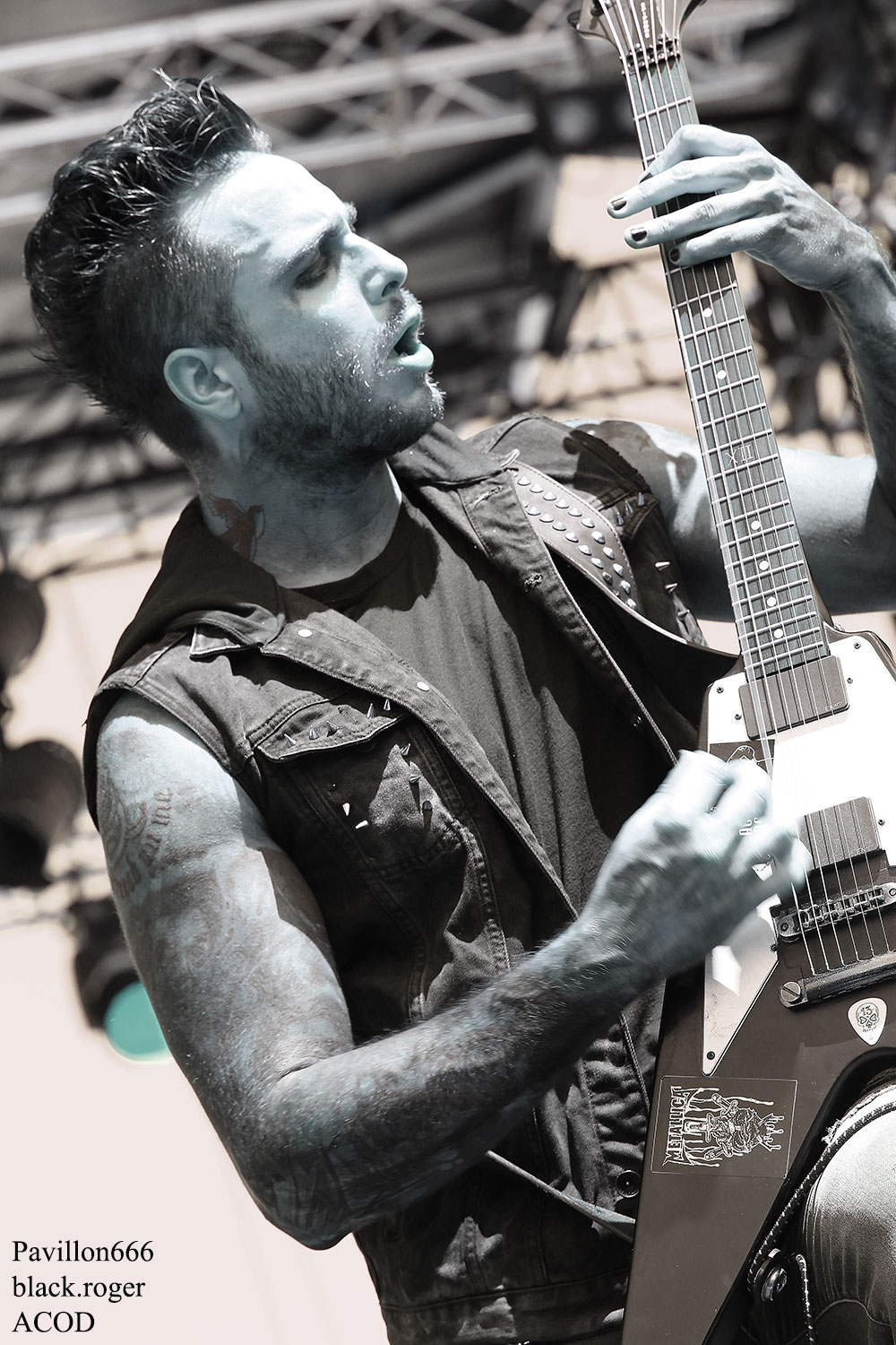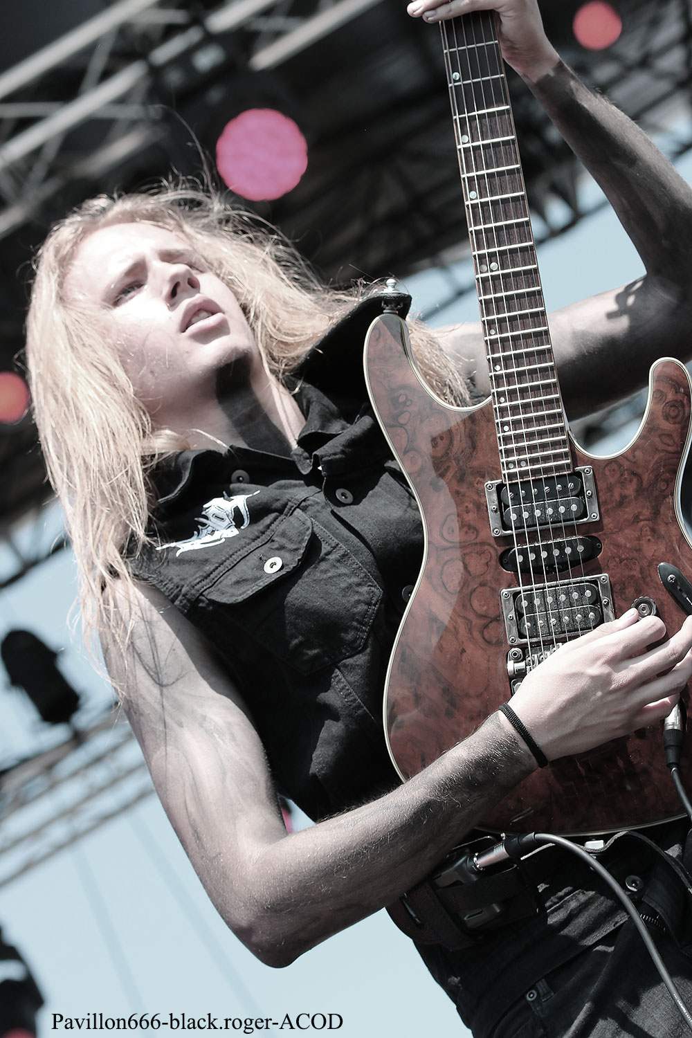 Les « coreux de YODA RISING, gagnant du tremplin, vont ouvrir de façon énergique et agitée les concerts de la journée, direct « in your face » et sans préambule ou sans compromis, c’est comme vous voulez. Après le sauna du Warmaudio de Décines en ouverture de Terror le 24 Juin dernier nos locaux du hardcore pur et dur affrontent le public du Plane-R-Fest, et ça marche ! Fort d’un nouvel album intitulé « lies and greed » Yoda Rising ne fait pas dans la dentelle. Il est vrai que ces musiciens ont été « rôdés » dans d’autres formations par le passé, alors pas de problème, en live ça décoiffe et c’est sincère, bagarre ! Mâchurés et en « perfecto », ceux d’ACOD n’ont pas peur de la chaleur infernale qui règne devant la grande scène du Plane-R-Fest en ce milieu d’après-midi du Samedi. Mais les Marseillais en ont vu d’autres et leur black-death intense va faire remuer le pit dès les premiers titres. En effet, Acod c’est la puissance du death, la noirceur du black dans des ambiances chaotiques et apocalyptiques. Le tout proposé par des musiciens qui depuis plus de douze ans et quatre albums au compteur (bien acceptés par la critique), sont imparables en live, c’est tout simplement excellent, quel show ! Place maintenant à l’electro-indus de HORSKH qui nous vient de Besançon. Horskh se présente sous la forme d’un trio qui manie percussion, batterie organique, machines, guitares et voix dans un genre qui me rappelle un peu les vétérans frenchies de Treponem Pal. L’énergie est là, la transe aussi, beats electro, guitares saturée sur des déviances métalliques, et il ne vous reste donc plus qu’à « danser » sur des rythmiques plombées. C’est tout bon, ça envoie et on aime ça voyez-vous ! AQME qui effectue cette année ses derniers concerts était très attendu aussi ce samedi, il me semble car après 20 ans de metal alternatif, d’aventures discographiques et de concerts les parisiens tirent donc leur révérence. Mais leur « requiem » prend ici la forme d’une prestation chaleureuse gonflée par l’émotion pour certains. Et le groupe va se donner à fond, bousculant les préjugés et les commentaires inutiles. Aqme va nous offrir les meilleur de lui-même avec sincérité où l’on retrouve ce metal frenchie particulier sur des rythmiques plombées et mélodies décapantes, et les refrains… Merci Aqme votre rock écorché a fait mouche encore une fois au Plane-r-Fest. On croyait avoir tout vu et tout entendu de la part de DARK TRANQUILLITY le groupe vétéran de la scène death-mélodique à la Suédoise, et bien non ! Après plus de 25 ans de carrière, ceux de Götheborg maintiennent le cap pour un metal mélodique bien typé avec ses « growls » et ses chants clairs dans une ambiance mélancolique à souhait. Résultat, cette ambiance « dark » plait toujours avec des compositions accrocheuses et entêtantes qui vous prennent la tête (dans le bon sens du terme). Alors ce soir au Plane-R-Fest le cœur y était car la set-list était bien choisie, l’émotion aussi. Ces « anciens » du metal ont su interpeller le public de façon peut être inattendue, mais reçue 5 sur 5. Merci à vous Dark Tranquillity vous assurez toujours avec votre musique qui au final n’a rien de « has been », il fallait le dire. Changement radical d’ambiance ensuite avec la venue sur scène de RISE OF THE NORTH STAR. Vithia et ses « furyos » ont été inspirés au départ par l’esprit 80’ des ruelles de Shibuya au Japon. Leur fusion hardcore bien typée à l’aide de visuels venant du pays du soleil levant se nourri du NY hardcore 90’s et de manga sans oublier les déviances beatdown d’aujourd’hui. Bon, alors afficionados de HxC et de hip-hop, vous avez été servis n’est-ce pas, mais les autres Et bien les autres ont suivi, donc carton plein pour ROTNS qui semble avoir convaincu encore une fois à l’aide d’une prestation remarquable et remarquée. Les trolls Finlandais, FINNTROLL cqfd sont venus par chez nous afin de nous « chatouiller » les oreilles à l’aide de leur folk-metal mélangeant agitations forestières, dérives festives, mais aussi agressivité démoniaque. Bref ici la douce folie métallique est de rigueur, l’originalité aussi. Tout est fait pour nous séduire, musicalement parlant, mais aussi visuellement avec une agitation colorée qui ne cesse de vous interpeller durant le show Car oui, show il y a où le groupe est en plein délire, un délire épique parfois, puissant aussi, mais toujours varié sur des compositions inattendues. Finntroll nous a donc accaparé l’esprit et les yeux durant un set qui nous a paru trop court, quand on aime on ne voit pas le temps passer. Merci les trolls aux oreilles pointues vos riffs déroutants nous ont enchanté tout simplement. Difficile pour moi de chroniquer la prestation qui va suivre à minuit au clocher de Colombier-Saunieu. En effet, SOULFLY c’est un peu le « bébé » de monsieur Max Cavalera, ex-Sepultura et auteur de projets variés comme par exemple Nailbomb ou encore Cavalera Conspiracy. Alors ce soir nous avons un Max souriant qui emmène son groupe avec un certain charisme sous-jacent ; mais la question se pose, es-t-on venu voir son groupe là ce soir ou bien voir l’homme, la légende du metal ? Les deux sûrement car n’oublions pas que Soulfly c’est quand-même déjà 11 albums qui, avec la régularité d’une horloge, sont sortis régulièrement de la boite à idée de Max. Mais aussi avec irrégularité dans les inspirations reconnaissons-le. Et pourtant le dernier opus en date intitulé « ritual » semble vouloir revenir en force sur les penchants tribaux affichés par le dernier album de Sepultura « roots ». Alors ce soir ce sera lourd sur scène, riffu aussi même si après des titres bien puissants et thrashisants Max se perd dans des soli guirtaristiques et des incartades aux instruments tribaux. Résultat des 