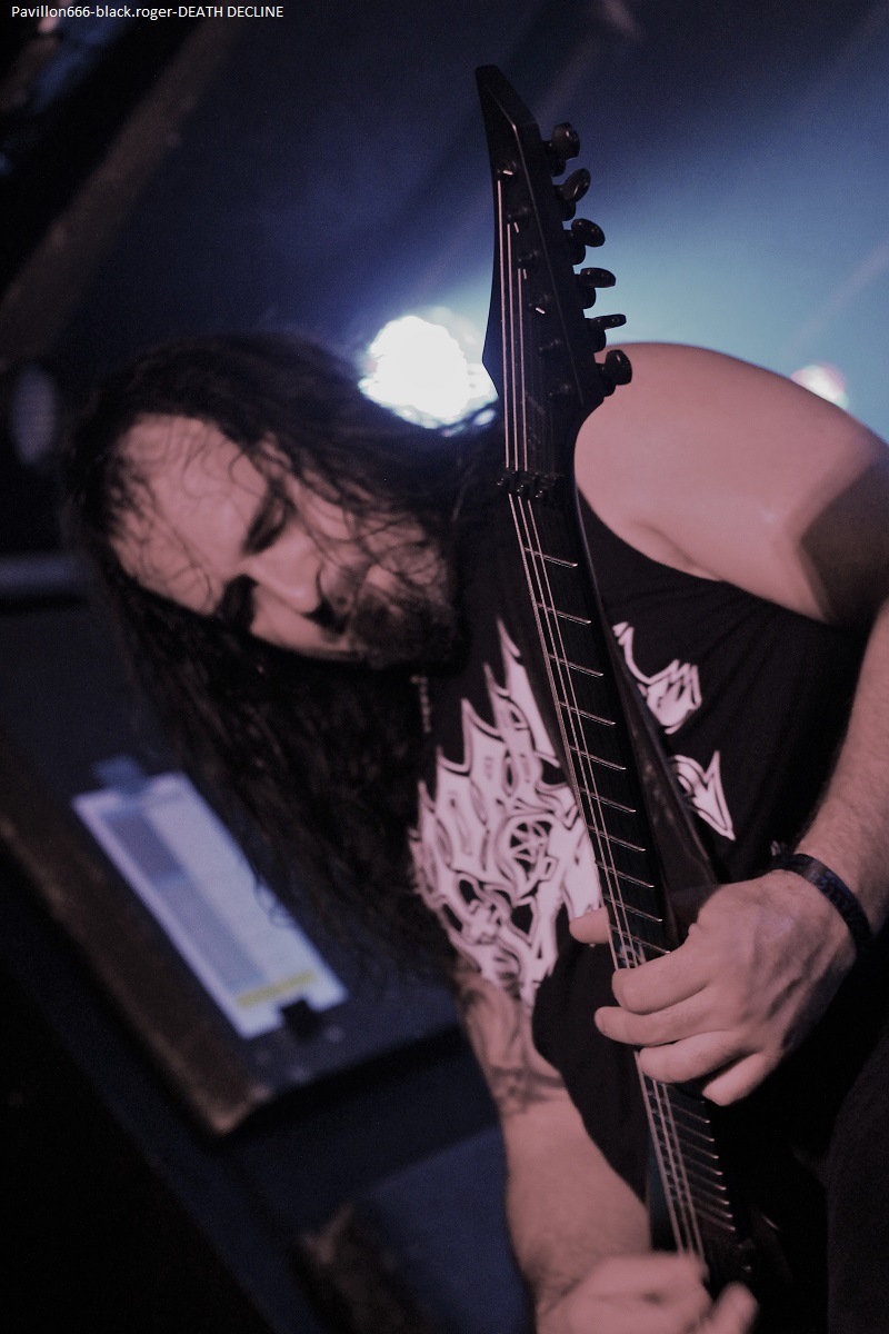 Avec PRISMERIA, les jeunes loups Lyonnais, ça démarre fort, très fort, alors inutile de résister vous allez en prendre plein la « g…le) sans pouvoir vous échapper car le RNE est déjà presque « blindé ». Alors bien entendu avant de venir ce soir dans les sous-sols du quai Arloing vous avez du écouter leur premier EP intitulé « lost individual thoughts » et vous avez aimé je suppose leur thrash/death/core, mais vous ne vous attendiez pas à recevoir cette dose d’énergie live qui fit la loi ce soir. Alors oui, Prismeria a tout comprit au film d’un certain metal extrême mixant avec doigté parties techniques, rythmiques d’enfer et présence indubitable sur les planches. En deux ans seulement Prismeria nous a prouvé qu’il tenait la route (666) et qu’il fallait compter sur lui dans la scène metal locale, et même plus. Groupe prometteur en fait et ce soir la claque fus magistrale (qui a dit comme d’habitude ?). La pression ne va pas baisser avec nos amis Dijonnais DEATH DECLINE qui vont nous faire monter la moutarde thrash/death au nez (facile celle-là !). Avec deux albums sous leurs bras, 10 années d’existence et des concerts marquants, ce groupe montre des signes de maturité indéniables. Ici pas trop de fioritures techniques, mais une certaine agressivité avec des rythmiques plombées à décorner un troupeau de buffles en rut. Le frontman très présent et expressif va prendre le public à la gorge et ne va pas le lâcher le poussant dans ses derniers retranchements. Du coup, sueur, chaleur et mouvements seront bientôt le lot de la soirée, ambiance ! Et comme la formation le dit souvent, « merci pour cette méchante soirée », alors nous on aime votre défonce musicale sans compromis, sans faux-semblants. Dire que XAON était très attendu ce soir serait un doux euphémisme ! La musique de Xaon reste inclassable, tantôt dark/gothique, tantôt death symphonique, tantôt heavy-metal rageur, soit. Leur second album intitulé « solipsis » marque profondément le nouveau territoire de nos amis Vincent Zermatten (guitare, Suisse) et Rob Carson (chant, France) Alors, bien sûr la technicité des compositions et la présence scénique de Rob s’apprécient bien en live pour un voyage où le chaud de la rage se marie à la froideur lourde et mélodique. Mais, habitué aux anciens « live » du groupe, ce soir j’ai été quelque peu déçu par la voix claire du chanteur pour des compositions un peu trop mélodiques à mon goût étant resté sur des voix arrachées et chaotiques du frontman. Mais cela n’engage que moi bien entendu, le groupe évolue c’est son choix et un nouveau public vient se rajouter à l’ancien, pourquoi pas ! leur set fut très (trop ?) léché, mais l’assistance a bien apprécié, alors pourquoi pas ? Set-list en photo. IMPUREZA, c’est tout d’abord le souvenir pour moi d’un concert donné dans le mythique Lyon’s Hall il y a…longtemps, 9 ans peut-être, concert qui était resté gravé dans ma mémoire. Et ce 12 Octobre 2019 je retrouve avec plaisir ce groupe franco/espagnol de death/flamenco cela résumant parfaitement leur démarche unique de metal extrême hautement « calienté ». La violence pure des envois est parfois « dansante » avec cette guitare sèche flamenco en introduction. Les riffs sont confinés ensuite dans un espace pur et dur d’une mort annoncée et, avec ce côté death-metal abrasif, le public s’agite. Les rythmiques deviennent saccadées sans occulter une certaine technicité de bon aloi, ici on est brutal, mais pas que ! Alors vous avez été convaincus par la prestations d’Impureza ? Oui visiblement, mes côtes dans la fosse s’en souviennent encore ! Une seule remarque cependant, on ne vous voit pas trop souvent à Lyon, je dis ça, je dis rien ! Set-list en photo Vous vous doutez bien que ce soir DEATHAWAITS n’est pas venu dans le RNE pour nous « enfumer », quoique ? Non, Deathawaits vient nous présenter ce soir son 4ème album tout chaud sorti du four du death/core/grind et intitulé « rapture smites ». Chart, chroniquer chez pavillon666 a pu dire à propos de cet album que les compositions ont bénéficié d’un certain remaniement de la formation. Ce n’est pas faux, même si l’on n’occulte pas le passé intense du groupe. Alors ce soir ça va faire mal, très mal dans un RNE chaud comme la braise prêt à en découdre avec nos héros lyonnais même si ce soir les 4 formations précédentes ont déjà bien « ratatiné » le public, mais où est passé ma godasse et mon smartphone, dans un pit de folie furieuse. Le 31 Août dernier j’avais déjà pu apprécier leur nouveau set à Roanne lors du Graveyard Fest II et ce soir c’est la même (à part quelques ennuis techniques bien gérés), le show est puissant, accrocheur et explosif tout à la fois. Nous allons donc dire que ce fus du grand Deathawaits, un groupe qui sait « mouiller » la chemise et vous coller au plafond sans que vous y preniez garde. Prestation exceptionnelle donc ce soir, que dire de plus en fait ? Si, que ça valait le « cou » d’être venu, quel direct « in your face » ce fus « abominable ». Set-list en photo. Le Deathawaits Fest fus donc une réussite à tous les égards il n’y a pas photo, mais coup de cœur. Merci aux 5 groupes qui ont assuré comme des bêtes, merci au Rock N’Eat et bien entendu merci au public pour l’ambiance instaurée, on recommence quand ? |