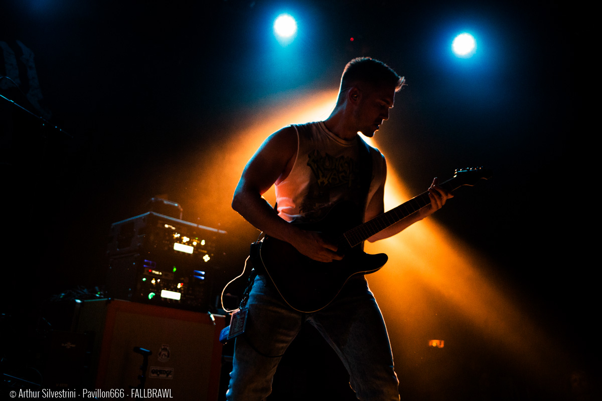Et on commence à toute vitesse par FALLBRAW, avec un timing respecté à la minute près, pas le temps de tergiverser, on sort l’appareil photo et on tente de capter l’énergie qui fuse ! A peine le temps de dire ouf que c’est déjà au tour de de OBEY THE BRAVE. Comment capter cette intensité ? Principalement par des regards, des lumières, des gestes, qui en disent long à eux seuls, et on fait comme on peut, avec une attention particulière aux tatouages, arborés avec panache.