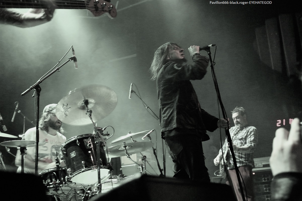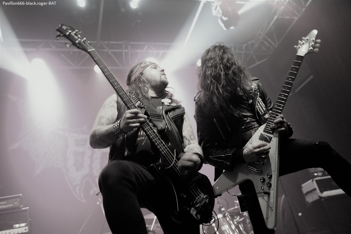 Afin d’ouvrir les hostilités dès 18 heures 30 SVP, c’est BAT qui s’y colle. Ce trio inconnu en ce qui me concerne (et pour beaucoup d’entre nous) a démarré à fond les manettes (les cannettes ?). C’est du speed thrash que je situerai entre Venom et Motörhead pourquoi pas, en tous cas c’est ce qu’il me vient à l’esprit tout de suite. Et puis, et puis on y trouve un arrière-gout de Municipal Waste car, mais oui, nous retrouvons Ryan Waste aux vocaux et à la basse cqfd ! Mais Bat ne se pose pas de question, c’est crade, brut de décoffrage avec un groove infernal. Rien d’original me direz-vous mais ce genre de groupe fait du bien en live surtout, alors « fuck you and die » ! J’ai aimé leur prestation, vraiment, et beaucoup d’autres avec moi je pense ! Avec les Finlandais de ROTTEN SOUND nous entrons de plain-pied dans le domaine du grindcore/death teinté de punk. Ne sont plus tout jeunes (formation en 1993), mais ils vont nous coller contre les murs du kao d’entrée de jeu avec en fond d’écran ces « riffings » à la Entombed et les envolées à la Nasum qui vous décapent les neurones sans problème. Alors, c’est une pluie de décibels, que dis-je un déluge d’agressivité et de violence qui s’abat sur nous. Rotten Sound n’a pas « froid aux yeux » et s’il n’en reste qu’un dans notre cher grindcore sans foi ni loi, ce seront ces extrémistes venus du froid. Ce soir ils ont placé la barre bien haute tel un défi, mais qui va le relever ? Set-list en photo. C’est peut-être MISERY INDEX qui sera à même de le relever ce défi dans un registre plus mortel, plus death (pléonasme ?). En effet ceux du Maryland ne sont pas venus ce soir à Lyon pour enfiler des perles, mais pour nous clouer dans le cercueil du brutal death/grind. Jason et Mark, les deux grogneurs, se relaient donc pour enfoncer le clou sur un rythme d’enfer, et ça ne plaisante pas vous aviez déjà du vous en rendre compte lors de l’écoute de leur dernier « méfait » intitulé « rituals of power ». Misery Index est donc toujours en excellente forme après 20 années de bons et loyaux services dans la sphère du metal extrême. Temps fort ce soir avec eux, ils ont marqué la soirée d’une empreinte indélébile. Du brutal death au sludge il n’y a qu’un pas que nous franchissons allègrement avec la venue sur scène de EYEHATEGOD de Nola tout droit sorti des marécages boueux de Louisiane où le mauvais bourbon de contrebande fait sa loi ! Au final, on ne sait même plus quand cette aventure nauséabonde faite de southern blues, de déviances metalliques et de doom a débuté… C’est probablement dans le début des 90’s, vous le savez comme moi enfin ! Et au fil des ans et toujours avec l’énigmatique guitariste Jimmy Bower cette formation rejoint le club fermé des légendes du rock/metal. Alors ce soir c’est donc la légende du sludge qui vient encore une fois nous faire frissonner les neurones avec un son venimeux et poisseux en direct du bayou de Louisiane. Mike Williams débarque donc sur scène en nous disant « good bye » en faisant mine de repartir, un peu court quand même ! Mais il revient et sur l’intro glauque à souhait fait « voltiger » son pied de micro, et tout démarre enfin pour ce voyage de non-retour nous saturant le cerveau. Riffs punk furieux, mid-tempos crados et maladifs, c’est Eyehategod, culte vous dis-je, culte ! Et puis, et puis, sans fioritures, sans lights superflus, les vétérans du grindcore toujours verts de NAPALM DEATH investissent la scène du Ninkasi Il est exactement 22 heures 10 et l’on va en prendre plein la ‘g…le » (encore !) durant une heure de temps, c’est sans appel ! Barney se lance sur ces planches, il est toujours aussi agité, toujours aussi motivé, toujours aussi enragé dénonçant les « beautés » de notre société de rêve ou de cauchemar, c’est selon ! Et entre deux « speechs » sur fond de tabassage en règle les titres courts mais incisifs font la loi. Depuis bientôt 40 ans ça défonce avec à l’appui des riffs de tueurs, une basse turbo et un batterie énorme accompagnent cette voix de « brontosaure » en rut, un peu plus variée maintenant avec les nouveaux titres. Mais Napalm Death reste indétrônable de toutes façons dans cette mouvance grindcore qui nous va si bien. Je ne compte plus le nombre de fois où j’ai pu participer aux déflagrations du groupe mais à chaque fois c’est la même, la même défonce musicale et la même défonce textuelle. Quelle claque encore une fois reçue ce jeudi 27 Février dans un Kao en sueur, ferveur et mouvements en adéquation avec le groupe, merci Napalm Death d’exister ! Quelle affiche de malade mes amis, la messe du metal extrême a été dite et nous avons « communié » sans retenue avec les musiciens des 5 formations de la soirée. Merci au Ninkasi et merci à Valérie Jmt pour le pass photo accordé à Pavillon666. |