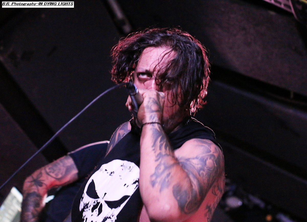 Ce premier groupe c’est donc IN DYING LIGHTS en provenance de Francfort, Allemagne qui nous a assommé d’entrée de jeu à l’aide d’un deathcore pas piqué des vers. Leur set fut court mais intense comme l’on dit dans ces cas-là devant un public un peu « maigre » vu l’horaire imprévu. Mais bon, pour ma part j’ai apprécié, merci les gars vous revenez quand vous voulez !