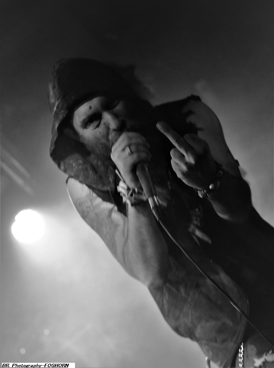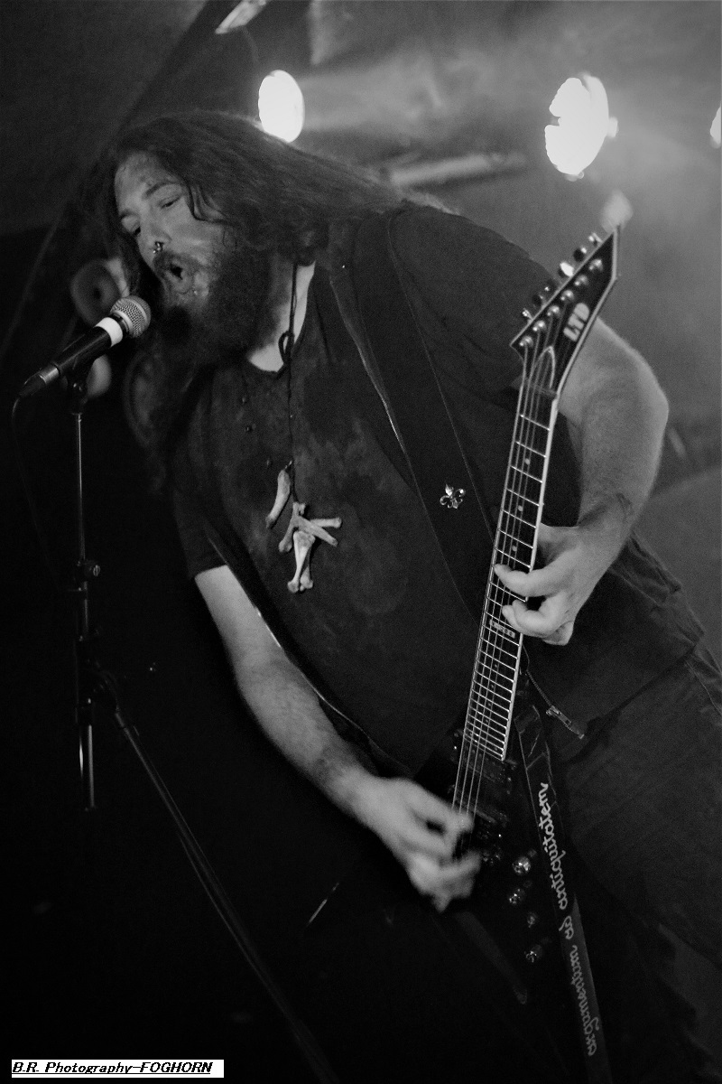 EVIL ERUPTION, après plus de 20 années d’existence remonte à la surface du black-metal propulsé par une nouvelle éruption (sic) de sa musique satanique en diable et puissante cela va s’en dire ! Les visages sont toujours masqués, les bougies allumées contribuent à créer une certaine ambiance destructive et guerrière. Ce retour au live (et peut-être en studio d’enregistrement) nous remplit l’âme de noirceur passionnée. Les titres de FOFOGHORN parlent d’eux-mêmes comme « Le Sang Versé », « Peste Glaciale » ou encore « Notre Rage sera leur Mort ». En effet, à grand renfort de fumée, d’encens et de bougies, le quatuor nage dans les eaux boueuses d’un black-médiéval. Le frontman en fait des tonnes sur scène vivant ses écrits et nous interpelle « De Grès et de Sang ». Bonne découverte que ce Foghorn, à voir absolument en live, ce que nous avons fait ce soir et ce fus hautement apprécié ! Je ne vous présente plus les Grenoblois d’HELLIXXIR et leur thrash-black millésimé. Ils sont venus en ce froid Samedi du Dauphiné jusqu’aux voûtes du Quai Arloing afin de nous rappeler à leur bon souvenir. Quelle évolution pour cette formation en 20 années d’existence, du heavy au thrah pour ensuite devenir plus sombre en mordant à pleine dents dans la galette noire du black-metal maintenant. Alorts ce soir le côté sombre nous envoute (sic) et le coté thrash va exciter ceux du premier rang, je ne vous fais pas un dessin, ambiance survoltée donc ! Le niveau des musiciens étant très élevé et les voix bien death en général sont toujours appréciées et le groupe semble se bonifier encore au fil des ans, on aime tout simplement. Pour aller plus loin avec eux-, écoutez ou réécoutez « The Black Fortress » leur dernier opus en date, vous serez surprit. C’est un album bien construit et bien inspiré, et puis en live, c’est excellent ! Allez, on remercie tout le monde, Golden Stone Events, le Rock n’Eat et les 3 formations présentes et aussi le public qui a fait le déplacement. |