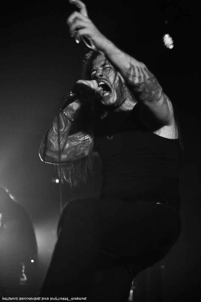 De l’avis même des groupes rencontrés, il y a zéro défaut, bravo à l’équipe de potes aux manettes du Tram… Cinq groupes au programme pour une affiche résolument moderne. Beneath An Obsidian Sky : Blackened Deathcore de Montpellier, Gohrgone : Black Death Metal de Paris, Ocean Encounters : Modern Metal de Tournai (Be), Waking The Sleeping Bear : Nü Metal de Dole et LazyWood : Alternative Rock de Troyes. Le groupe local LazyWood ouvre le bal dans un registre bien barré et haut en couleur. C’est une farandole punk, grunge, funk et metal qui a tourbillonnée pendant 45 minutes dans l’Espace Argence. Un pur moment de folie. J’ai beaucoup apprécié les tenues et maquillages ainsi que l’aisance des musiciens qui ont su faire passer leur vibe au public très réceptif. Une découverte pour moi et une des belles surprises de la soirée. Waking The Sleeping Bear passe la seconde et percute fort ! Un son brut au chant souvent rappé qui raconte et dénonce avec intelligence et efficacité. J’y ai perçu du RATM dans sa rage adolescente et ses convictions, mais avec une aisance hyper mature. Une vrai saine colère se dégage du groupe qui a déchainé la fosse. Ocean Encounters a pour moi, réalisé le sans-faute de ce 5e TramFest. Des morceaux efficaces joués par un groupe en place, sûr de son sujet et maintenant armé d’une chanteuse volcanique qui donne tout le relief aux vocaux de Pieter à la basse. Les Belges ne feront pas dans la dentelle et vont ravager l’Espace Argence en un rien de temps bien aidé par des hymnes très efficaces, modernes et gras comme on les aime. Si tu ne connais pas Ocean Encounters, fonce les découvrir. Le groupe suivant joue carrément dans une de mes catégories de prédilection et le fait superbement. Gohrgone fait du death et est bien là pour nous pulvériser le cerveau et déboîter les cervicales. C’est brutal et sans discussion. Un pur instant de violence maîtrisée et à peine calmé par quelques divagations blacks sensées nous laisser reprendre notre souffle, en vain… La Spartiate et les vannes graveleuses du chanteur nous ont terrassés. Bravo, on ne m’avait pas aussi bien cassé la gueule depuis Benighted. La soirée s’est terminée avec un groupe qui est vraiment dans la tendance actuelle du Deathcore (Thy Art Is Murder, Lorna Shore…) Beneath An Obsidian Sky s’est cru sur un chantier de terrassement et a littéralement roulé sur la salle avec une lourdeur de rouleau compresseur incalculable. On a eu chaud !! Très bien exécuté avec de chouettes samples qui posent l’ambiance et un chanteur survolté qui réclamait en permanence de la violence à ses ouailles si fort qu’il a fini par l’avoir. En effet une grande partie du public à fini sur la scène pour ravager ce qui restait debout de la Chapelle Argence (au figuré, bien sûr, rassurez-vous noble population bourgeoise Troyenne) et c’était bien fun à voir. Well done les amis. C’est pour quand le TramFest 06, j’ai faim ? Merci à TRAM et Maurine pour l’accred, l’accueil et tout. |