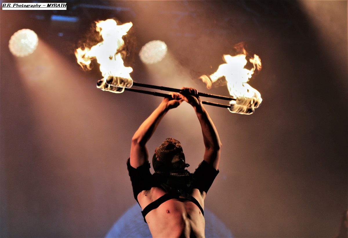 Ici tout est somptueux musicalement parlant, les lights aussi. Ici on joue avec le feu dans tous les sens du terme et des danseuses parcourent la scène en arabesques voluptueuses. Vous l'aurez compris Myrath mixe son metal avec la musique originelle de son pays de façon remarquable. Son énorme, technique irréprochable, mise en scène incroyable, toute leur musique nous a fait voyager sans crash ce soir !