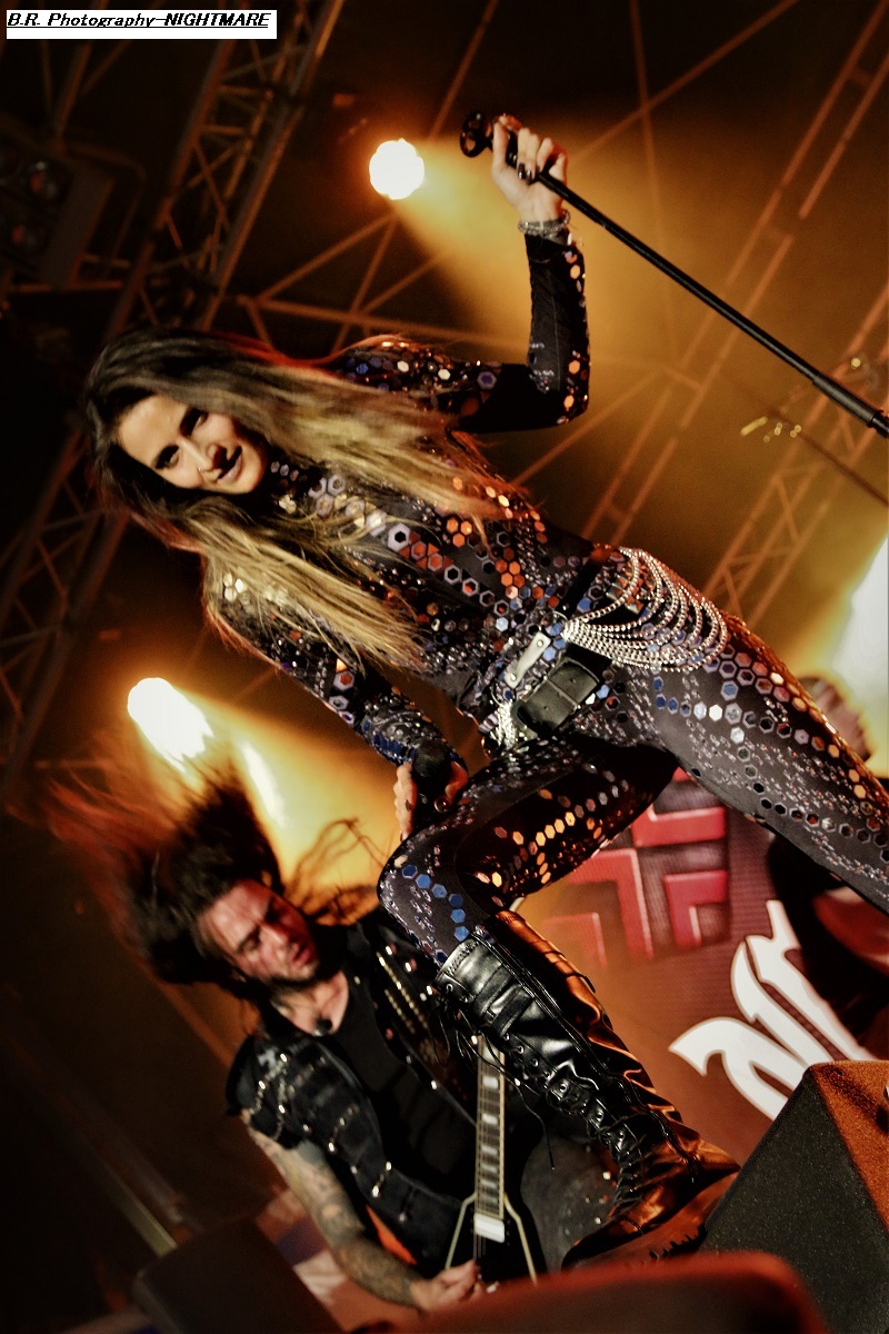 NIGHTMARE atterri ensuite sur le terminal 2 sans encombre. Cette formation de heavy-metal à l'ancienne qui a su se renouveler au fil des décennies se présente avec sur scène maintenant leur nouvelle chanteuse Barbara va su convaincre encore et même plus ! Moi le premier car leur prestation m'a vraiment surpris tant musicalement que visuellement, amen !