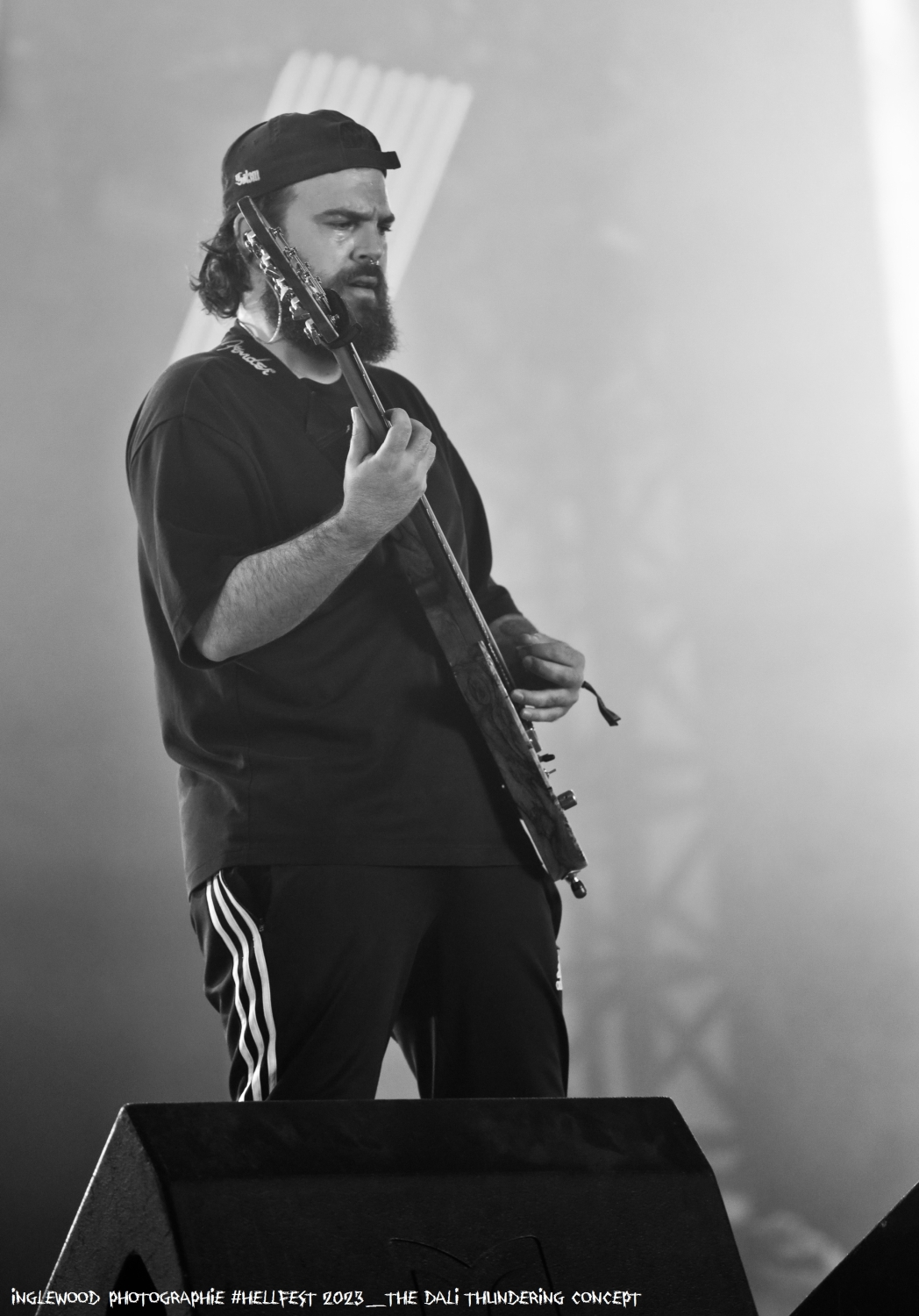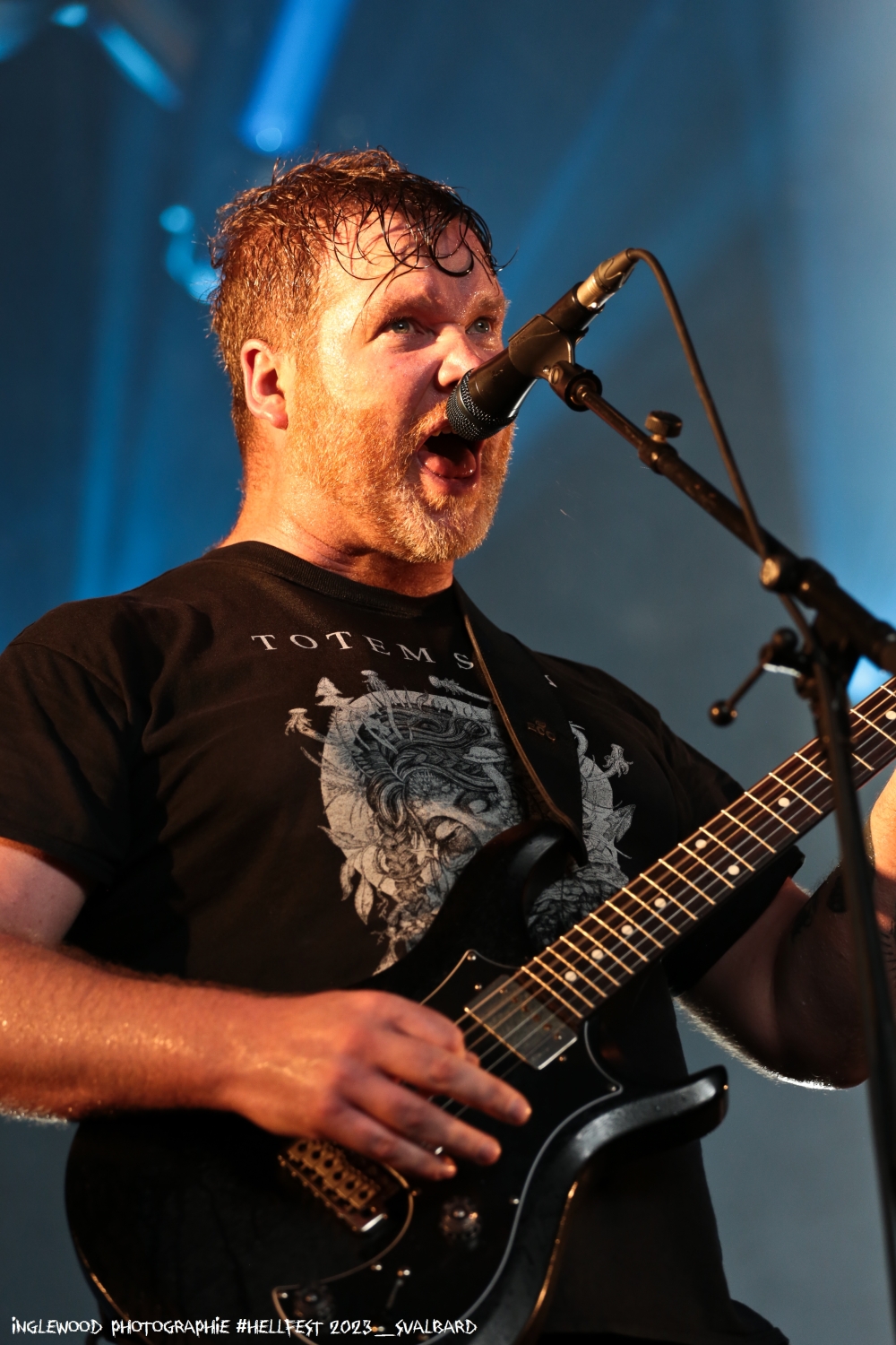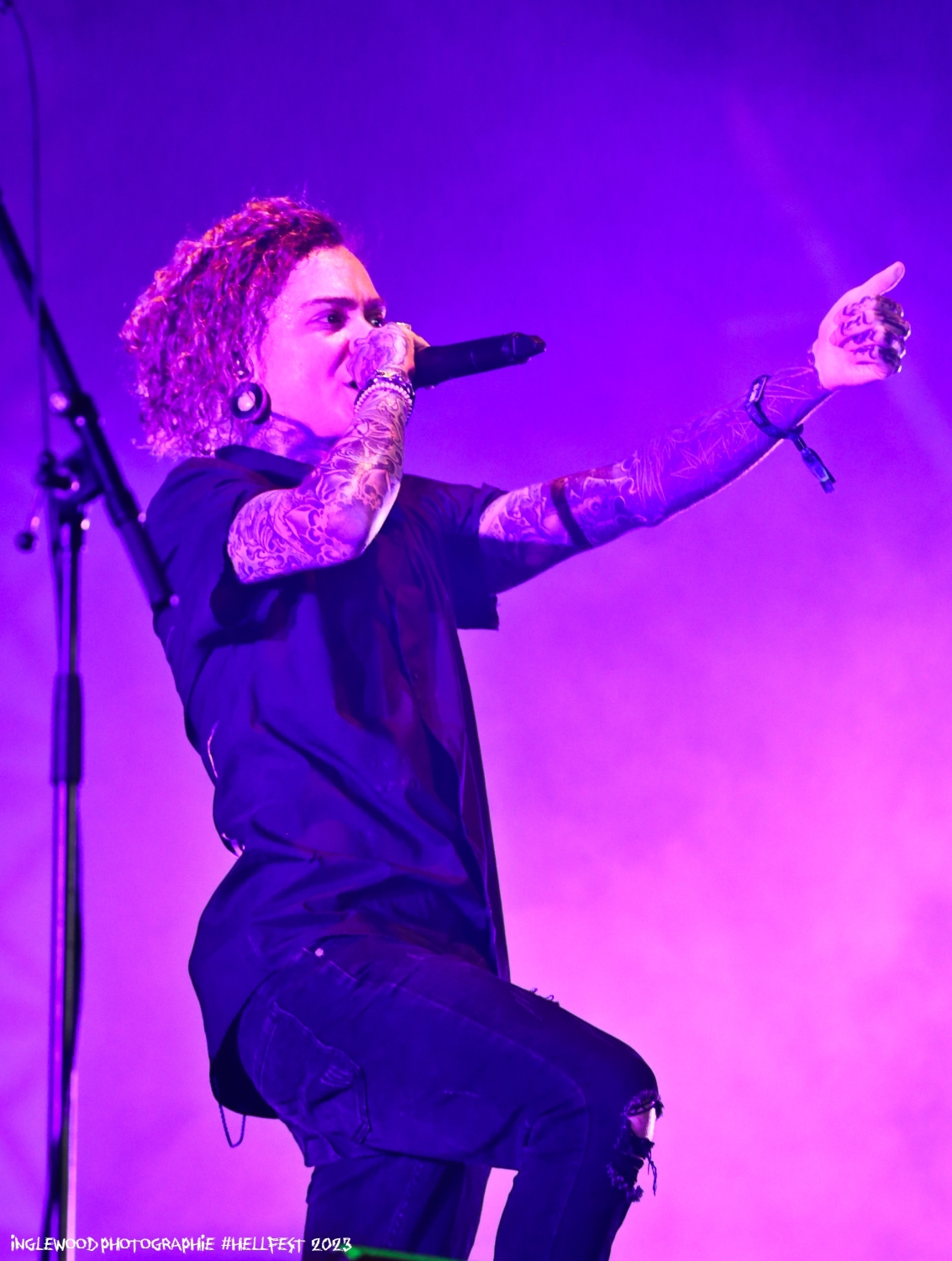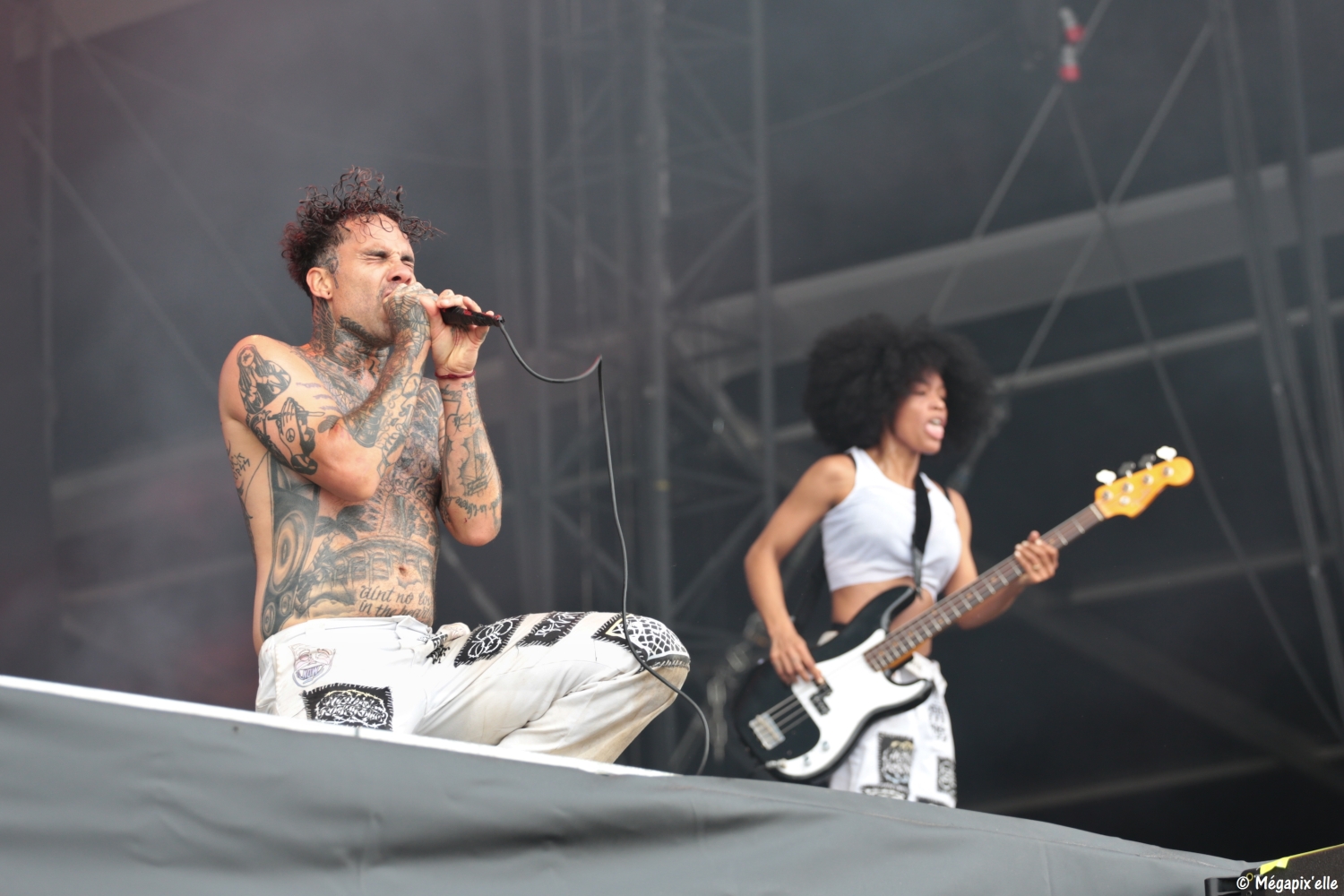 11h40-12h10 : Bloodywood-MS2 Groupe indien bénéficiant d’une certaine hype sûrement dû au côté pittoresque, Bloodywood m’a laissé la même impression en live que sur disque. Ce n’est pas ouf ! OK, les sonorités du tambour (dohol) sont dépaysantes, mais la musique très néo 2000’s est d’une grande banalité et le chant rap n’est vraiment pas extraordinaire. Le public présent a eu l’air de bien apprécier. 12h50-13h30 : Fever 333-MS2 Ouch, et bah s’il y en a qui sont capables de mettre le bazar sur scène, c’est bien Fever 333 ! À la suite du départ de pratiquement tout le groupe, on a eu droit à un tout nouveau line-up. Une bassiste en feu, un chanteur hyperactif pour un set sous extas !! Je l’ai vécu en grande partie dans la fosse photographe et j’étais vraiment dans l’œil du cyclone, la machine à laver en mode essorage. Il nous a tout fait et à vraiment explosé la Mainstage, de la dynamite d’une grande efficacité en live. 14h20-15h05 : Svalbard-Temple J’attendais avec une grande impatience les Anglais de Svalbard. Ce groupe est assez unique, mixant le punk hardcore, le post-rock et le black metal mélodique, oui… La joie irradiait le groupe, ce plaisir de performer au Hellfest et de réaliser l’accueil chaleureux de la Temple sans doute. Musicalement vraiment puissant, je me suis bien laissé entraîner cependant les musiciens sont assez statiques et un peu spectateurs de leurs prestations, c’est dommage. 18h40-19h30 : Born of Osiris-Altar Alors, belle découverte que ce groupe de deathcore que je ne connaissais pas, mais que mon copain Luca m’a chaudement recommandé juste avant. Une belle séance de sport, hyper bien foutue, et oui, le groupe ne ménage pas ses efforts pour faire sauter la Altar qui ne demandait que ça. Musicalement, c’est efficace et très technique, je vais me pencher sur la discographie. 20h40-21h40 : Lorna Shore-Altar Mon attente de ce HF2023 ! Loupé au Motoc 2022 (le groupe avait annulé.), il était hors de question de louper ça. Je ne fus pas déçu musicalement, c’était TRES violent, je ne fus pas déçu par l’ambiance, le public était en feu et connaissait pratiquement toutes les paroles, mais … je fus carrément déçu par la présence scénique. En gros, rien… il ne se passe rien sur scène, Les musiciens sont soudés à leur position, Will n’a pas bougé de ses 2 m² comme les autres, bon c’est un concept. Donc je suis super heureux d’avoir vécu ça (à la barrière, c’est fait.) mais j’aurai aimé une plus grande communion. 21h00-23h00 : Iron Maiden-MS1 Mon premier concert d’Iron Maiden. Alors, est-ce que l’ado des années 80 en moi qui avait acheté sa K7 de « Killers » allait ressentir ce petit frisson nostalgique ? Oui et non, j’ai trouvé ce concert sympa mais pas ouf, je voulais du grand spectacle et j’ai eu un truc très pépère. Agréable, car la set list était (surtout à la fin) sympa, mais j’ai eu l’impression d’un groupe qui fait le travail, mais ne se donne pas vraiment. Drôle d’impression, en fait, comme si je n’étais jamais rentré dans le truc, dommage. Dimanche 18 juin 2023 12h50-13h30 : The Old Dead Tree-Temple À l’abri de l’orage (torrentiel) sous la temple, je me suis félicité que The Old Dead Tree joue à cette heure. J’aime ce groupe magnifique, que d’émotion, dommage que le public ne m’ait pas semblé très réceptif. Personnellement, j’ai passé un superbe moment. Quelle présence, quelle tension, un groupe au sommet. 14h20-15h05 : Treponem Pal-Temple Vétérans français du metal industriel, Treponem Pal a proposé un set carré et froid, j’ai trouvé ça très daté en fait et assez hermétique. Je ne suis pas grand fan de metal indus donc, je ne suis sûrement pas le mieux placé pour en parler, mais il me semble bien que les spectateurs étaient là plus pour s’abriter qu’autre chose. 14h20-15h05 : Hollywood Undead-MS1 Je n’ai vu que la toute fin dans l’attente du groupe suivant, mais je me suis fait attrapé par Hollywood Undead. Hyper moderne, leur rapcore, nu-metal est rafraîchissant et dynamique. Un groupe que je connais peu et sur lequel je vais me pencher. 15h10-15h55 : Halestorm-MS2 Cela faisait trop longtemps que je n’avais pas vu Lzzy et j’ai été, encore une fois, scotché par la prestation de la chanteuse. Une voix et un charisme incroyable, elle aimante les regards et tient la baraque comme personne. Un set trop court, j’en voulais encore, ce groupe est une valeur sûre. 16h00-16h45 : Hatebreed-MS1 Vu de trop loin, je ne suis pas rentré dedans même si la fosse était en feu. 16h50-17h40 : Electric Callboy-MS2 Chaque concert d'Electric Callboy est une fête et aussi un grand carnaval. Mêlant électro et métal, les titres du groupe ne laissent personne indifférent. La fosse est ultra agitée, les pavés sont parcourus sans cesse de circle pit ou de pogo et ceux qui ne foulent pas la terre s'envolent dans le plus grand nombre de slam que le Hellfest ai compté cette année. Il faut dire que Kevin et Nico, les vocalistes du groupe, sollicitent le public avec vigueur et celui-ci rend coup pour coup. Les paroles défilent parfois sur les écrans, mais même lorsqu'elles ne sont pas affichées, elles sont scandées par des milliers de personnes. Certains sont déguisés ou perruqués à l'image des clip Pump It et We Got the Move, tout comme les Callboy le sont lorsqu'ils jouent ces deux parfaits représentants de leur dernier album Tekkno, qui a été interprété en quasi-totalité. 17h45-18h35 : Amon Amarth-MS1 Je ne comprends pas l’attrait pour ce groupe mais il y avait énormément de public, skoll ! 18h40-19h40 : Crisix-MS2 On attendait Incubus avec excitation et… annulation, Brandon est malade ! Bon et bien, c’est dommage, frustration, énervement, acceptation et on repart. Ce sont donc les espagnols de Crisix qui prennent possession de la mainstage . Quoi de plus roc