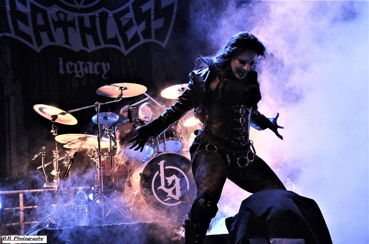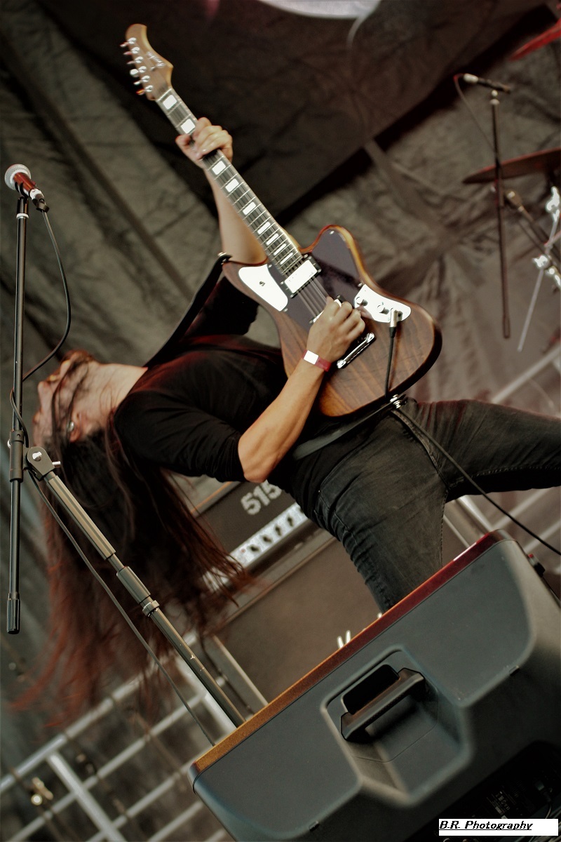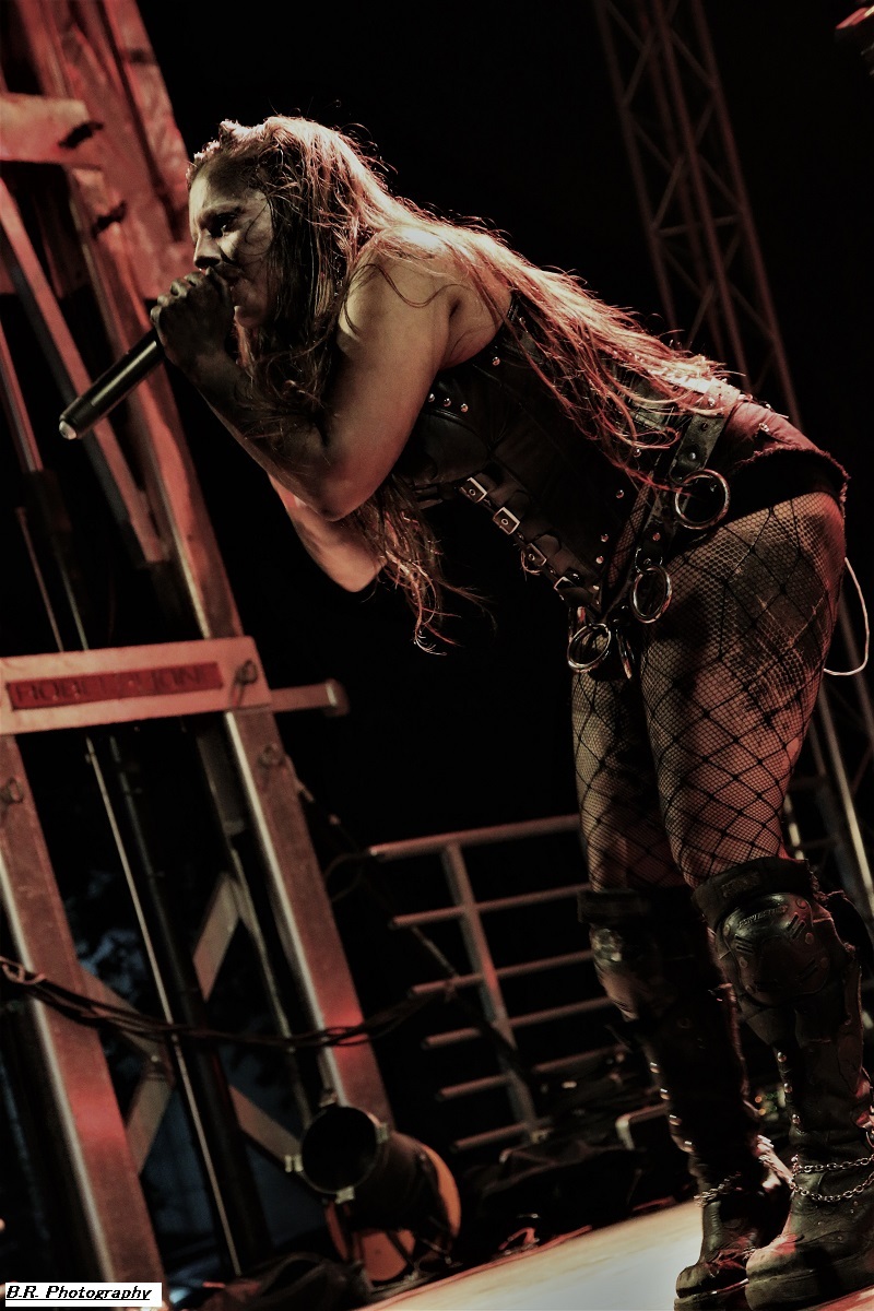 A 17 heures, ce n'est pas encore l'heure de l'apéro (quoique), mais l'heure de déguster la prestation de WHISKY OF BLOOD. Voilà donc du hard-rock bien ficelé qui fait taper du pied comme l'on dit communément, c'est « sex, drink and Leymfest », rock n'roll quoi ! Leur set va mettre enjambe un public d éja la avec notamment des compositions qui figureront sur leur prochain album, des titres bien sentis, on aime enfin, bravo les gars et fille pour ce binaire en folie ! La fanfare KARLEK toujours fidèle à elle même reprend des classiques du metal entre chaque formation du festival (on me dit à l'oreille qu'ils ont même reprit un titre de Destinity). Bravo l'équipe, c'est de la bonne, continuez donc comme cela ! LAST ADDICTION est né dans les Terres Froides du Dauphiné mais ils nous convient à un concert tout en chaleur à l'aide du chaud et froid de leur post-core, post metal, post-rock, poste quelque-chose qui se veut diversifié entre passages respirant une certaine rage et des envolées metalcore du plus bel effet. Le public, leur public fidèle du groupe suit avec attention l'ascension de cette formation promise à un bel avenir, amen ! LODZ qui prend la suite nous emmène dans un monde particulier où les étiquettes courantes n'ont pas lieu d’exister. Lodz nous propose donc des voyages plutôt atmosphériques, mélodiques et souvent tortureux et torturés. Mais tout cela reste bien puissant à l'aide de lourdeurs doomesques bien entendu. Après 4 albums et de nombreuses prestations « live », ils n'ont plus rien à nous prouver. Beau concert ce soir à Leyment ! Après un certain calme sous-jacent, voici l'orage nommé EIGHT SINS avec son menu pimenté de thrash-core qui va déclencher la guerre ni plus ni moins dans un public prêt à en découdre et chaud comme la braise. Au menu donc mosh-parts et circle-pits enragés mais pour le fun ! Le frontman nous invite à la destruction à l'aide de riffs tranchants et malsains, mais le tout reste non dénué d'humour quand même, faut pas déconner !. Alors c'est une certaine rentrée des classes hardcore ce soir avec Eight Sins, Loxiput nous annonce la couleur c'est « love, beers and moshpits ». Le groupe n'a pas fini de nous éclater la cervelle, et les jambes, il semble même se bonifier avec le temps voyons ! DESTINITY, poids lourd de la scène Lyonnaise (mais pas que) avec ses 10 albums parus depuis la fin des 90's, est venu ce soir se frotter au public du Leymfest qui l'accueille avec enthousiasme comme il se doit. Et puis comme nous l'avait suggéré leur album du retour « In Continuum », Destinity nous propose à nouveau une certaine violence mélancolique sublimant son engagement qui nous à toujours proposé son death mélodique clin d’œil à l'école Suédoise dite « death de Gotheburg ». Un death agressif et groovy à la fois et en live nos amis Lyonnais tiennent le public au creux de leurs mains en nous emmenant sur les chemins d'un certain death-melo old-school toujours accessible, on aime DEATHLESS LEGACY ce sont les fils et filles spirituels du fameux groupe Italien Death SS et leur passage sur la scène du Leymfest ce 2 Septembre 2023 va laisser des traces dans nos mémoires avec donc une découverte se révélant magique, occulte et intemporelle. Alors ici on navigue entre black-metal, horror metal et metal gothique. Ici le set est coloré et théâtral, à l'Italienne pourrait-on rajouter. Chacune de leur composition offertes ce soir voit l'intervention de personnages inquiétants s’adonnant à des rituels glauques et malsains, Tout devient envoûtant sur des rythmiques souvent plombées et incendiaires de neurones. La chanteuse/prêtresse Steva mène son petit monde musical à la baguette, une baquette magique semblant diriger les musiciens pour une messe noire aux évulsions talentueuses. Bref, Deathless Legacy, un nom à retenir et malheur à vous si vous ne pouvez venir les apprécier en « live », quel spectacle merveilleusement malsain, Je ne trouve pas les mots pour remercier les organisateurs passionnés et les bénévoles, techniciens et autres instigateurs de ce Leymest. Toiut était parfait jusque dans les moindres détails et l'on ne peut que s’exclamer « quel festival » ! Alors un seul souhait, celui de revenir dans ces lieux pour un prochain Leymest , le 9 en 2024 bien entendu, amen ! |
