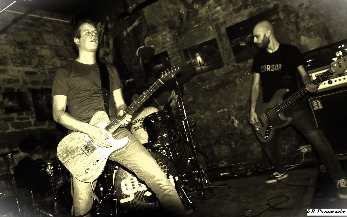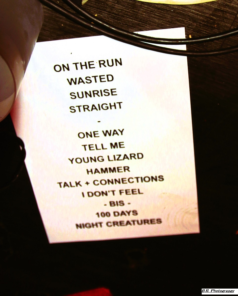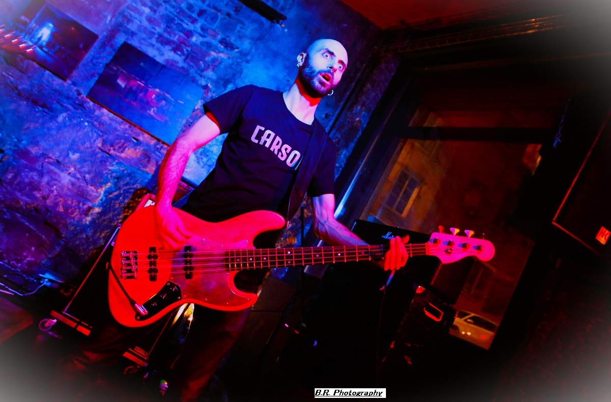 Ces trois groupes ont attiré un public conséquent venu se réchauffer dans ce lieu sympathique. La fumée dans les yeux, un éléphant me regarde (Antoine des sixties) mais qui s'en souvient encore ! Depuis 2022 les 4 musicos de CUSHDRIVE ont déjà bien bossé pour leur aventure en enregistrant 2 Eps, « The World After » et « Walk on the Warm Sand ». Alors ça sent bon la Californie et le punk « à roulette » (non péjoratif »). Et ce soir ils sont remontés comme des « coucous » suisses, mais non, ce sont des « gones » qui en veulent. Et leurs titres vont prendre une autre dimension ce soir, la dimension du « live ». Finalement, ce sera pas mal, pas mal du tout même en une petite demi-heure, ils ont revisité le punk des 90's et c'est de la « bonne » comme dirait mon ami le keupon fou. Vous l'aurez compris, ils ont assuré comme des bêtes sur la petite scène du Farmer et nous avons aimé. Alors la suite SVP on vous retrouvera avec plaisir sur les planches d'ici ou d'ailleurs ! Ceux de FLYING DISK, trio transalpin de Fossano, sont eux aussi remplis d'énergie afin de nous faire goûter à leurs pizzas. Mais non voyons, à leur noise/rock/stoner qui trahit leurs débuts punks. Depuis 13 ans ils nous abreuvent de bon son en album et en « live ». Voici donc un chanteur/guitariste bien dans ses riffs et ses vocaux, un bassiste qui remue jusqu'au sol les grosses cordes de son instrument et un batteur dont le jeu me fait penser à Keith Moon de The Who (pour les plus anciens). Et cela nous donne bonne impression devant nous, on adhère pleinement à leur démarche à la mélancolie quelque peu urbaine (voir les artworks de leurs pochettes de Cds). Alors bon, tout ça c'est bien accrocheur et l'on aime évidemment. Entre les aventures psychédéliques des 70's et le revival de cette même scène dans les 90's, nous retrouvons nos amis Italiens de GIÖBIA qui vont ce soir nous transporter dans leur « ailleurs » à l'aide de sons parfois dissonants sur les rythmiques obsédantes à vous faire entrer en transe ou bien voyager dans un monde hypnotique où régnait à une certaine époque un rock inventif devenu stoner actuellement. Alors nous voyageons de titres en titres parfois longs et surtout instrumentaux, la voix n'étant là que pour accentuer notre dépendance à leur space-rock où nous avons à l'envi, guitare/basse/batterie et orgue hamond, sitar et bouzouki qui viennent grossir le propos et l'ambiance. Bien apprécié chez eux en Italie, cette formation née à Milan en 2004 ne m'était pas encore connue, alors ici ce soir je déguste leur musique sans modération, belle découverte et même plus, amen ! Merci le Farmer pour nous avoir proposé ce plateau qui valait largement le déplacement ! |
