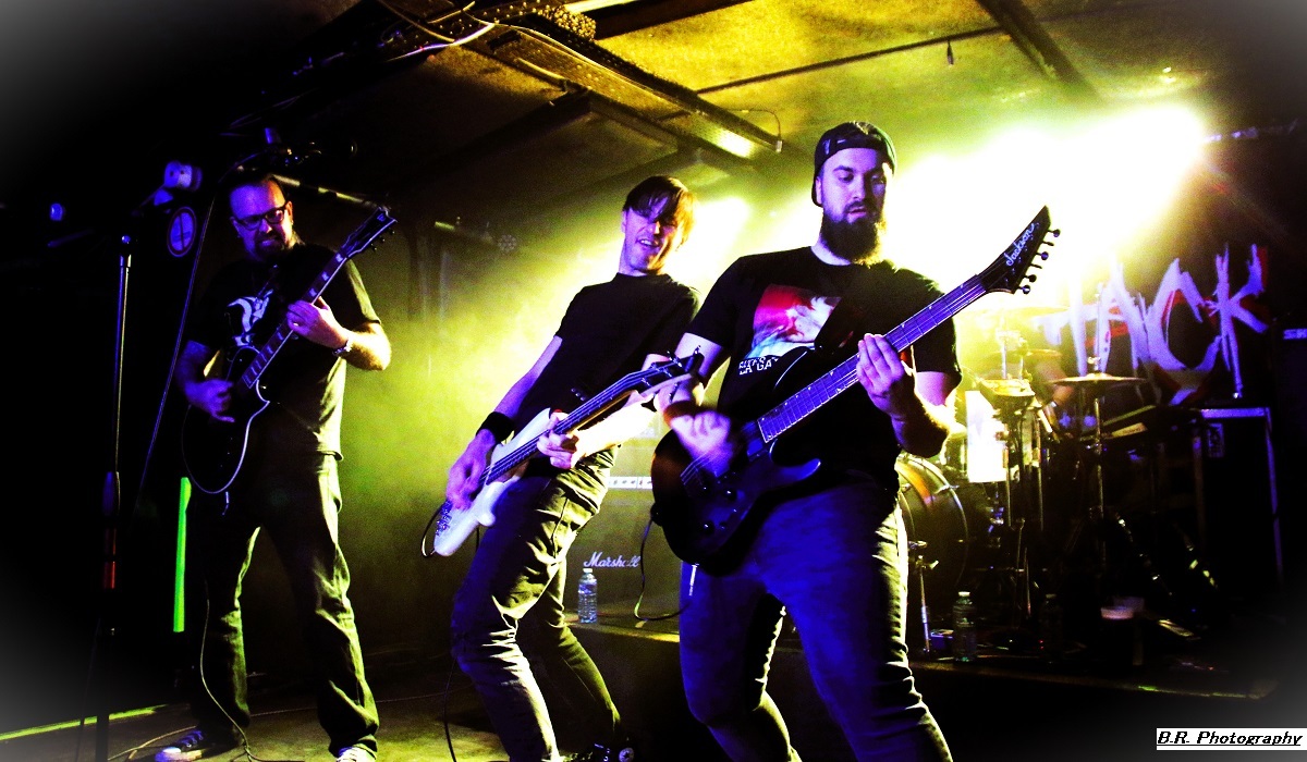SUPERSHOTGUN, c'est Igor et ses machines avec son projet syntwave/darksynth droit dans ses pompes (fusil?) qui nous emmène dans un univers ludique quelque part entre un Perturbator plutôt gothique et un Carpenter Brut dans une veine plus agressive. Ses compositions sont bien agencées et nous permettent de nous replonger dans le ciné et les jeux vidéo d'une époque pas si lointaine en fait. Alors que dire de plus ? Que ce fus bien apprécié tout simplement, on aime ! Les Stéphanois de HEART ATTACK GENOCIDE ne sont pas venus à Lyon ce Samedi soir pour laver en famille le linge noirci des « crassiers » miniers, mais pour nous plomber la matière grise à l'aide d'un metal indus imparable d'efficacité. Alors on pense au mur du son propre à un certain Ministry, mais pas que. En effet il y a dans leurs envois énervés du punk/thrash sale et méchant. Depuis l'arrivée il y a maintenant un an d'un second guitariste, le combo a renforcé sa puissance de feu avec il faut le souligner une batteuse à la frappe infernale et un hurleur qui nous a démolis ce qu'il nous restait de neurones. Leur set fut bon, très bon même que diable ! En fait ce fus un « shotgun genocide » dirons certains ! Mais en vrai, ce fus les « vrais » SHOTGUN LOGIC qui vont nous ébouriffer le corps et l'esprit à l'aide de leur speed thrash dément qui va mettre tout le monde d'accord. Et dès le premier titre ça va « valser » dans un Rock n'Eat en chaleur et en sueur, mais où est donc passée ma godasse ? Ces musiciens Lyonnais chauds comme la braise vont donc nous coller au plafond durant un set implacable sans temps morts sans aucune « ballade » métallique. Force est de constater que Shotgun Logic est un groupe débordant d'énergie qui monte, qui monte, d'ailleurs nous avons appris qu'ils vont nous le démontrer encore une fois sur la scène du Lions Metal Fest dans quelques mois. C 'est mérité tout simplement, on aime fatalement. Et n'oubliez pas en rentrant chez vous d'écouter leur nouvel EP « Adaptive Manipuylator », un must ! Merci donc aux trois groupes qui ont « démonté » les sous-sols du quai Arloing ce 13 Janvier 2024. Et bien sûr il convient de remercier notre club rock préféré pour l'accueil et merci au public déchaîné pour l'ambiance instaurée, amen ! |