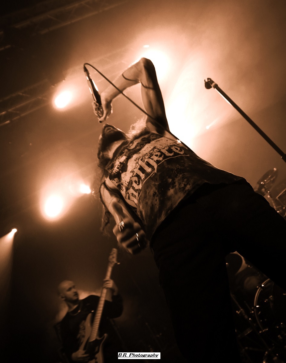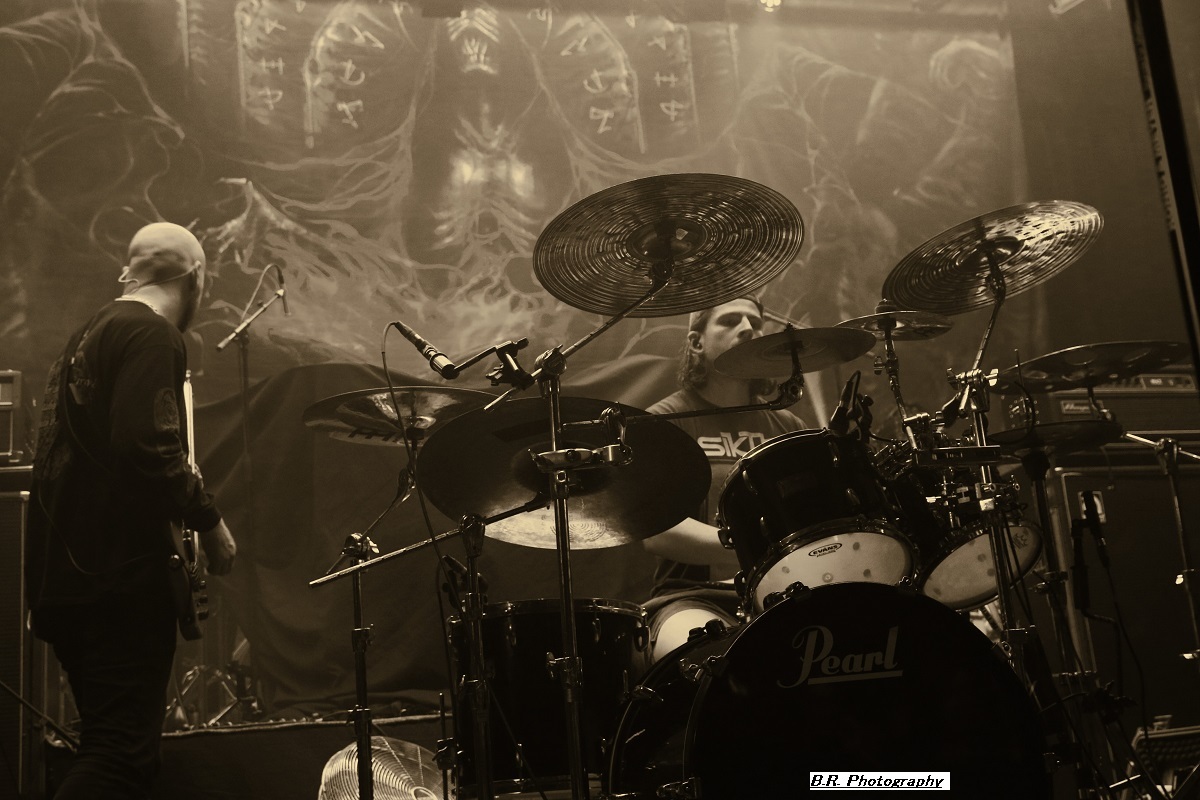 Le petit bal de la-mort-qui-tue débute avec les « kiwis » d'ORGANECTOMY, et c'est brutal comme entrée en matière. Forts d'une discographie d'un EP et de trois albums parus depuis 2014, le Néo-Zélandais ne fait pas dans la dentelle en mixant du old-school avec du death moderne pour un résultat groovy, mais ravageur. Ici on nous interpelle avec quelquefois des intros presque calmes avant de nous écraser ce qu'il nous reste de neurones avec de mosh-parts soudains dans une ambiance de fin du monde. Bref, ce fus du « direct in your face » et l'on a forcément aimé leur prestation qui nous a plongé dans le bain mortel d'un metal efficace en diable. Avec SANGUISUGABOGG on tombe dans un registre plutôt gore où certains titres nous font penser à Mortician les garçons bouchers de New-York. Avec un nom de groupe pareil à coucher dehors avec un billet de logement, nous avalons leur menu crasseux. C'est épais, ça flirte avec le grind, c'est agressif dans les envois parfois entraînants. Le son est parfois saturé, notre matière grise aussi, aargh ! Alors ce quatuor s'aventure parfois aussi dans le « core » et l » « beatdown » pour mieux varier les plaisirs de sa démarche entre old-school et avancées plus modernes. Bref, c'est efficace en live et l'écoute de leurs deux albums « Tortured Whole » (2021) et « Homicidal Ectasy » ne contredira pas mon propos, amen ! Du deathgore au deathcore il n'y a qu'un pas que franchissent aisément nos amis de Spokane, état de Washington aux « states » ENTERPRISE EARTH qui ne sont pas venus ce soir à Lyon pour nous susurrer de douces mélopées, mais pour nous envoyer dans les dents un mélange violent de brutal death mâtiné de « core ». Alors, dans un Totem en ébullition tout part en « live » avec un peu d'aérien suivit d'un déferlement bien slam et des rythmiques char d'assaut. Nous pouvons dire alors que cette déferlante valait le « cou » tout simplement, quelle claque ! Ce groupe est donc insaisissable sur scène et le public va devenir quant à lui incontrôlable, comment résister à leurs boulets, rougis, set excellent, c'est sans appel ! Et puis, et puis, le moment très attendu de revoir les légendaires death-metalleux de New-York SUFFOCATION arrive, alors il va falloir tenir sa place devant la scène pour subir les coups de boutoirs d'un public qui est venu ce soir afin d'en découdre mais surtout afin d'apprécier cette venue en terres Lyonnaises de l'un des groupes phares du metal extrême. Avec une discographie longue comme le bras et notamment leur dernier « méfait » sous leurs bras intitulé « Hymns From the Apocrypha », ils arpentent l'Europe avec une tournée destinée à propulser dans les charts ce nouvel enregistrement, leur 9ème album en fait. C'est maintenant Rick Myers qui mène la troupe au combat après la tournée d'adieu de Frank Mullen. Et malgré les changements de line-up le groupe frappe fort ce soir malgré un son pas toujours au top niveau. Mais qu'à cela ne tienne, le frontman assure et en fait des tonnes montant au créneau d'une violence et d'une présence incroyable. La basse racle par terre, les guitaristes mettent en avant leur dextérité et leur tranchant à l'aide de « miaulements » et de « tricotages » techniques. Les soli s'aventurent dans le mur du son. Ambiance lourde et apocalyptique au menu, Suffocation ne faiblit pas, incroyable. Du coup, de « Seraphim Enslavement » au rappel « Clarity Though Deprivation » en passant par « Breeding The Spawn », « Pierced From Within » et « Funeral Inception », ce fus la dévastation (re) du Totem ce soir, amen (bis) ! Encore une fois merci à Sounds Like Hell Productions pour cette affiche de metal extrême bien sentie, et merci au 4 groupes qui ont fait « danser » le Totem de Rillieux que nous remercions également pour l'accueil. |