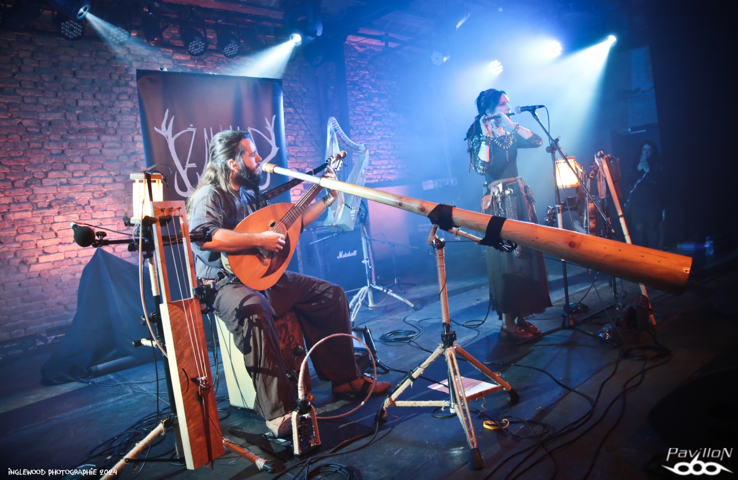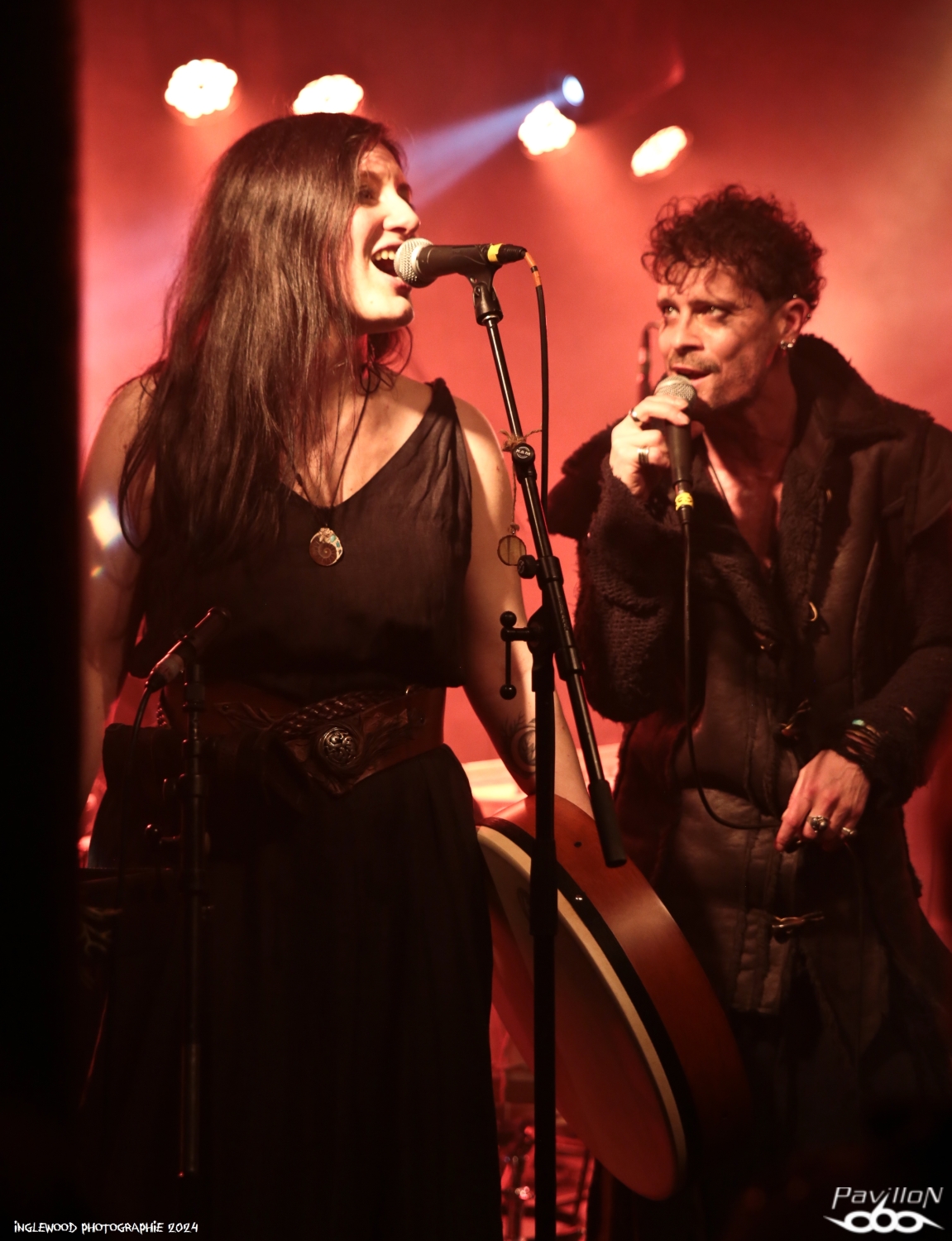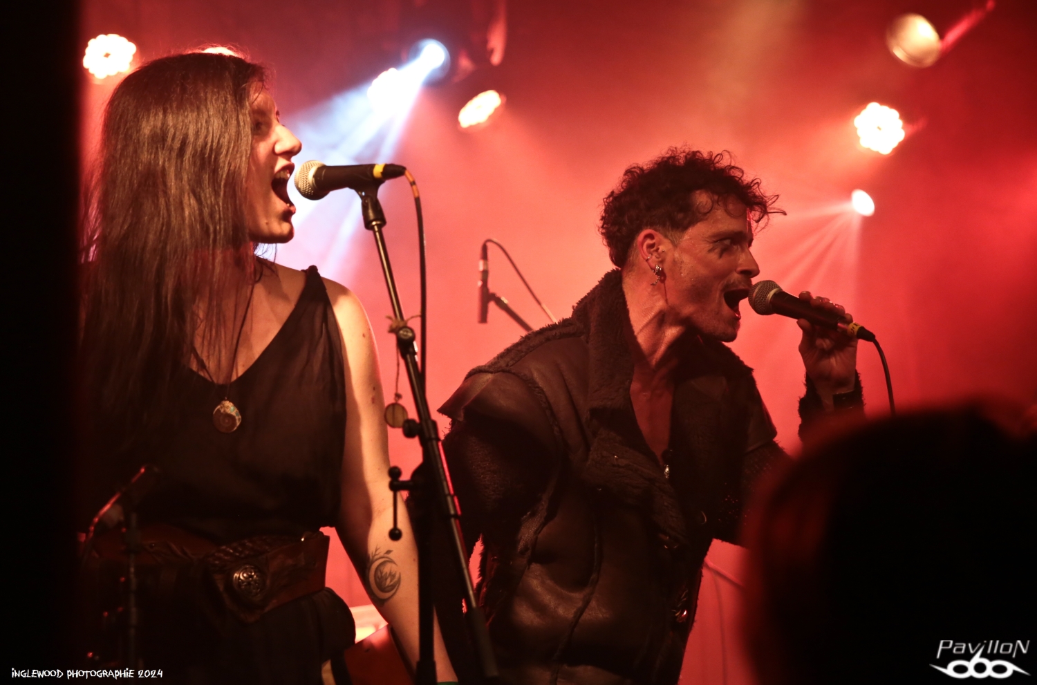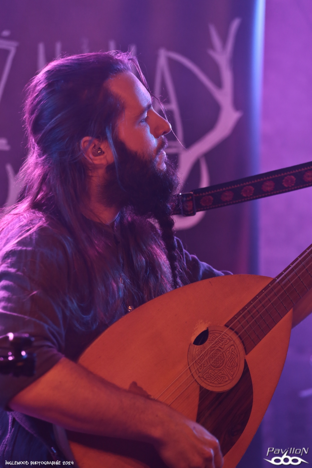 Ce festival pluriculturel est unique en son genre, proposant deux jours d’immersion dans la culture païenne dans un lieu magnifique et unique. Petit mot avant que je n'oublie sur l’équipe de bénévoles, que ce soit à l’accueil, au bar ou à la sécu, nous n’avons rencontré que des sourires et des gens bienveillants et visiblement heureux d’être là, tout comme les spectateurs et exposants d’ailleurs. Donc, la partie expositions et fête/animations médiévales nous a vraiment convaincus entre danses, contes, spectacles de feux, les sollicitations ne manquaient pas et furent de qualités. Pour une plus grande immersion, la restauration et les boissons étaient également typiques et rustiques (dans le bon sens du terme). Nous avons dégusté de la cochonnaille grillée et bûmes moulte hydromel et hypocras fameux et revigorants. Les exposants en grands nombres souvent des artisans présentaient leurs créations bijoux, œuvres, romans ou textiles à l’extérieur ou sous la halle (le caravansérail), une occasion de refaire sa garde-robe, de s’acheter une nouvelle corne à boire ou de décorer ses oreilles. Deux salles se font face pour accueillir les concerts. Une assez intime et l’autre de dimension d’une capacité plus habituelle. Excellente qualité sonore et visuelle, le Cernunnos n’économise pas sur l’infrastructure pour garantir des conditions optimums aux spectateurs. Nous avons assisté à quelques concerts orignaux, parfois décalés, mais toujours de grande qualité. Quelques mentions pour « MORMIEBEN » qui a fait resonner l’abreuvoir de chants de pirates, « LA MAISNIE HELLEQUIN » pour les leçons de danse, « VANSIND » pour ses accents et folk et nos deux coups de cœur « CESAIR » et « BLOD DYR ». « CESAIR », certes amputé de sa chanteuse a délivré une prestation intense, émotionnelle et chargé. Le groupe nous a proposé un mélange de musique folklorique et ethnique de l'Orient qui a envouté une grande partie du public. Quant au quatuor français « BLOD DYR », c’est plutôt sur la route des contes et histoires de la mythologie nordique qu’il nous a entraîné. Plus qu’un concert, c’est une véritable odyssée que nous a raconté le groupe, des musiciens charmants et charmeurs s’accompagnant d’instruments traditionnels ont touchés une audience envoûtée et passionnée. Un moment hors du temps qui collait très bien à l’ambiance du festival. Pour conclure, je ne saurai que vous conseiller de vous rendre aux futures éditions, en famille ou entre amis, vous passerez, comme nous d’excellents moments. |
