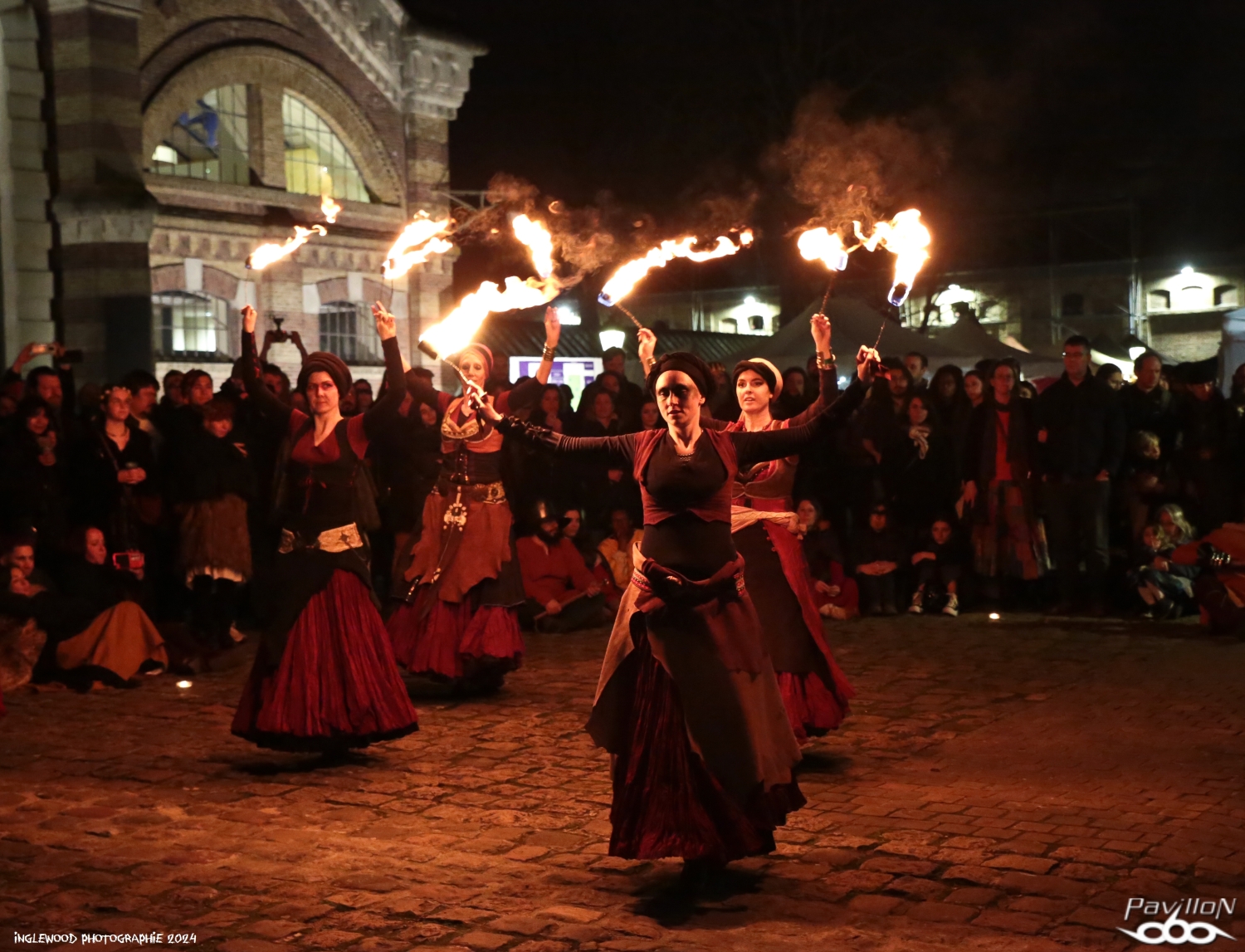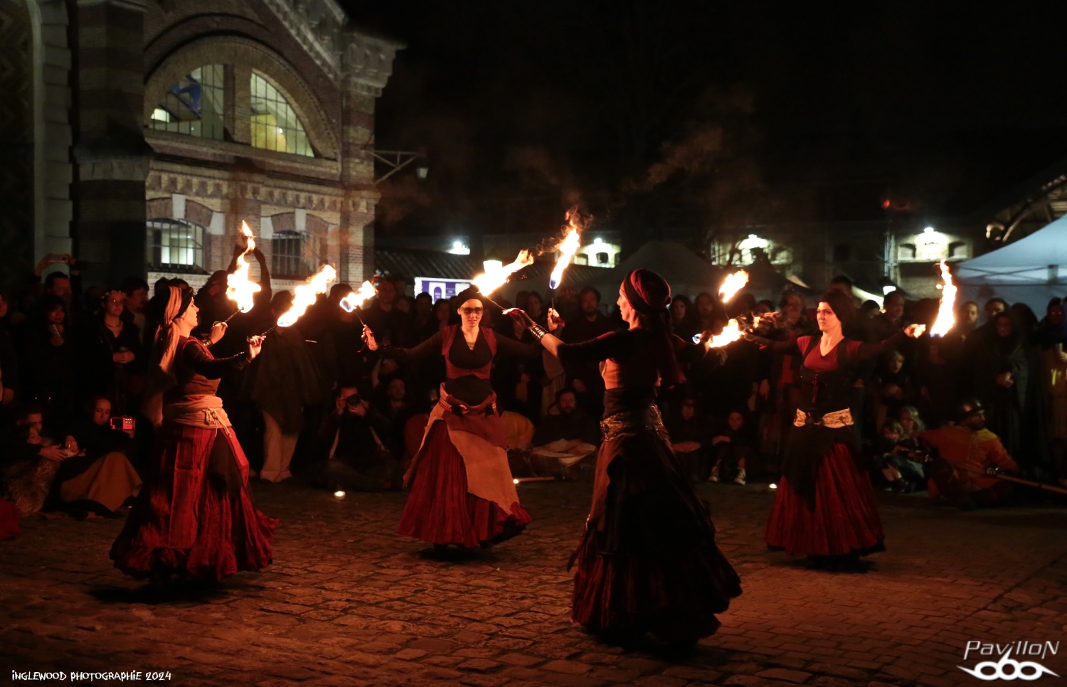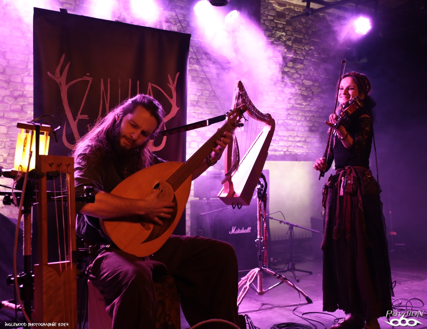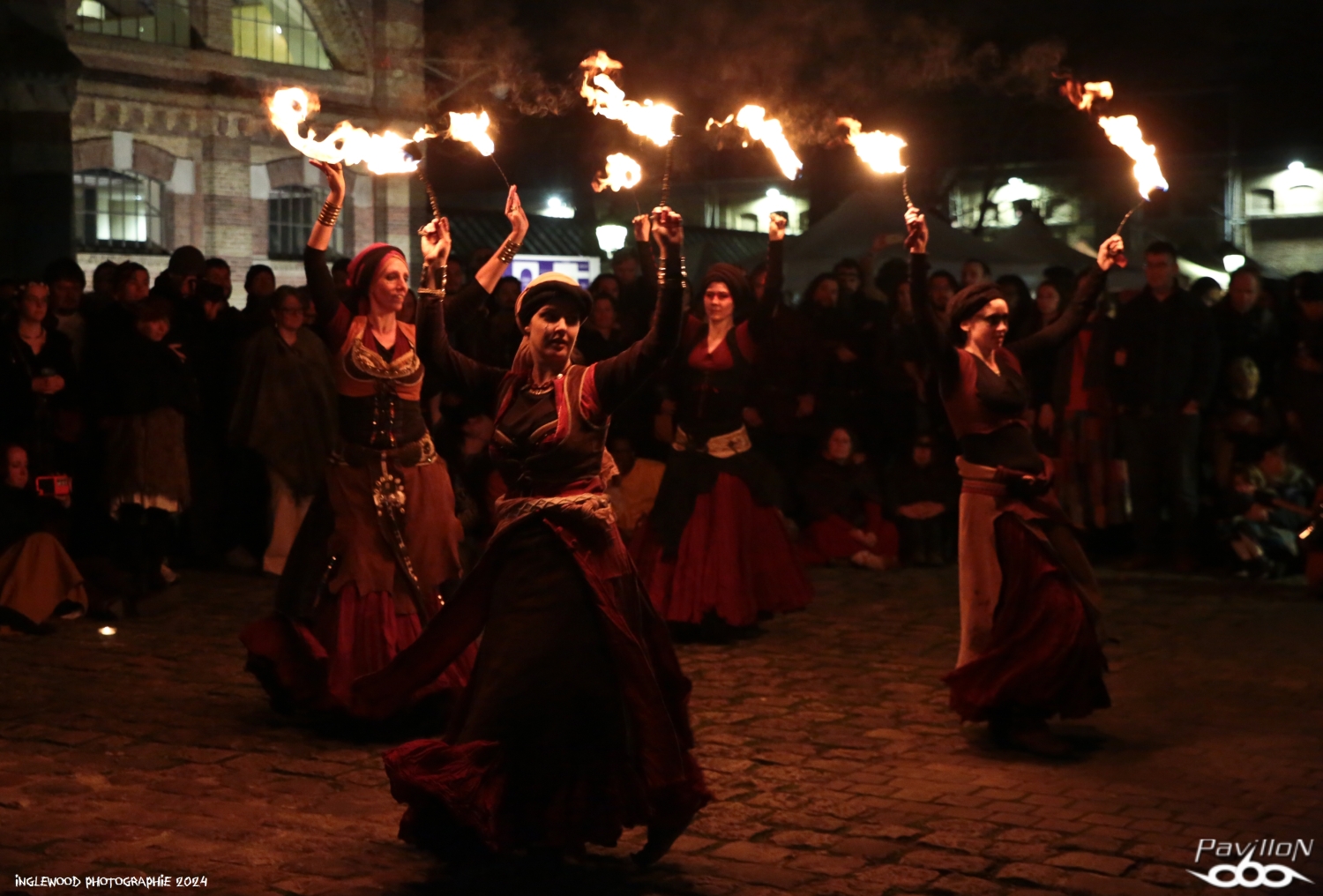 Ce festival pluriculturel est unique en son genre, proposant deux jours d’immersion dans la culture païenne dans un lieu magnifique et unique. Petit mot avant que je n'oublie sur l’équipe de bénévoles, que ce soit à l’accueil, au bar ou à la sécu, nous n’avons rencontré que des sourires et des gens bienveillants et visiblement heureux d’être là, tout comme les spectateurs et exposants d’ailleurs. Donc, la partie expositions et fête/animations médiévales nous a vraiment convaincus entre danses, contes, spectacles de feux, les sollicitations ne manquaient pas et furent de qualités. Pour une plus grande immersion, la restauration et les boissons étaient également typiques et rustiques (dans le bon sens du terme). Nous avons dégusté de la cochonnaille grillée et bûmes moulte hydromel et hypocras fameux et revigorants. Les exposants en grands nombres souvent des artisans présentaient leurs créations bijoux, œuvres, romans ou textiles à l’extérieur ou sous la halle (le caravansérail), une occasion de refaire sa garde-robe, de s’acheter une nouvelle corne à boire ou de décorer ses oreilles. Deux salles se font face pour accueillir les concerts. Une assez intime et l’autre de dimension d’une capacité plus habituelle. Excellente qualité sonore et visuelle, le Cernunnos n’économise pas sur l’infrastructure pour garantir des conditions optimums aux spectateurs. Nous avons assisté à quelques concerts orignaux, parfois décalés, mais toujours de grande qualité. Quelques mentions pour « MORMIEBEN » qui a fait resonner l’abreuvoir de chants de pirates, « LA MAISNIE HELLEQUIN » pour les leçons de danse, « VANSIND » pour ses accents et folk et nos deux coups de cœur « CESAIR » et « BLOD DYR ». « CESAIR », certes amputé de sa chanteuse a délivré une prestation intense, émotionnelle et chargé. Le groupe nous a proposé un mélange de musique folklorique et ethnique de l'Orient qui a envouté une grande partie du public. Quant au quatuor français « BLOD DYR », c’est plutôt sur la route des contes et histoires de la mythologie nordique qu’il nous a entraîné. Plus qu’un concert, c’est une véritable odyssée que nous a raconté le groupe, des musiciens charmants et charmeurs s’accompagnant d’instruments traditionnels ont touchés une audience envoûtée et passionnée. Un moment hors du temps qui collait très bien à l’ambiance du festival. Pour conclure, je ne saurai que vous conseiller de vous rendre aux futures éditions, en famille ou entre amis, vous passerez, comme nous d’excellents moments. |