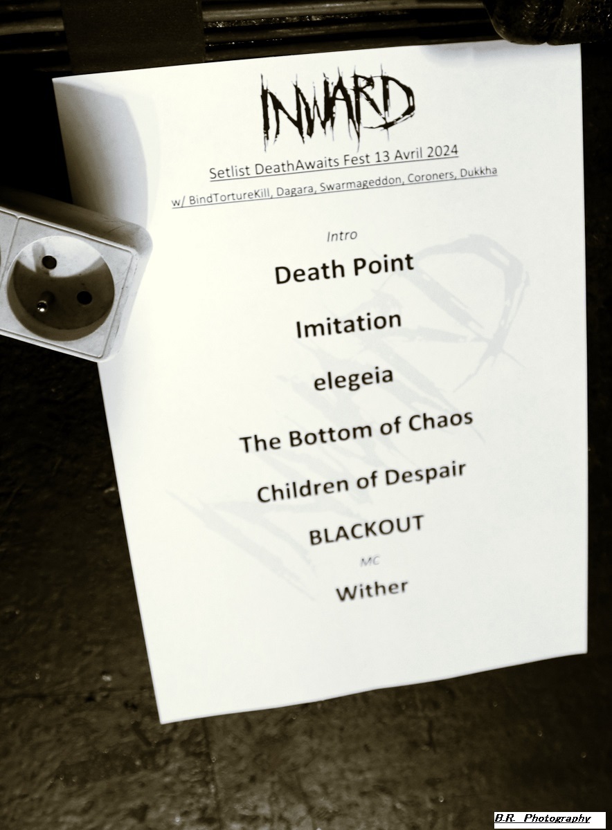 Ouh là là ! Le DEATH AWAITS Fest cuvée 2024 nous avait donné rendez-vous le samedi 13 avril 2024 dans le temple légendaire du rock Lyonnais le fameux Rock n'Eat. Et l'on a ingurgité sans modération cette nouvelle édition musicale, brutale et festive avec au menu les prestations de DUKKHA, CORONERS, SWARMAGEDDON, DAGARA, INWARD et BTK (Bind Torture Kill). Ces formations ne faisant pas dans la dentelle nous avons dégusté dans tous les sens du terme. Et, cerise sur le gâteau du metal extrême nous avons eu droit à l'écoute du dernier méfait de BENIGHTED intitulé « EKBOM » avec la présence de membres du groupe bien entendu, aargh !