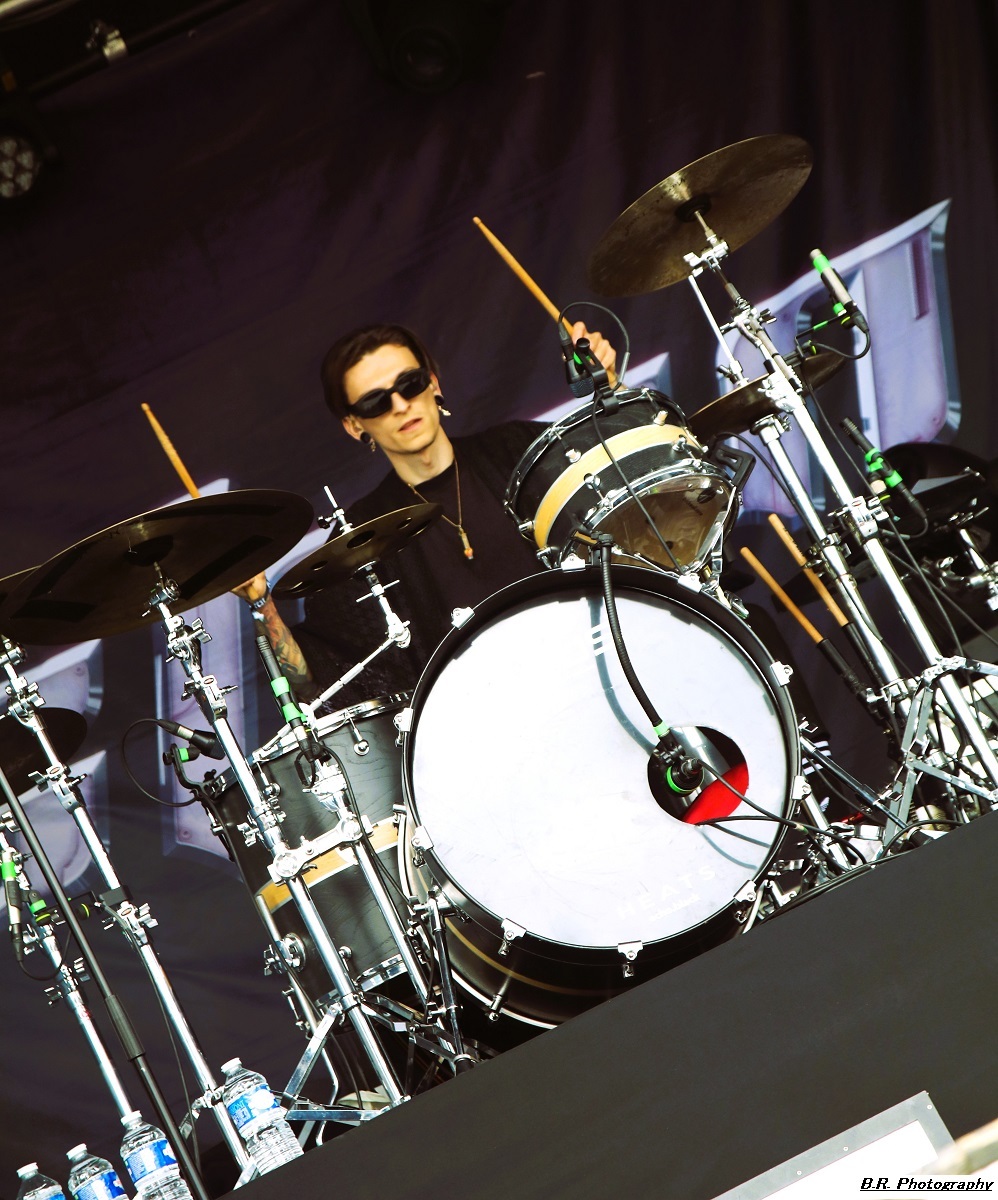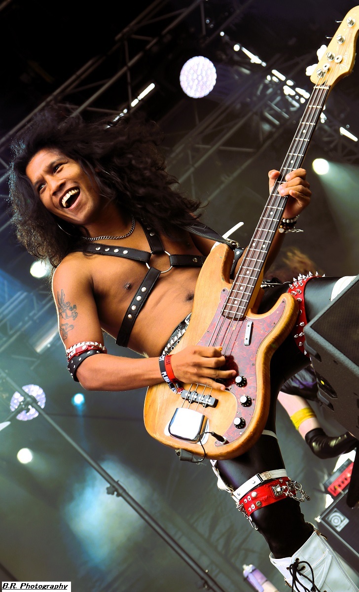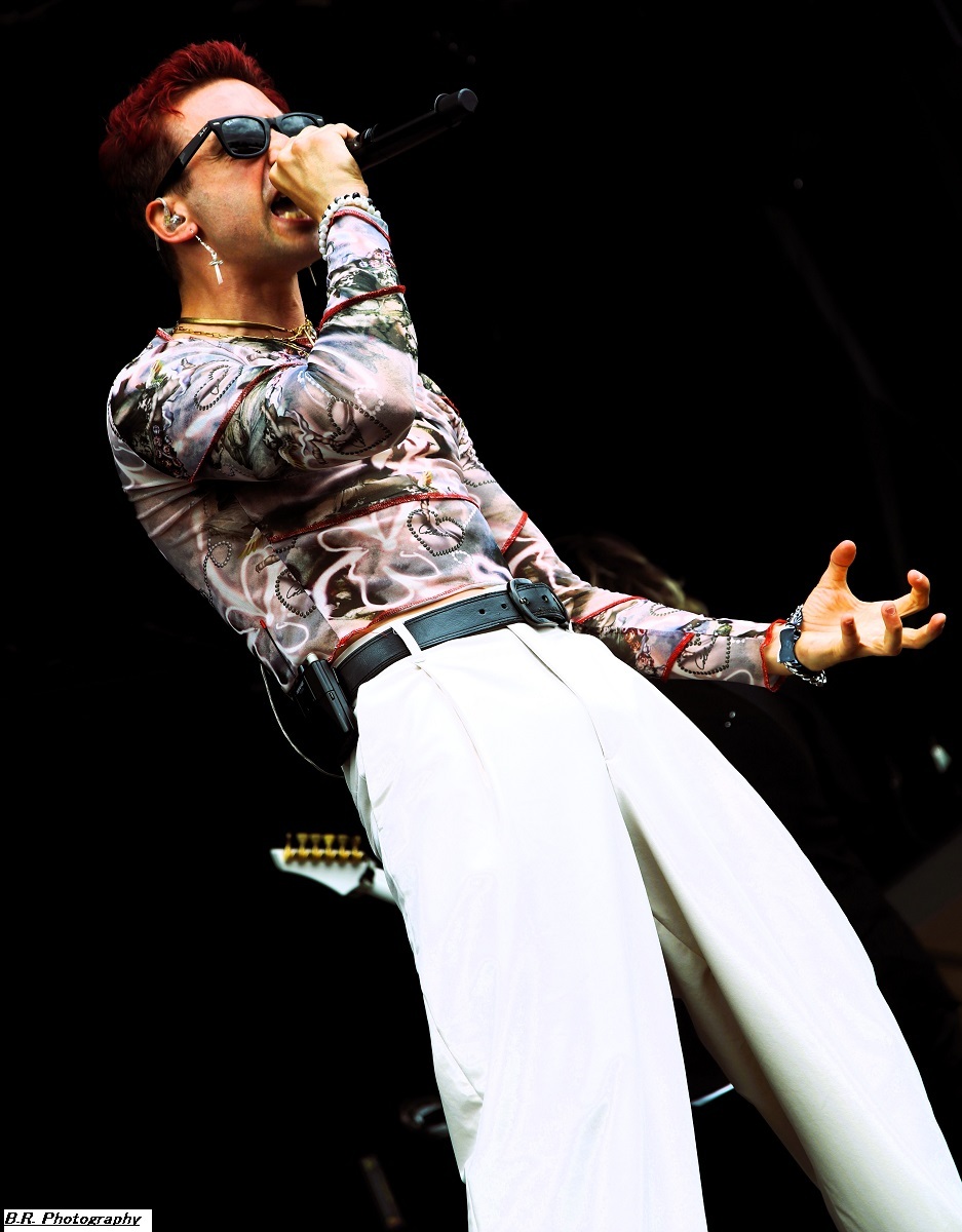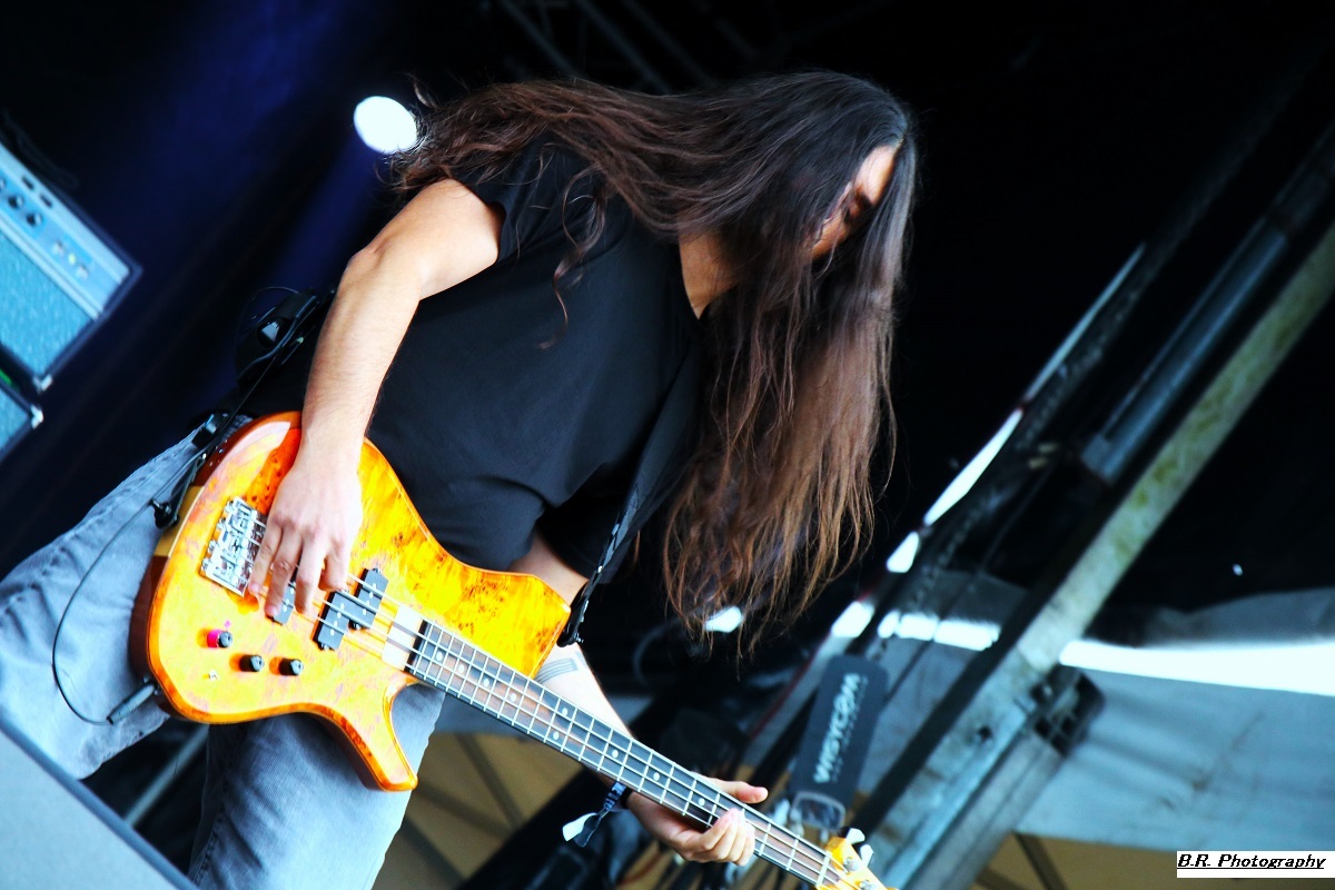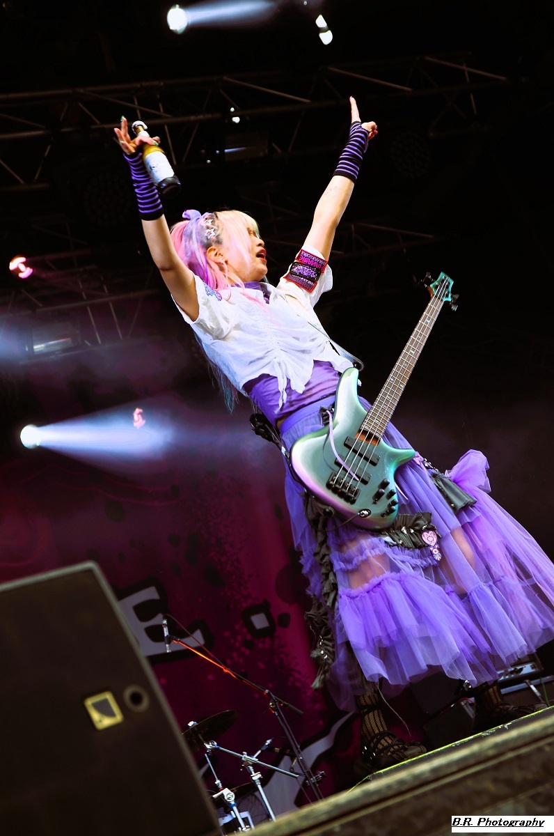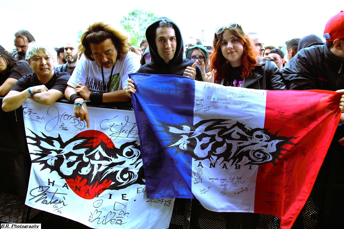 Allez, dès 15 heures, on se dirige vers les crash-barrières du Terminal 2 afin d'apprécier (ou pas) ceux de Bakü, leur post-metal dérapant à l'envi sur du black metal, mais pas que. Les titres sont longs, lourds et très ambiancés. Bref, la prestation de Bakü sort des sentiers battus de par son nom de groupe et de par sa musique où l'on ressent une certaine influence de Cult of Luna. Groupe intéressant en fait, et le public a certainement apprécié leur démarche. Changement de scène ensuite, changement de décor, changement de style avec, sur le Terminal 1, le heavy metal d'Animalize. Avec eux, nous retrouvons tous les clichés de la scène heavy des années 80 avec en filigrane des groupes qui ont marqué l'époque comme W.A.S.P, Annihilator, Tokyo Blade, ou encore Loudness et Warning. Animalize redonne donc un coup de jeune au heavy metal à la française en y ajoutant des avancées plus modernes lorgnant parfois vers un certain thrash et un certain hardcore (oui, oui !). Bien, après cette démonstration sans faute cet après-midi à Montcul, on peut dire que ces jeunes loups lyonnais en ont dans leurs « moule-burnes » et vont aller loin, il me semble ! Retour au Terminal 2 pour un certain rock-metal moderne, nerveux et coloré avec les Parisiens d'Ashen. Leur musique sort des sentiers battus du metalcore pour du « new core » si ce terme nouveau peut être avancé. C'est frais, nouveau, alternatif si vous voulez, avec des envois dynamiques. Sur scène, pas de lumières éteintes mais des envois puissants sans être dangereux, comme ils le disent ! Eh bien, nous avons aimé tout simplement leur set. Voici maintenant les Japonaises de Hanabie qui débarquent sur la scène du Terminal 1 en virevoltant et en brandissant le drapeau bleu blanc rouge ! Yukina, Hettsu, Matsuri et Chika viennent donc en France nous offrir un certain metalcore à la japonaise, alors kon'nichiwa les filles ! Ces filles ne font pas que chanter comme leurs compatriotes de Baby Metal. Ici, ça joue, ça joue plutôt bien même, et l'alternance de chant clair, de « growls » et de voix hurlée fait la différence. Et puis, quelle dynamique sur scène, quels visuels colorés et originaux avec des shorts bloomer, des jupes en tulle, et des salopettes, etc. Des tenues qui les font sentir jeunes et girly ! Niveau ambiance devant la scène, inutile de vous faire un dessin, l'accueil est survolté pour un public qui semblait impatient et curieux à la fois. Pari gagné encore une fois pour les filles de Tokyo nourries au wasabi ! Mais, déjà durant le set d'Hanabie, il a fallu couvrir les appareils photo sous un début de pluie. Et à la fin de leur prestation, peu avant 18 heures, l'orage a éclaté soudainement et ce fut le déluge. Alors pour nos amis de Smash Hit Combo, nous sommes (les photographes) restés à l'abri, dommage ! Pour le set de Ko Ko Mo, nous avons ensuite bénéficié d'une accalmie notable et nous nous sommes rendus devant le Terminal 1 à 19 heures 10. Ko Ko Mo, c'est un groupe de hard-blues nantais composé de deux musiciens : Warren Mutton, chant/guitare, et Kevin Grosmolard à la batterie et aux chœurs. Ici, nous naviguons sur les eaux troubles de la musique des seventies marquée notamment par Led Zeppelin, un Led Zeppelin qui a fortement influencé le duo. Sur scène, ce duo sait occuper l'espace et les compositions offertes vont du delta-blues au hip-hop en passant par l’électro. Ici, pas de « copie » de Led Zep ou encore de Rory Gallagher, mais des envois originaux et aventureux qui ne renient pas en fond d'écran les « bases » des années 70 comme dit précédemment. Tout ceci se révèle très intéressant en live, bonne musique, belle présence ! Les Grecs de Villagers of Ioannina City se retrouvent à 20 heures 15 sur la seconde scène afin de nous faire goûter à leur rock/metal/stoner/folk. Cette formation fait progresser un certain stoner-rock à l'aide de dérives folkloriques en utilisant, outre les classiques guitare/basse/batterie, des instruments plus traditionnels comme la clarinette et une espèce de cornemuse locale. Leur stoner/prog bénéficie d'une certaine originalité qui amplifie leur dérive psyché sur des rythmiques tantôt lourdes, tantôt bien enlevées, à l'aide d'une forte rythmique audacieuse. Prestation intéressante donc à plus d'un titre, nous avons aimé ! C'est toujours avec un certain plaisir que nous retrouvons en live nos « petits Suisses » d'Eluveitie. Leur compromis entre le folk et le death metal mélodique fait honneur à toutes les scènes depuis leur formation en 2003, il y a 21 ans déjà ! Bien sûr, il y a eu tout au long de leur carrière de nombreux changements de line-up, mais le groupe dirigé par Chrigel Glanzmann est resté fidèle quand même à ses racines celtiques pour les inspirations. Alors, ce soir, nous naviguons avec ces musiciens dans les méandres épiques de leur folk/metal avec toujours cette émotion particulière qui nous prend à la gorge parfois. Et durant 1 heure 10 de set, nous avons voyagé au fil du temps qui passe comme un rêve inachevé ! Il était attendu et il est arrivé pour la fin, le fameux titre « Inis Mona » fut repris en chœur par un public concerné, amen ! Le moment est venu ensuite de mettre sur vos têtes des lampes frontales afin de participer à la grand-messe post/hardcore de Celeste qui se produit sur le Terminal 2 dès 22 heures 20. D'entrée de jeu, la formation nous fait plonger en apnée dans une autre dimension, celle des ténèbres lumineux (ah bon !) et ses dérapages vers un black metal noir comme de l'encre qui ne vont pas arranger les choses. Au programme, noirceur, rythmiques lancinantes nous propulsant dans notre moi intérieur à l'aide de hurlements. Nous avons donc dégusté du Celeste dans tous les sens du terme, aargh ! Le groupe parisien Rise of the North Star, qui soit disant a fait de ses influences la vie des bas-fonds de Shibuya dans le Japon de