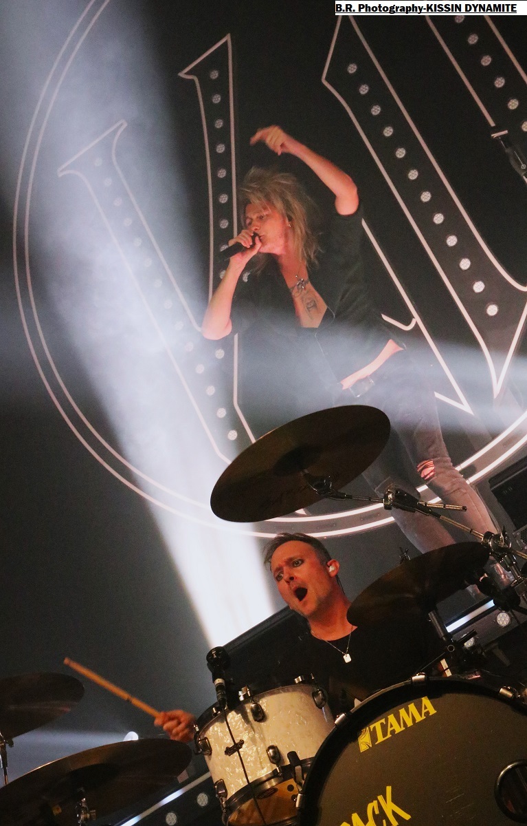 Alors, Kissin'Dynamite va frapper fort et faire participer un public qui n'en a cure. Entre hard-rock et metal la frontière est ténue et le groupe virevolte sur cette frontière qui en fait n'existe pas ou plus.Alors, ce sera du costaud qui nous est offert, les Allemands mènent le show à leur guise en alternant rock basique, mélodies au parfum « glamouze » plombé mais aussi ballades en acoustique afin de faire chanter un public aux anges.