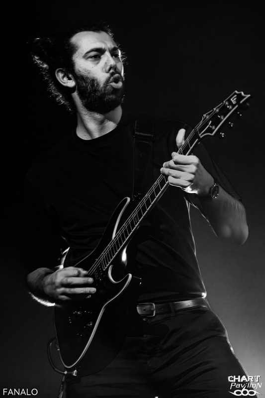 Stéphane ALAUX, aka FANALO, vient donc tout juste de sortir son premier album solo, mais ne vous y trompez pas. Le guitariste bordelais n'en est certainement pas à son coup d'essai. Cela fait près de 30 ans qu'il officie, d'abord dans sa région mais aussi à l'international. La légende dit qu'après avoir vu le groupe en première partie de BUMBLEFOOT, Ron THAL aurait demandé aux musiciens de FANALO & EL MOBO de devenir les membres de BUMBLEFOOT pour ses tournées organisées entre 2000 et 2008. Rien d'étonnant donc à ce que Ron THAL fasse une apparition sur l'album solo du prodige. C'est donc au son du rock et du metal progressif que débute ce concert. Le niveau est élevé, et la bande formée pour la tournée tient particulièrement bien la scène. La demi-heure dédiée au groupe satisfait les fans du style et nous permet de découvrir un groupe en pleine forme et très heureux de venir nous faire partager son rock alambiqué, très bien exécuté.