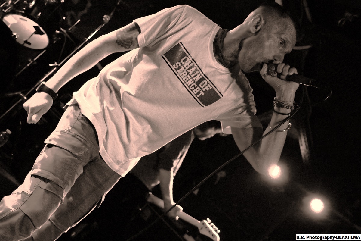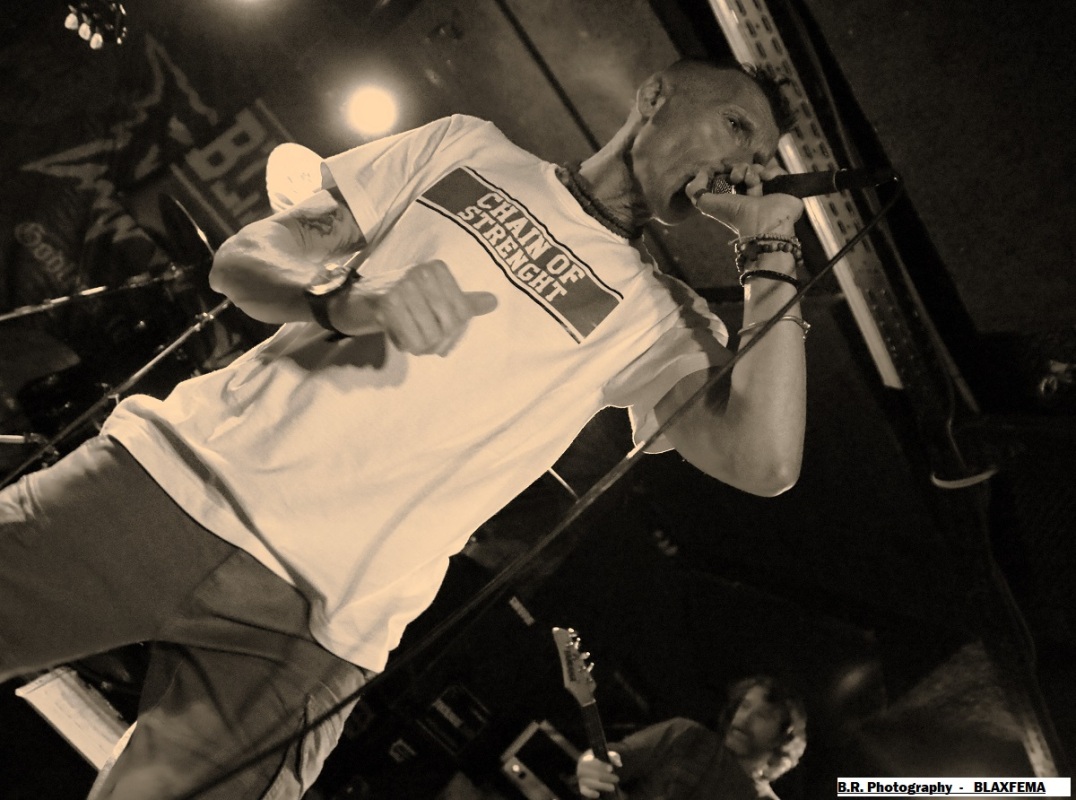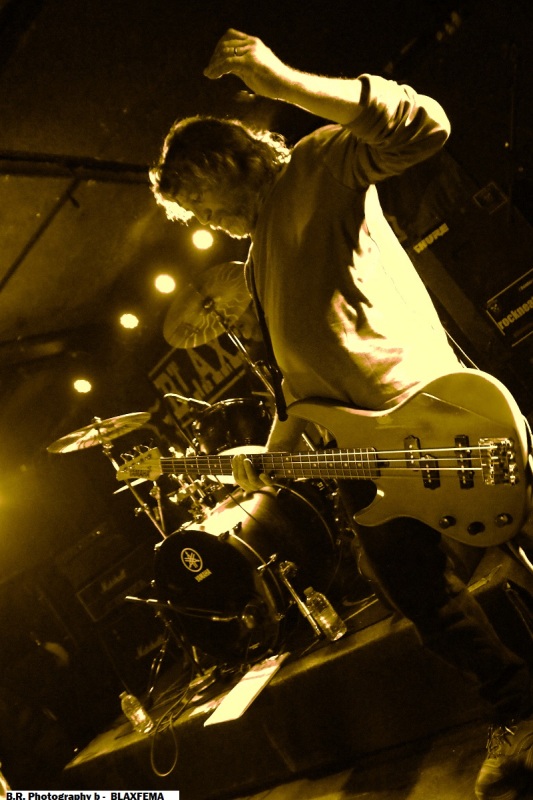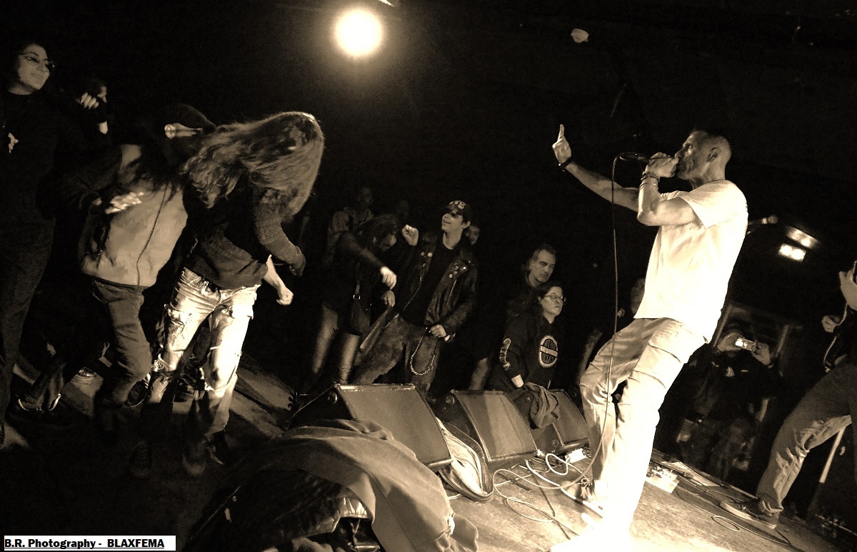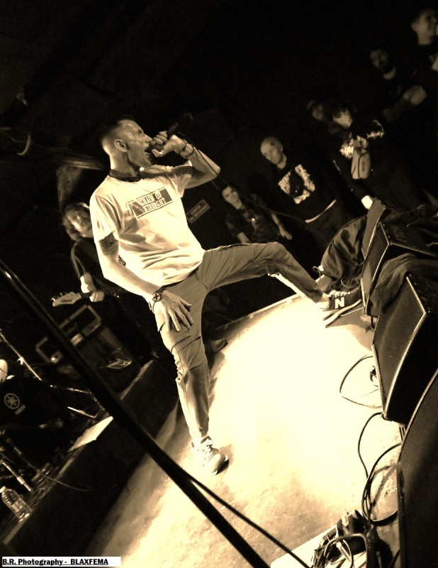 LYON- HARDCORE nous présentait un concert qui s'avérait musclé avec la venue de nos cousins transalpins BLAXFEMA, FELDSPAR et SHORT FUSE qui étaient venus spécialement à Lyon afin de nous montrer qu'ils avaient le diable au « core » ! Il est 21 heures à la pendule du RNE lorsque ceux de Pavie nous lancent à la figure (et aux cages à miel)leur straight edge hardcore. Il s'agit du groupe BLAXFEMA, un groupe vétéran du hardcore des débuts dans les 80's. Alors bien sûr les « coreux » de Lombardie avaient « racroché et cessé leur activités après une demo intitulé « Menes », mais ils se sont reformé en 2022 et sorti un nouvel enregistrement en Juillet 2024 « Choice ». Comme quoi le dicton « chassez le naturel il revient au galop » est toujours d'actualité ! Nos vétérans n'ont rien, perdu de leur fougue initiale c'est un fait et ils vont ouvrir la soirée comme il se doit provoquant un certain émoi dans le public qui a a adhéré pleinement à leur prestation, une prestation qui remet en selle nos amis Italiens avec doigté et savoir faire, que du bon ! Avec les Romains de FELDSPAR, qui nous font connaître, leurs origines à n' en pas douter, ça démarre fort. De formation récente (2023)avec des membres d'autres combos hardcore locaaux ils ont sorti un premier album intitulé « Old City, New Ruins » en Septembre 2024 et ce soir ils vont embraser la scène du RNE à l'aide d'un punk/hardcore bien diversifié mêlant la fête la rage et la dénonciation de notre belle société. Le frontman en fait des tonnes, les musiciens envoient la sauce hardcore sans problème et deux jeunes filles choristes s'occupent des chorus. Alors Feldspar avec ses textes semble bien inspiré OK mais il appuie là où ça fait mal tout en mixant son hardcore au heavy traditionnel. Le public se lance à corps perdu dans la bataille, comment résister à cette troupe de rebelles aux côtés théâtral à l'italienne ! Leur set a bien marqué les esprits ce soir, un set de qualité hors des sentiers battus du hardcore et ce fus bien ! Et hop revoilà ensuite des Romains, ceux de SHORT FUSE qui depuis une dizaine d'années à l'aide plusieurs enregistrements a tourné notamment avec Comeback Kid, Madball, Gorilla Biscuits et autres Adolescents. Short Fuse pratique un metal/hardcore assez moderne bien métallisé et un peu scremo sur les bords. Et ça marche car en live comme ce soir à Lyon le quintette qui a notamment enregistré l'album » Embrace Yourself » est droit dans ses bottes et nous détruit dès les premiers titres ce qu'il nous reste de neurones. En effet, quelle énergie, quelle vélocité, quelle rapidité au menu de leur prestation implacable. Alors inutile de vous dire que dans un RNE en chaleur et en sueur ça « déménage sec », garez vous donc car tout le monde s'envoie en l'air sous les coups de boutoir propulsés par un combo qui lui aussi s'envoie régulièrement en l’air. Excellente prestation donc qui a mis tout le monde d'accord ce soir avec sincérité ! Merci donc à LYON-HARDCORE pour avoir organisé cette petite sauterie du Samedi soir et merci bien entendu au Rock n'Eat pour l'accueil. |