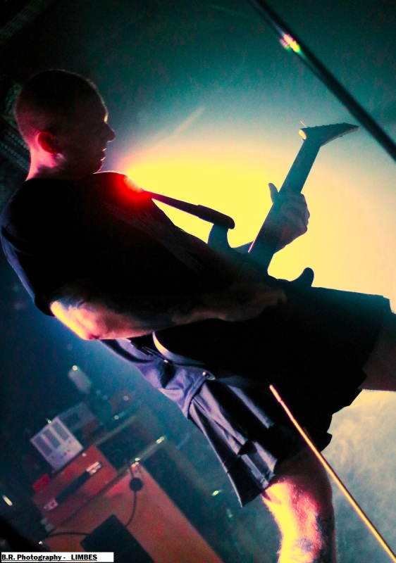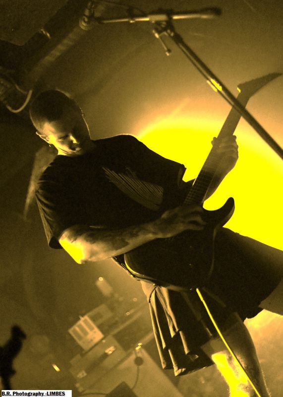 Clément Decuypere et Jérémy Hourdoir ont formé NVAGE et avec sous leurs bras un premier EP éponyme à paraître le 16 Mai prochain ils se présentent à nous ce soir en ouverture de la soirée. Ce duo navigue dans les eux troubles d'un post metal-sludge, atmosphérique souvent, boueux et colérique parfois. Alors Nvage c'est d 'abord un certain mur du son, des riffs lame de rasoir et beaucoup de distorsion. Çà vous emporte de composition en composition vers un moi intérieur, vers une re-découverte de soi même et c'est magique en quelque sorte, nous avons aimé leur aventure hors des sentiers battus. Après le duo Nvage, voici Guillaume Galaup unique membre de LIMBES qui vient nous propulser dans son monde atmosphérique fait d'envolées dark destructrices de neurones. Avec Limbes, c'est un certain retour aux sources du black-metal vrai, sincère, langoureux et forcément déchiré de toutes parts. Moments intenses donc avec nos esprits scotchés aux envois aériens mais néanmoins chaotiques voire brumeux comme ces explosions saturées qui accompagnent les mots du géniteur sorti des limbes(sic). Et ce fus une expérience particulièrement hors du temps et de l'espace qui nous a été offerte ce soir, merci Limbes. Surnageant dans un monde transpercé par des lights particulièrement bien mis en avant, apparaissent les trois membres de NATURE MORTE. Une entité relevant d'un certain post black-metal, post-rock, shoegaze et plus si affinités ! Avec à son actif plusieurs albums et un Split avec Hegemon, Nature Morte nous propose de longs titres distordus avec des riffs souvent arrondis dans les angles, une basse bien présente et une batterie dérangeante et intemporelle d'où émerge des voix toujours hurlées. Les envois sont puissants triturant dans tous les sens un certain black inventif et déstructuré, le tout formulé dans le rouge et le bleu de la fée électricité dans des décors qui ont un rôle addictif pour notre cerveau pré-digéré actuel. Nature Morte nous a donc séduit dans cette nuit Lyonnaise avec son black plutôt étrange mais assurément accrocheur, amen ! Merci aux organisateurs, aux musiciens et au Rock n'Eat pour ce concert bien noir et nuageux au possible. |