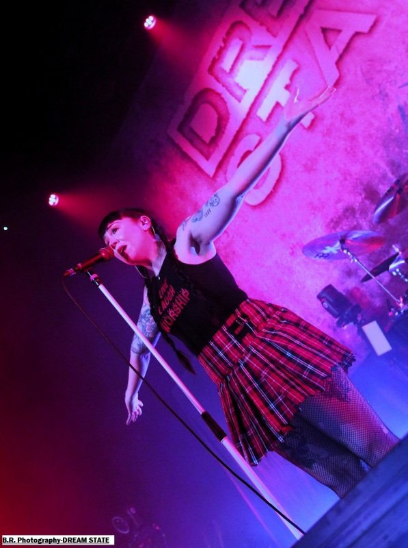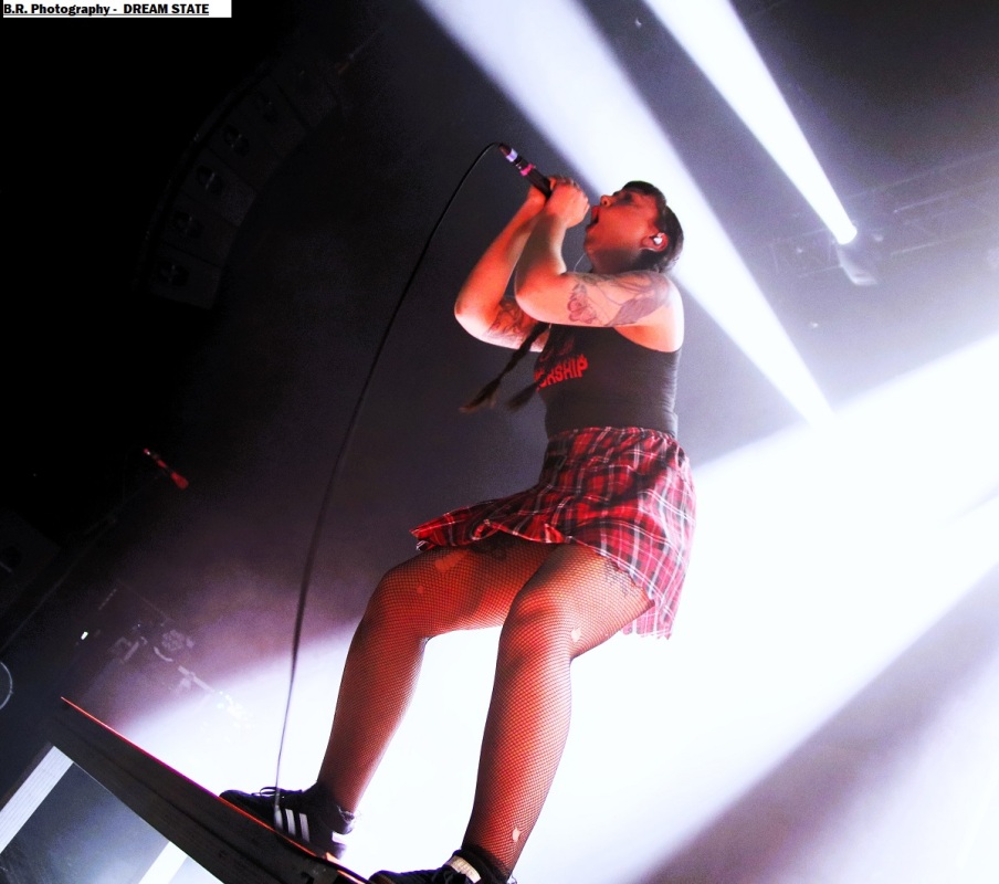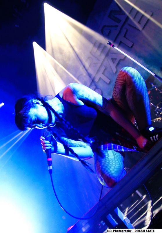 Changement de son, changement de style avec le post/hardcore/rock alternatif des Gallois de DREAM STATE qui nous interpellent fortement dès le début de leur set avec une frontwoman, Jessie Powell, énergique, motivée et parfois explosive. Elle va tenir le public « coreux » au creux de sa main durant une prestation qui va laisser des trace tout simplement ce soir.