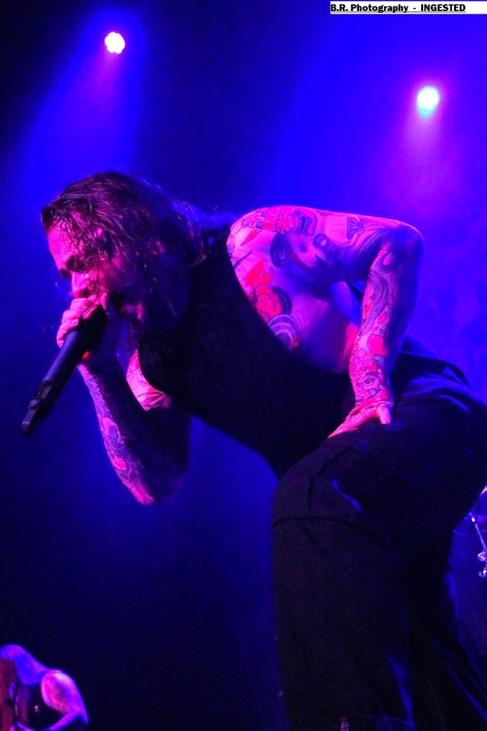 Ceux de THE VOYNICH CODE se lancent sur la piste de la Rayonne dès 19 heures avec sous leurs bras leur dernier album en date intitulé « Insomnia ». Mais leur set va se révéler bien agité dès les premiers titres où l'ambiance de guerre créée avec des thématiques agressives du groupe va se révéler bien mordante. Donc, c'est puissant, bien rentre dedans et les vocaux grognés font leur travail mais sans aucune nuance en fait. Nous dirons que The Voynich Code a essayé de nous faire entrer dans son monde violent mais sans vraiment y parvenir. Avec les Américains d'ENTHEOS nous rentrons dans un domaine curieusement progressif avec du death en fond de commerce. Après leur troisième album de 2023 ils nous gratifient d'un EP de 2024 intitulé « An End To Everything », pas mal pour exprimer la violence du propos. Cette violence apaisée par moment est quasiment continue et la frontwoman Chaney sait diversifier ses vocaux dans des envois aux côtés techniques indubitables avec, cerise sur le gâteau, une batterie aventureuse mais surtout explosive. Bref, nous avons aimé leur prestation un peu inattendue mais intense dans leur planitude violente (ah bon!). Les « so british » d'INGESTED quant à, eux vont nous exploser les neurones à l'aide d'un set qualifié de « brutal slamming deathcore » et l'on en a prit plein la « g...le » tout simplement ; Avec une discographie longue comme le bras parue depuis leur formation en 2006, ceux d'Ingested ne font pas dans la dentelle c'est certain. Mais leur brutalité est pimentée par des passages plus expérimentaux qui font,ressorti une certaine sauvagerie dans leurs envois et ça « blaste » quand même à tous les étages ! Ce soir dans la Rayonne ce sera « circle pit » et « wall of death » quasiment en continu. Alors que dire, que faire, eh bien suivre le mouvement, quelle claque ! Formé dans l'Illinois en 2003, BORN OF OSIRIS s'est d'abord en premier lieu appelé Diminished, puis ensuite Your Heart Engraved, et Rosecrance. Bon, ce soir ce sont bien les musiciens de Born Of Osiris qui se présentent devant nous à grand renfort de spots aveuglants émanent du kit de batterie notamment. Alors, sous des lights compliqués entre ombre et lumières Born Of Osiris nous interpelle grâce à son deathcore violent aux riffs acérés mais mélodiques souvent, compliqué en fait. Nous avons du mal à suivre leurs envois qui semblent par moments un brin décousus et linéaires à la fois, c'est possible ? Comme indiqué dans leur propos c'est l'aventure humaine entre ombre et lumière bien mise en avant dans leur tout nouvel album de 2025 intitulé « Through Shadows ». Leur prestation de ce soir mettra donc en lumière (sic) notamment des titres de ce nouvel opus. Mais peut-être à cause de l’absence d'un de leurs musiciens (le guitariste Lee McKinney) sur cette tournée leur prestation d'une heure de temps a manqué un peu de relief selon les dires des fans du groupe présents ce soir. Quoi qu'il en soit l'expérience Born Of Osiris mérite quand même le déplacement, amen ! Merci à Sounds Like Hell Productions pour l'accréditation accordée à Pavillon666, merci aux 4 formations en lice qui nous ont fait part de leur passion et de leur créativité et merci bien entendu à la Rayonne pour l’accueil. |