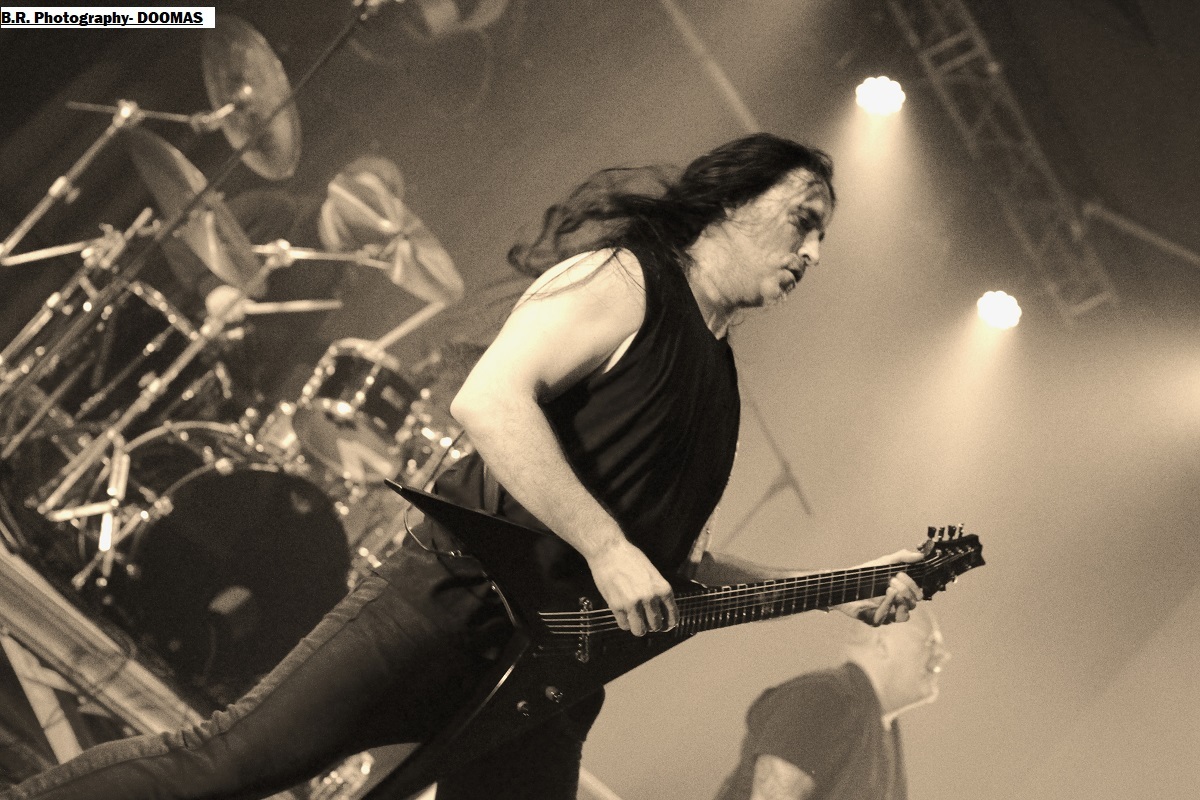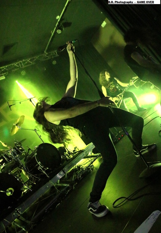 Progressivement ,le public arrive avec dans leurs yeux la promesse d\'une journée qui sera riche en concerts métalliques. En effet, pas moins de 10 formations, venues des « states », d\'Irlande, de Belgique, d\'Italie, d\'Allemagne, de Slovaquie, du Portugal et de France vont, se succéder, sur la grande scène du Trait d\'Union. Il s\'agit de NILE, GAMA BOMB , COFFIN FEEDER, MERRIMACK, GAME OVER, A SECRET REVEALED, DOOMAS, GODARK, DEADLYSINS et AONARAN. Ce sont ces derniers, AONARAN de la Région Lyonnaise qui vont arriver sur scène en premier lieu ndès midi avec uune orientation plutot death-metal. Nen prélude le groupe nous offre en live ses compositions qui figureront sur leur prochain album, à venir. Première impression, c\'est du tout bon, ambiance adéquate, chorégraphie scénique, qualité du son et de leurs titres avec une présence indubitable des ,musiciens, à revoir avec plaisir dons ! Du death au thrash il n\'y a qu\'un pas que nous franchissons allègrement avec la venue , là devant nous, des thashers fous de la région de Lyon, j\'ai nommé DEADLYSINS. Les cinq musiciens sont remontés comme des coucous et leur set va se révéler très agité dans tous les sens du terme. Ces musiciens qui ont déjà de la « bouteille » dans la scène metal et qui ont souvent défrayé la chronique de par leurs prestations depuis 20 ans maintenant. Et après quelques atermoiements durant cette longue carrière, ils reviennent en force sur le devant de la scène avec sous leurs bras un nouvel et excellent album intitulé « Age of Revelation » et une présence live remarquable et remarquée Alors en ce début d\'après midi dominical nous allons en prendre plein la « g...le » c\'est sans appel, le public accueillant à bras ouverts hors scène un frontman déchaîne soutenu par de musiciens au top niveau, quelle claque ! Avec les Lusitaniens de GODARK nous entrons dans le domaine du death mélodique avec pourtant une approche deathcore indubitable. Godark crée des atmosphères épiques à la Amon Amarth tout en y rajoutant des éléments progressifs. Et du coup leurs compositions interprétées en live valent bien le détour comme ce soir à Montagny où ils ont marqué le public à l\'aide d\'un set irréprochable. Allez hop, voici un peu de Doom avec les Slovaques de DOOMAS, ça ne s\'invente pas ! Ce trio originaire de Bratislava navigue sur les eux troubles et sombres du doom donc mais avec des envies black-metal, death et dark. Leur musique étant influencée au départ par notamment Venom, The Misfits, Black Sabbath et autre Mercyful Fate, vous voyez donc le résultat, ce résultat qui nous a quelque peu surprit en live à Montagny, et ce fus bien. Dans un domaine toujours aussi sombre voici les Allemands de A SECRET TEVEALED qui nous offrent un certain black-metal prog, post-metal si vous voulez ; Ici l\'atmosphère se révèle noire et glacée dans un registre bien oppressant. Mais en live leurs compositions se révèlent ,très intéressantes et l\'on ne s\'ennuie pas une seconde devant la scène. Bonne prestation, bonne découverte, à revoir assurément. Les transalpins de GAME OVER vont ensuite débarquer avec fracas devant nous en s\'agitant dans tous ,les sens afin de nous coller contre les murs du trait d\'Union à l\'aide de leur thrash pas piqué des vers. Les cinq de Ferrare mixent à merveille un metal se situant entre par exemple Anthrax et Maiden et la sauce prend c’est un fait. Ils semblent infatigables avec déjà six albums sous leurs bras depuis leur création en 2008 et des « live » incessants hauts en vélocité comme ce soir devant nous. Fatalement nous avons aimé leur set, comment résister à ,ce tsunami de thrash. Changement de décor ensuite avec le black-metal millésimé des frenchies de MERRIMACK. Un true black-metal malsain qui nous plonge dans les ténèbres depuis une trentaine d\'années. Maintenant leur propos est toujours vénéneux, violent, pesant aussi, occulte sans aucun doute. Une certaine brutalité interromps par moment les déviances mélancoliques qui nous sont jetée en pâture sur d\'assez longues compositions. Merrimack rete donc l\'un des fers de lance du black-metal que ne nous le voulions ou pas, amen ! Le nouveau projet de Sven de Caluwé (Aborted) appelé COFFIN FEEDER va nous interpeller ensuite à l\'aide d\'un certain grindcore survitaminé nourrit aux amphétamines. Nos amis Belges ont la frite (toujours facile celle-là!) et la voix unique de Sven dirige les opérations de destructions de neurones organisées Ces vieux renards de la scène extrême Belge vont donc nous délivrer un set implacable de maîtrise extrême c\'est certain Et même si vous avez déjà écouté leur album « Big trouble » de 2025 force est de constater que ce genre de musique se vit en live c\'est certain. Alors comme je le dis souvent Coffin Feeder n’a pas fait dans la dentelle ce soir à Montagny, une bonne gaffe reçue sur la joue droite et une autre sur la joue gauche, voici le résultat de leur prestation, aargh ! Retour au thrash maintenant avec les fous furieux d\'Irlande GAMA BOM B. Du thrash certes, mais du thtrash festif, fun, bien excité et épileptique par moments ? Cela nous faisant penser , dans une moindre mesure à Municipal Waste en plus old-school et plus heavy metal. Depuis l\'an 2002 ces thrashers dérangés nous ont offert au moins 8 albums, mais c\'est en live que leurs efforts prennent Bune toute autre dimension. Le frontman en fait des tonnes, grimpes partout et va régulièrement taquiner le public qui n\'en a cure. Efficacité maximum donc avec tous les « potets » dans le rouge, un son puissant envoyé par des musiciens qui connaissent le « la » Merci les gars, ce fus un réel plaisir de participer à votre petite « sauterie » du Dimanche soir en terres Lyonnaises ! Les Américains de NILE vont maintenant nous emmener dans des ambiances égyptiennes avec leur brutal death metal pratiqué avec fe