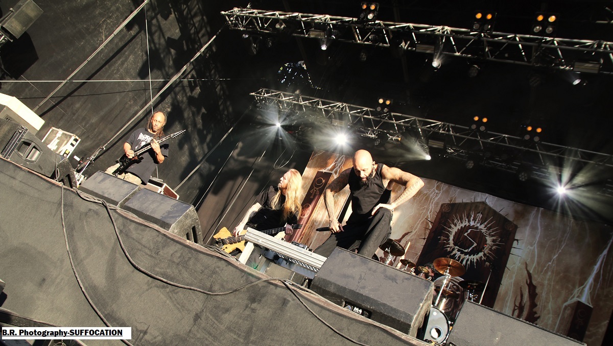 La réponse sera nette et sans appel durant les prestations de DIMMU BORGIR, MASS HYSTERIA, ORANGE GOBLIN, SUFFOCATION, MELVINS, THE CHISEL, THE BRAINS, IMPERIAL TRIUMPHANT, KNUCKLE HEAD, LAST ADDICTION et WITCHORIOUS. Cette réponse sera « oui » le final du SYLAK 2025 sera tout simplement apocalyptique dans une ambiance survoltée et enjouée, bravo les filles et les garçons comme dira un peu plus tard Mouss de Mass Hysteria. Tout commence à 11heures 30 avec la venue dur les planches de la grande scène des Parisiens de WITCHORIOUIS qui nous rendent visite après avoir enflammé la Purple House au dernier Hellfest . Ce trio ne se complaît dans des rythmiques lourdes et occultes bien envoûtantes. Alors cette jeune formation inspirée par notamment Black Sabbath et autre Electric Wizard a ouvert ce troisième jour du festival avec des envois qui nous ont irrigué de sang noir nos esprits à l'aide d'un doom revisité et original, nous avons aimé. Entre Lyon et Grenoble se trouve un endroit appelé « les Terres Froides » et dans cet endroit s'est formé en 2013 LAST ADDICTION. Ce groupe, avec ses envies post-core, a bien évolué depuis lors en se démarquant d'un metalcore de base en nous proposant un EP éponyme en 2019 et deux albums, « Inner Abyss » en 2021 et « Downfall » en 2024. Nos jeunes amis Isérois se sont très vite fait remarquer en se produisant d'abord dans des bars pour ensuite mettre la pression lors de concerts sur de plus grandes scènes. Et aujourd’hui ce sera la grande scène du Sylak qui va les accueillir. Nous avons bien apprécié leur prestation de metalcore « nouveau » qui sort donc des sentiers battus avec notamment la (les) voix qui font « tilt » dans notre matière grise et ces parties instrumentales techniques bien ficelées qui ne laissent pas de place à l'approximation. Merci Last Addiction on se retrouve bientôt pour de nouvelles aventure « live », nous aimons votre démarche. La surprise du jour en ce qui me concerne viendra de la prestation de KNUCKLE HEAD. Un duo Alssacien pratiquant de ce que l'on pourrait qualifier de mix rock, blues et dark country fleurant bon la poussière des déserts « ricains » soulevée par le passage d’une Harley Davidson. Ces deux « bikers » avec un look d’enfer nous surprennent donc, la voix, la guitare, la batterie tout es remarquable et remarqué jusque dans leurs textes qui nous racontent des histoires parfois violentes. Et au final, je n'ai pas compris comment j'ai pu passer à côté de ce duo qui semble déjà très apprécié par un public de connaisseurs, quelle claque ! Après avoir « digéré » mon diot pomme de terre et les sets de troi groupes, d'étrange créatures montent sur scène masqués. C'est un trio appelé « IMPERIAL TRIUMPHANT qui lance les débats en ce début d'après-midi. Impérial Triumphant nous propose un mélange de black/death post quelque-chose, chaotique et bien sûr expérimental Ces Américains, Zachary, Steven et Kenny, nous surprennent c'est un fait, mais une fois rentrés dans leur délire nous acceptons cet état de fait et nous ,apprécions. Deuxième fois que je les vois en concert et je ne m'en lasse pas, c'est vous dire ! Allez hop, voici un peu de rockabilly à la sauce Stray Cats qui ne nous fera pas de mal avec THE BRAINS dans des dérives punk/psychobilly à la clé. Ce trio Canadien de Montreal avec sous ses bras une douzaine d'albums dont le petit dernier « Crazy Monsters » est en tournée actuellement ,dans tout le Canada mais a bien voulu, nous rendre visite au Sylak. Nous avons bien dégusté leurs envie horrifique bien entendu ! Nous passons maintenant du psychobilly au punk avec THE CHISEL, un punk « énervé » qui va satisfaire nos amis « keupons » de tous poils mais aussi interpellé tout le monde. Ce punk « so british » à l'état brut de décoffrage nous conte des aventures violentes, quelles soir sociales ou physiques. Leurs titres agressifs lorgnent vers le hardcore et font mouche, alors tout le monde s'envoie en l'air c'est normal dans cette fin d'après midi ! Et une légende du metal, une avec là devant nous les fameux MELVINS avec son inénarrable géniteur Buz Osborne (guitare/chant). Formé en 1983 sur une base punk/rock, le groupe a évolué rapidement vers d'autres horizons musicaux dont la liste serait trop longue à vous présenter. Nous dirons en résumé que le rock/metal doit tout (ou presque) à ce groupe de fous furieux. Citons quand même les déviances assumées et réussies dans des dérapages rock/doom/grind/death/cyber hardcore/ hard n'heavy/glamcore ,et autres joyeusetés. Alors ce soir les voir en action sur la grande scène du Sylak avec en fond d'écran deux batteurs(si,si), fus magique, hors du temps et de l'espace, excellent tout simplement ! Les New-Yorkais de SUFFOCATION nous rendent régulièrement visite en France ce qui n'est pas pour nous déplaire en fait. Car ces vétérans du death-metal Américain nous satisfont pleinement lors de leurs prestations d'un metal extrême technique , minutieux et violent à la fois. Ce groupe fondé en 1988est toujours au top niveau et ce n'est pas leur dernier album en date « Hymne From The Apocrypha » qui contredira mes dires. En live c'est toujours un plaisir malsain de voir et d'écouter cette formation, alors leur passage à St-Maurice de Gourdans restera gravé dans nos esprits. Il est maintenant 20heure 50 et c'est l'heure du stoner, mais pas n'importe lequel, ce sera celui d'ORANGE GOBLIN qui depuis 1995 nous a innondé la matière grise à l'aide de 10 albums. Alors, leur stoner teinté de heavy metal à marqué toute une époque, un stoner gras et groovy, riffu dans le bon sens du terme, un stoner qui a laissé des traces. Mais ce soir ce concert sera synonyme d'adieu à la scène pour ces Américains qui on décidé de stopper la machine, dommage ! Un seul regret en ce qui me concerne, le titre « Blue Snow » ne figurera pas dans la set-list d'
