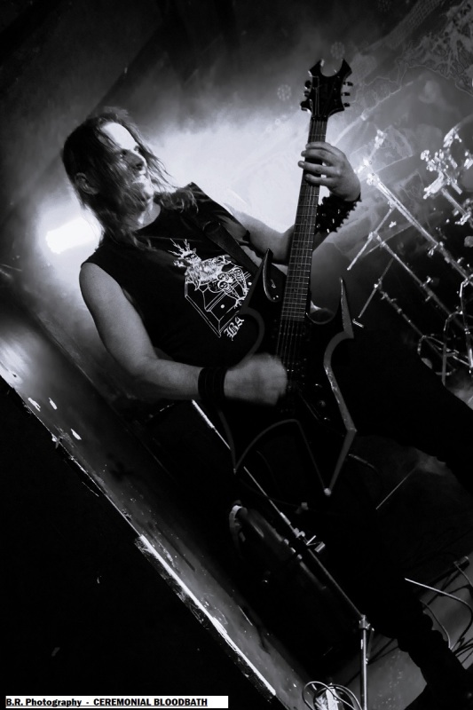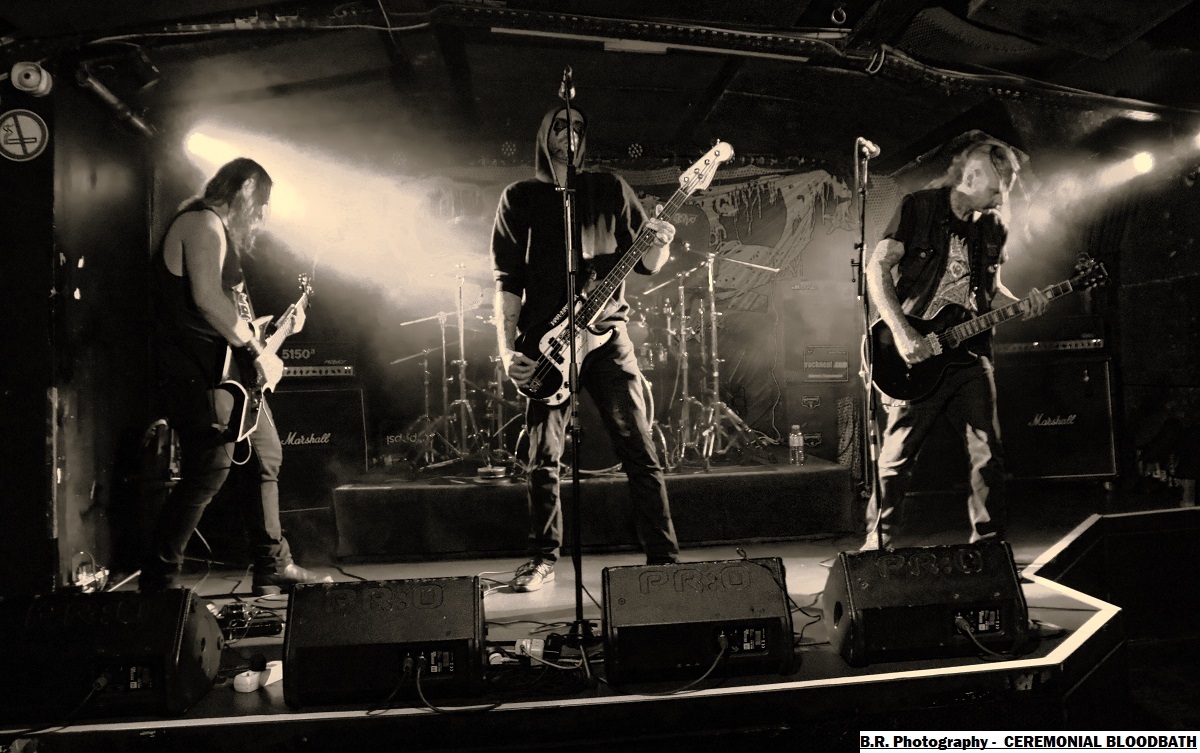 En effet, les Canadiens d'ANTEDILUVIAN et de CEREMONIAL BLOODBATH accompagnés par les frenchies de MIASMES vont, ce Mercredi 27 Août 2025, faire trembler les voûtes du 32 Quai Arloing à Vaise City. Il est 20 heures 30 à l'horloge du RNE lorsque ceux de MIASMES envoient le son. Avec sous leur bras « Vermines » (EP de 2022) et « Répugnance » (album de 2023) ils comptent bien nous percuter la matière grise à l'aide d'un black-metal old-school aux dérives rock n'roll. Les membres de ce trio ont déjà fait leurs preuves dans d'autres formations et cela se sent, se ressent bien évidemment. C'est plein d’énergie, c'est sauvage dirons certains, mais c'est avant tout agressif et bien ficelé. Aucun temps mort notable dans cette prestation « true » et malsaine au demeurant. Belle démonstration ce soir devant un public à l'écoute et appréciant leur set il me semble. Avec la venue sur scène de CEREMONIAL BLOOD BATH nous entrons de plein pied dans une démonstration violente et chaotique où la vitesse d’exécution de leurs compositions semble de ne pas avoir de limite. Ceux de Vancouver nous entraînent illico dans un certain bain de sang (sic) où la haine est palpable de bout en bout. Alors c'est sûrement du « black war » qui nous est jeté en pâture et la destruction de neurones est au rendez-vous. Au départ ce n'est pas facile à ingurgiter soit, mais au fil des titres nous percevons un halo de mélodie, mais à dose homéopathique. Vous voyez ce que je veux dire ? Non, et bien la prochaine fois qu'ils viendrons à Lugdunum ne manquez pas ce mix de black et de death brutal et sans concessions qui vous prend à la gorge, amen ! Ceux d'Edmonton en Alberta, Canada, ANTEDILUVIAN vont nous interpeller grave ensuite à l'aide d'un fond d'écran filmé et d'un dress-code hors du commun. Le trio, guitare, basse, batterie supporte un chant d'outre-tombe qui vous glace le sang, un sang noir bien entendu ! Ici place à l'occulte poussé à l'extrême et à la lourdeur des envois très complexes dans les thématiques proposées, des envois d'une rare bestialité. Antediluvian fait tout pour se singulariser et il nous faut donc un moment plus ou moins long afin d'assimiler une démonstration complètement barrées dans tous les sens du terme. Alors, on adhère ou pas à cette démonstration atypique, mais d'une certaine manière ils ont réussi à nous faire appréhender leur démarche plus ou moins selon que vous êtes ouverts ou pas à leur musique et à leurs textes élitistes. Merci à Moonfog Productions pour avoir invité Pavillon666 à cette messe noire du Mercredi pleine de découvertes. Merci aux trois hordes maléfiques en lice et bien entendu merci encore une fois au Rock n'Eat pour l'accueil ! |