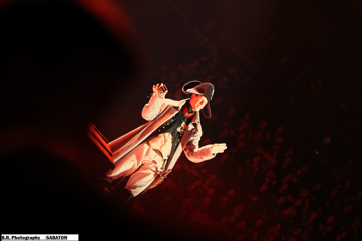 Étant un grand fan du groupe et n’ayant entendu que du bien de leurs prestations scéniques réputées gigantesques, votre serviteur était extrêmement impatient d’être présent ce soir. Et je peux vous dire que je n’ai absolument pas été déçu ! Mais avant cela, parlons de la première partie : The Legendary Orchestra, qui, comme son nom l’indique, est un orchestre reprenant 13 morceaux de Sabaton. Le résultat est saisissant : non seulement les titres gagnent un côté encore plus épique grâce aux chœurs féminins et masculins ainsi qu’aux instruments à cordes, mais en plus la sélection a été pensée pour qu’aucun morceau ne soit rejoué ensuite par Sabaton, évitant toute répétition. Le côté orchestral fonctionne parfaitement, notamment sur « Sarajevo » et « Swedish Pagans », qui clôturent cette première partie d’une main de maître et chauffent idéalement la salle pour la suite… et quelle suite ! Notre attention est soudain captée par une petite scène au milieu du pit, où notre cher Napoléon Bonaparte, très vite rejoint par Genghis Khan et Jules César, nous joue une scénette hilarante sur le thème : qui est le meilleur conquérant ? Très vite, des templiers munis de torches enflammées approchent de cette petite scène, introduisant le morceau « Templars » et l’arrivée du groupe, également habillé en templiers, prêt pour la croisade. Une passerelle descend alors pour relier la petite scène à la scène principale, arborant un immense rempart, et le show peut démarrer. On est immédiatement saisi par l’ambiance générale : effets pyrotechniques, costumes des templiers, fosse déjà en ébullition, refrains chantés à gorge déployée… C’est simple : c’est une immense cérémonie guerrière et historique qui nous en met plein la vue et les oreilles. La scénographie est jouissive, portée par les différentes ambiances et les costumes portés par Joakim et les autres membres du groupe, reflétant les différentes guerres et époques évoquées dans les morceaux. On pense notamment à « Carolus Rex », où Joakim arbore une superbe tenue suédoise du XVIIᵉ siècle, ou encore à « A Tiger Among Dragons », où des habits traditionnels chinois sont de sortie. Mais l’impact vient aussi de la qualité scénique globale : des flammes à foison, un light show impressionnant, des détonations, des personnages historiques qui reviennent sur scène comme Napoléon (« I, Emperor ») ou César (« Crossing the Rubicon »), sans oublier les deux écrans géants de chaque côté de la scène… Impossible de ne pas être bluffé. La réputation scénique des Suédois n’est plus à prouver. Mention spéciale à « The Attack of The Dead Man », où un homme muni d’un masque à gaz descend de la scène pour rejoindre la fosse accompagné du groupe, et à « Christmas Truce », sublimé par le retour de l’orchestre sur scène. La setlist est un peu plus tournée vers Legends (dernier album en date oblige), avec 8 morceaux sur les 18 joués issus de cette nouvelle galette. Mais les hymnes habituels du groupe sont bien évidemment présents, notamment « Primo Victoria » ou « To Hell and Back », qui ont littéralement fait sauter toute la fosse du début à la fin. Mes préférences personnelles vont à « Stormtroopers », avec un solo d’anthologie, et « Soldier of Heaven », qui possède selon moi l’un des meilleurs refrains jamais écrits par Sabaton. Le show se termine sur « Master of the World », et l’on ne peut que saluer bien haut le travail de Sabaton, qui nous offre ici un parfait mélange de morceaux épiques, de puissance, de contexte historique et de générosité scénique. Un immense bravo ! Merci à Eldorado pour l’organisation de cette date et les accréditations, à mon confrère Black Roger pour les magnifiques photos, et bien sûr merci à The Legendary Orchestra et à Sabaton pour ce fabuleux concert ! |