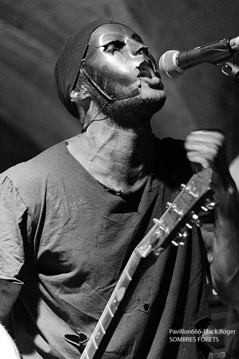 Du monde sur scène maintenant avec SOMBRES FORETS, deux guitaristes, un bassiste, un batteur et un chanteur/guitariste pour nous emmener au Québec dans les grandes immensités noires et magiques d’une nature sauvage peuplée d’arbres séculaires et d’entités mystérieuses peuplant les lieux. Encore des masques pour les musiciens vêtus de haillons avec une forte présence scénique qui rameute contre la scène tout le peuple black venu ce soir dans ces lieux pour être comme envoûtés. SOMBRES FORETS vient de sortir son nouvel opus «La Mort du Soleil » et tourne actuellement en Europe, et nul doute que ces shows remplis d’émotions fortes vont attirer un nombreux public comme ce soir à St-Etienne, malgré le fait que nous soyons encore en août et un jour de semaine qui plus est. Car ce soir à St-Etienne, le black métal dépressif, très mid-tempo dans les envois, très mélancolique, n’a jamais lassé tout au long de la prestation. Musicalement excellent, ce black-métal ne s’enferme pas dans les lenteurs du doom et sait par moment instiller judicieusement des parties accrocheuses en diable qui nous font adhérer pleinement à leur démarche très personnelle au final, on aime. Retour sur Lyon après s’être donc abreuvé à la source noire d’un concert black-métal intense où des formations plutôt originales nous ont remplit les entrailles de textes et de sons au demeurant très intéressants.