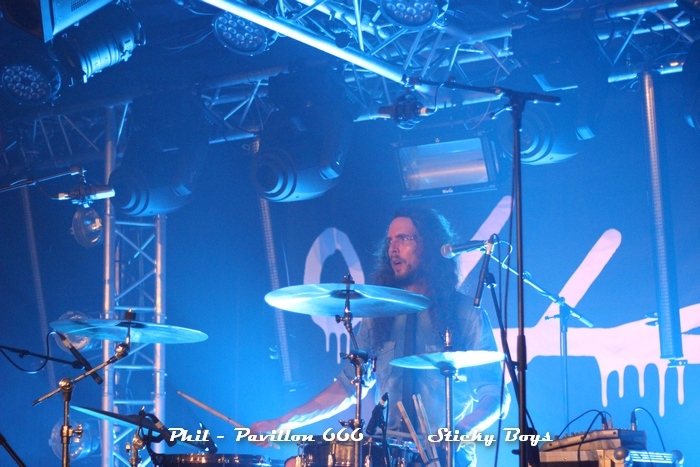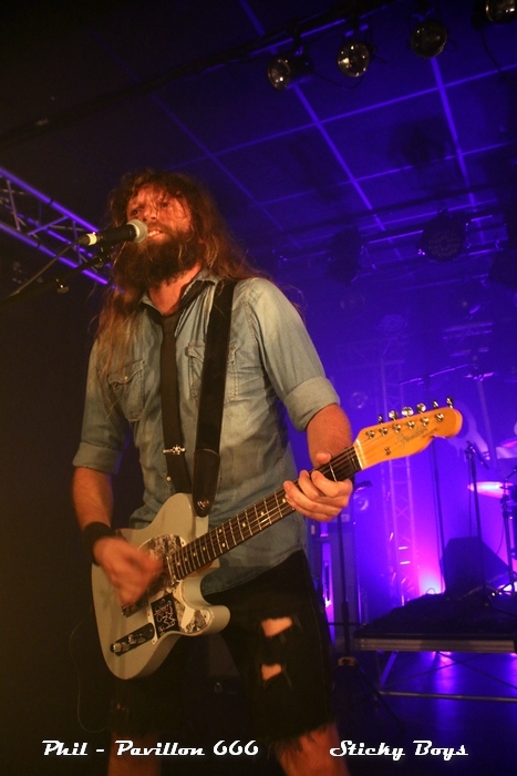 Le troisième assaut métallique est donné par Sticky Boys. Le trio ne met pas longtemps à s'élancer, quelques accords suffisent à Alex, J.-B. et Tom pour finir l'ébullition à l'intérieur du Chaudron. Pas de fioritures, Alex a un franc parler et aime communiquer, avec son compère J.B les deux musiciens headbanguent, arpentent l'espace de fond en comble tout en distillant une liqueur à base des riffs incisifs hard bluesy et de basse ronronnante. Tom mène la danse derrière ses fûts sans faux pas. Les compositions sont toujours accessibles, directes et entrainantes. Le trio s'amuse sur la scène, avec le public et mouille la chemise. La communion et le partage avec la fosse sont évidents et flagrants. Avec un set d'une heure, les Stickys Boys visitent les deux albums édités par le groupe dans un esprit rock dans toute sa splendeur. Simple, efficace et carré... un bon compromis de hard traditionnel pour la musique et agité façon heavy metal pour l'attitude.