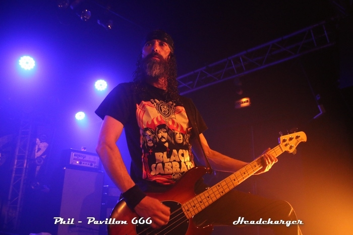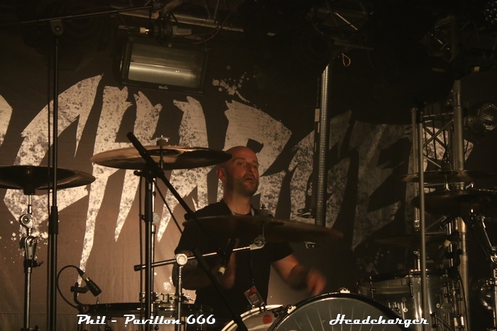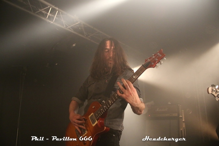Il ne faut pas compter sur Headcharger pour faire redescendre la température dans la salle. Les Normands survoltés par leurs prédécesseurs envoient du lourd et prolongent le propos engagé depuis le début de la soirée. Le quintette dégage puissance, énergie et aisance sur la scène. Sans artifices, les musiciens évoluent à l'énergie, à la sueur du front comme laisse paraitre le visage de Sébastien (chant). La furie gagne toute la salle que l'on soit du côté public ou du côté scène. La communion est parfaite, Headcharger sait tenir en haleine ses fidèles simplement avec une prestation carrée et une maitrise d'interprétation. Du vrai rock'n'roll en quelque sorte. Le duo de six-cordistes se complètent dans les rythmiques et assurent des soli efficaces, son clone dédié à l'assise rythmique bastonne sans frémir. Le set d'un peu plus d'une heure défile sans temps morts, ravageant tout sur son passage. Lorsque les décibels s'arrêtent pour ne plus revenir, chacun est en mesure de confirmer qu'il a passé une soirée agréable et passionnante.