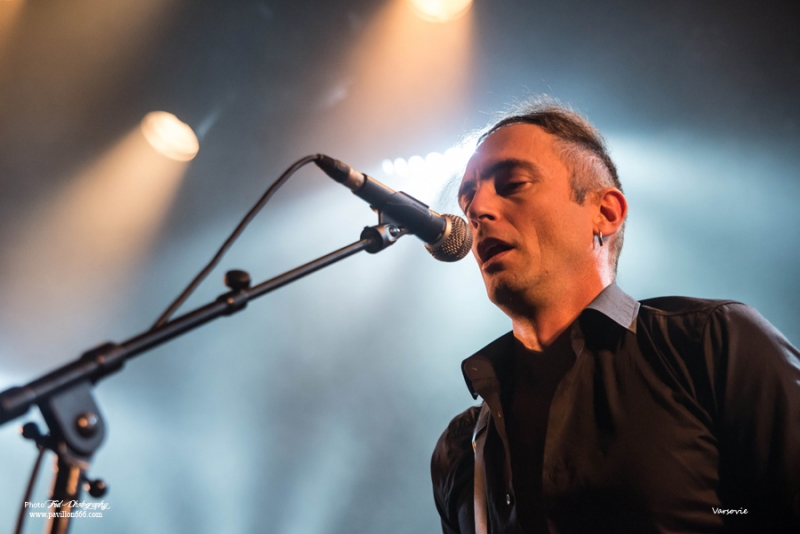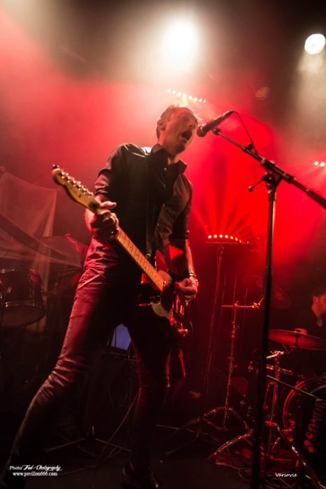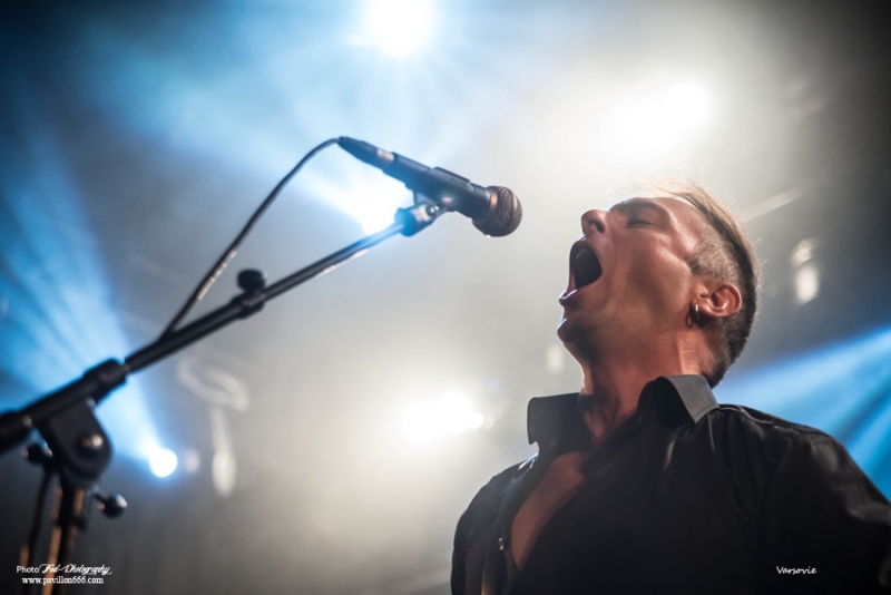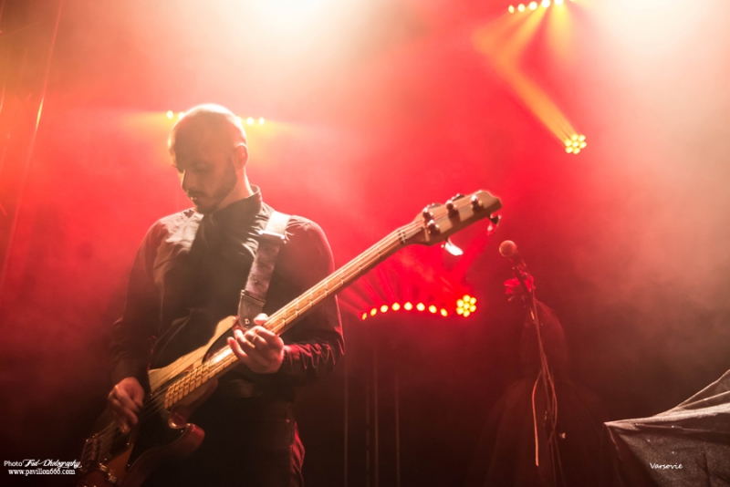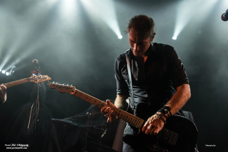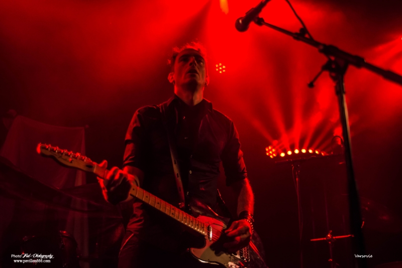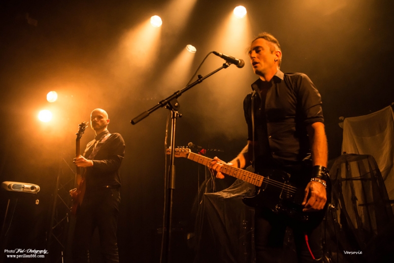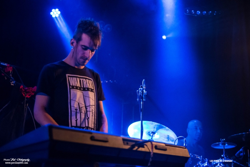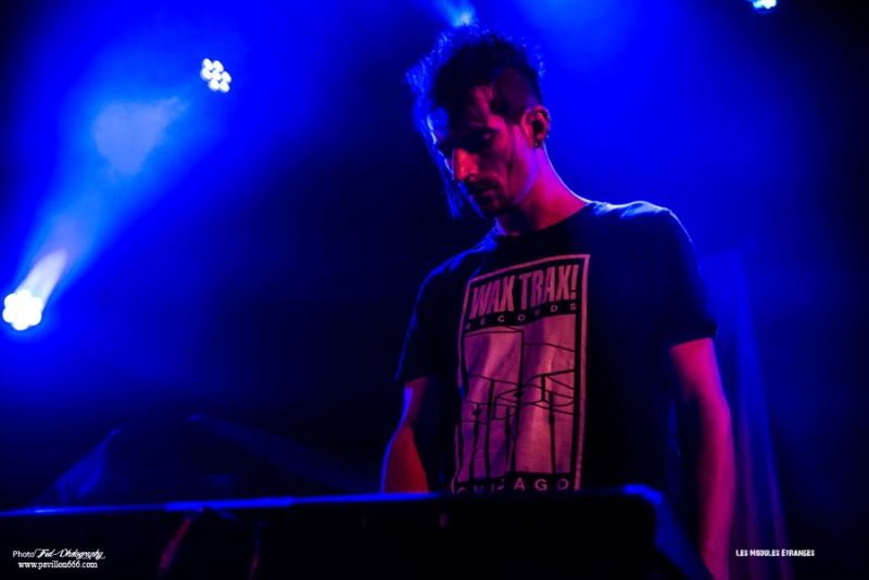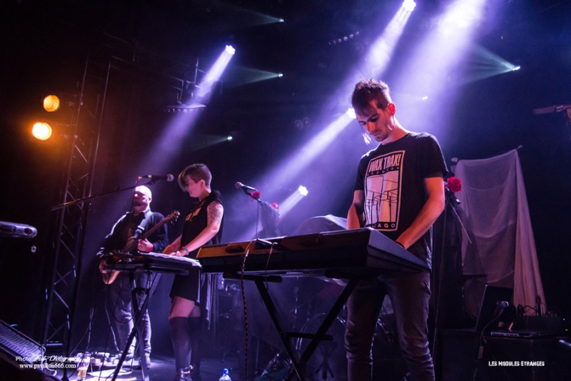 Début de soirée plutôt calme avec Les Modules Etranges. Le groupe Nantais, malgré un set bien ficelé, peine à motiver la salle encore un peu vide en ce début de soirée. Ils font partie de ces artisans de la scène dark qui malgré les difficultés pour exister et continuer (le groupe s’était séparé en 2013) délivre une musique classieuse, avec sa propre identité et qui ne cherche à aucun moment à surfer sur les modes. A mi-chemin entre les cures et Cocteau twins, Siouxsie n’est jamais non plus très loin, les modules étranges réussiront à installer l’ambiance sombre nécessaire à la réussite de cette soirée avec un petit florilège de leurs meilleurs morceaux : Surgery girl, Mental pop-up, entre autres.