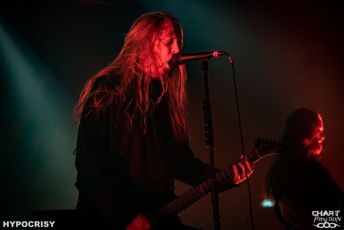 Après un changement de plateau et un morceau d'AC/DC pour la mise en bouche, HYPOCRISY arrive sur la scène du Kao avec « Worship », issu de l'album du même nom paru en 2021. Il aura fallu du temps avant de revoir HYPOCRISY en tête d'affiche. Peter TAGTGREN ayant été occupé par PAIN et LINDEMANN ces dernières années, HYPOCRISY était passé en retrait. Cela n'a pas toutefois pas empêché le groupe de passer par Lyon en 2018 en compagnie de KATAKLYSM. Mais c'est fois, c'est en tête d'affiche que HYPOCRISY est de retour et il tient bien à nous rappeler qui sont les patrons du death metal mélodique. Certes, c'est fait de manière naturelle mais entre le son, les lumières et la présence des musiciens, on se dit que HYPOCRISY est au top. On regrette évidemment l'absence de Horgh derrière les fûts mais Henrik AXELSSON de THE CROWN fait le job. Le résultat est un set en forme de best of avec un équilibre entre morceaux rapides et morceaux plus imposants. On relève entre autres « Fire In The Sky », « Eraser », « Inferior Devoties », « Until The End » ou encore « End Of Disclosure ». On n'oublie pas non plus les nouveaux avec « Chemical Whore », « Children Of The Gray » et « Worship ». HYPOCRISY pioche dans ses différentes périodes et non offre un concert impeccable comme un rouleau compresseur qui se termine par un final d'anthologie avec « Fracture Millennium », « Impotent God », « Adjusting The Sun » et enfin l'incontournable « Roswell 47 ».
