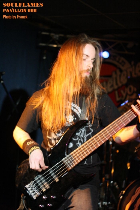 Au programme ce soir, quatre groupes aussi différents les uns que les autres, avec une grosse tête d’affiche, les Grecs de Raw In Sect, sans oublier les Lyonnais de The Arisen qui font la release de leur EP « Rising Times ». Le début de la soirée tarde un peu car ça patine point de vue technique et les derniers réglages sont longs à faire. Ce sont donc les Lyonnais de Soulflames qui vont ouvrir le bal. Ils sont bons ces petits Lyonnais et ils envoient déjà du lourd. Sur scène, leur musique possède vraiment un bon groove et ils déroulent un très bon death metal mélodique tout au long d’un set qui est déjà bien au point. David et Julien se partagent les assauts de guitares entre rythmiques et solos et les riffs fusent sur la crête de sons bien saturés. A la batterie, c’est Thibault qui envoie le tempo et son coup de baguette est rapide. Sylvain à la basse, que l’on retrouvera également sur scène avec The Arisen, assure des lignes mélodiques d’enfer avec sa 5 cordes. Arnaud, c’est le frontman et il envoie sévère le garçon, on ne peut pas dire qu’il ne mouille pas le maillot. Sa prestation vocale est un véritable aboiement digne des chiens de l’enfer. Il est sans cesse en mouvement et n’hésite pas à aller au contact du public, ni non plus à aller carrément dans le public pour inciter tout le monde à bouger. Il fait une excellente prestation et du coup hausse le groupe de plusieurs crans quant à leur prestation scénique. Les Soulflames sont un nom à retenir, je pense que nous les reverrons très bientôt. Le second groupe à prendre la main sont les Stéphanois de Burn Your Karma. Rien qu’au son, on sent déjà le groupe plus expérimenté. Un très gros son, un super bon metal très groovy, attention, ça castagne à mort. Le quintet de Sainté est vraiment un groupe très accrocheur. Ils vont nous faire une excellente prestation scénique. Les guitares de Julien et de Bertrand ont un son totalement monstrueux. A la basse, Benoît cogne sur son instrument comme si c’était une batterie. Laurent à la batterie ne sert pas de ses fûts comme une basse mais plutôt comme d’un véritable défouloir où il allie puissance et régularité. Burn Your Karma à l’expérience de la scène et cela se voit et s’entend. Ils ne lâchent rien et nous tiennent en haleine jusqu’à la fin de leur set. Seules quelques petites phrases tombent teintées d’humour avec quelques petits pics bon enfant et le tout enrobé d’une excellente musique. Xavier au chant est un frontman impressionnant. En tout premier lieu par sa stature, mais surtout grâce à sa voix vindicative et sauvage. C’est un véritable orage qui gronde lorsqu’il s’empare du micro. Il est toujours en mouvement et exhorte sans cesse le public à s’approcher de la scène et à bouger. Ce groupe possède vraiment un bon feeling et tous les aficionados de Pantera, Lamb Of God ou autre Soulfly y retrouveront leurs billes. C’est au tour d’une des affiches les plus attendues de ce soir d’entrer en scène : The Arisen. Nous ne présentons plus certains membres qui composent ce combo, comme Kevin Paradis à la batterie ou encore Jordan Bonnevialle, guitariste de Deathawaits. Enfin bref, il y a du beau monde sur scène, ou du moins des personnes qui ont du talent. Ce qui est d’autant plus impressionnant c’est qu’il s’agit là de la seconde prestation scénique de The Arisen qui sort déjà son premier EP. C’est vous dire le niveau. Les garçons ont sorti l’artillerie lourde pour le set. Jordan est armé d’une 8 cordes tandis que Clément n’en a que 7. C’est normal, il est moins grand et moins balèze que Jordan, donc moins de cordes. Trêve de plaisanterie, ça envoie du lourd dès les premières mesures et c’est vraiment du technique de chez technique. Alors après je suis d’accord, ce n’est pas forcément tout le monde qui va accrocher, mais lorsque l’on veut bien se donner la peine d’écouter attentivement, il y a une richesse musicale chez The Arisen qui est impressionnante. Je me permets de les comparer à ce que fait actuellement Carnage Of Children. A quelques détails près ils sont sur la même longueur d’onde. Il faut juste que Carnage retrouve un nouveau chanteur. Jordan au chant, ça le fait très bien. De la grosse voix death à la voix la plus claire en passant durant le set par tout un stade de niveaux de voix. Ce que fait Jordan est vraiment intéressant et colle carrément à l’empreinte sonore de The Arisen. J’espère qu’ils ne vont pas y toucher et tout laisser comme ça car cela fonctionne très bien. Par contre, techniquement et là je parle pour les compositions, c’est rude. Les morceaux sont en effet particulièrement complexes à interpréter. Il y a beaucoup de ruptures de rythmes et les guitares aux accordages graves contrastent avec les lignes mélodiques utilisant le système tonal. A la basse, c’est le même service. Sylvain Colon que nous avions déjà entendu en début de soirée avec Soulflames est lui aussi monté de plusieurs crans à la basse. Vocalement, il est également présent, assurant les contrechants derrière la voix de Jordan. Les compos de cet EP jouées sur scène prennent une autre dimension et s’inscrivent au rang des réussites du moment sur la scène death progressive. Avec les expériences personnelles et cumulées des quatre membres de The Arisen, ce set est un sans faute et une release party qui remplit donc toutes ses promesses. Pour clôturer cette soirée, ce sont les Grecs de Raw In Sect qui vont entamer leur set. C’est la grosse affiche de ce soir avec The Arisen et ils sont attendus, surtout par moi qui ne les connais que de youtube et qui attends avec impatience de voir ce que cela donne sur scène. C’est parti, les Grecs partent à l’assaut avec une musique qui dépareille vraiment avec les groupes qui les ont précédés. Nous sommes dans un metal purement progressif 