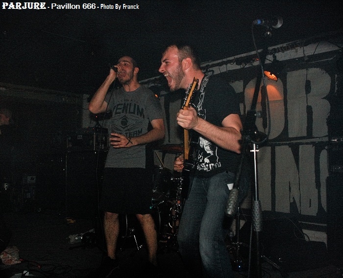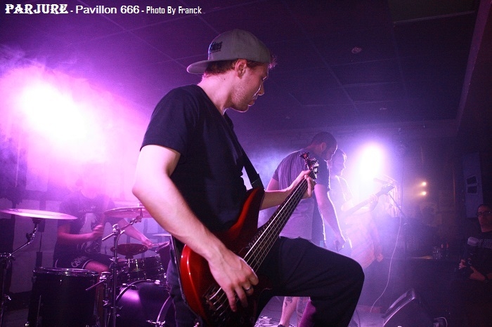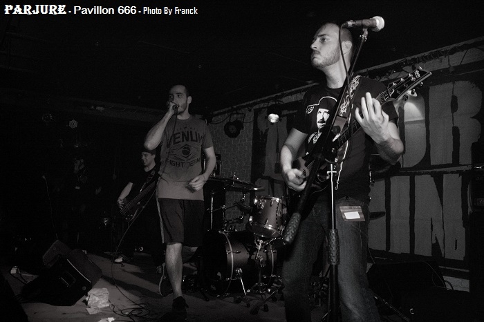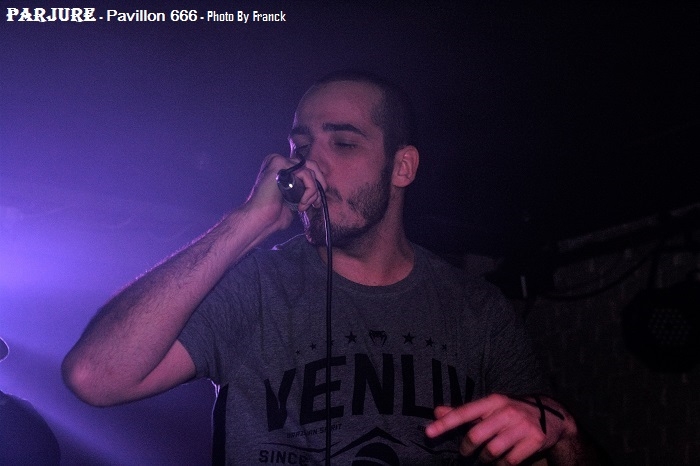 J’aime autant vous dire que lorsque ça a démarré, ce n’était pas du diesel. Radio Metal Sound ainsi que la totalité des groupes ont mis direct le pied sur l’accélérateur et je peux vous garantir que c’est pied au plancher que se sont enchaînés les sets des six combos en présence. La soirée démarre donc en force avec nos coreux locaux de Pit Disorder qui ne vont pas nous ménager les tympans en débutant cette soirée avec un gros set. Nos lyonnais sont en forme et c’est parti pour le gros son et d’emblée ils vont placer la barre assez haut et ça va être au tour des cinq autres groupes de faire aussi bien. Leur hardcore épais et furieux déchaîne déjà le pit où les séances hardcore, muscles et karaté commencent. Le chant rageur de Boris sait faire toute la différence et invite le public à se remuer. Pit Disorder a trouvé en la présence de Damien une guitare qui donne l’effet de coups de haches avec disto californienne totalement énorme à l’appui. La section rythmique composée d’Alex à la Basse et de Bij à la batterie est époustouflante. Ca cartonne un maximum comme à l’ancienne et c’est ultra puissant. Les garçons ne ménagent pas leurs efforts et sont déjà trempés comme des rats. Au Blogg ce soir, pas besoin de chauffage, dès le set de Pit Disorder c’est déjà une loge de sudation. Franchement, nos quatre lyonnais assurent à mort avec ce premier set hardcore extrême plutôt enlevé. On ne peut que se féliciter d’avoir un tel groupe dans notre ville. Vivement leur prochain concert !! En attendant, vous pouvez les retrouver via leur page facebook et découvrir leur premier Ep téléchargeable en ligne. https://www.facebook.com/PitDisorder/?fref=nf Les changements de plateaux vont aller à toute allure ce soir. J’aime autant vous dire que sur scène, ça pulse et ça transpire dur. Radio Metal Sound essaye de récupérer le temps perdu histoire de finir sans dépasser la marge et franchement ça le fait. Un coup de « one, two », « one, two » dans les micros, deux ou trois riffs à la basse et aux grattes, un sextolet sur la caisse claire, « boum, boum, boum… » un peu de pédale de grosse caisse et ça y est c’est parti. Ce sera le même menu express pour tout le monde ce soir. C’est donc reparti avec Parjure aux commandes et leur hardcore incisif a l’accent metal tranchant de chez tranchant. Oscillant entre le punk hardcore, le metalcore avec une pointe de death et le tout bien toasté, Hugo balance dans son micro des textes totalement enragés. Je me garde toujours de faire des comparatifs musicaux avec des tas d’autres groupes car j’estime que chaque groupe a sa propre empreinte, même un cover band. Et chez les savoyards de Parjure pour avoir de l’empreinte, il y en a. Parjure possède une très forte identité musicale surtout dans cette façon qu’ils ont d’interpréter leurs titres où les voix se répondent en permanence les unes aux autres, c’est un ensemble cohérent qui donne une grande force à l’image du groupe sur scène. C’est un groupe qui a de la puissance, les fondations sont solides et chaque riff vous écrase. Musicalement c’est impeccable, le son est également d’enfer, toutes les conditions météos sont réunies pour se prendre en pleine tronche un nouveau set absolument énorme et Parjure l’a fait, ils ont donc tenu leur serment… Si vous ne connaissez pas Parjure, alors c’est une erreur et pour vite combler cette lacune, vous trouverez leur lien Bandcamp ci-dessous pour vous en mettre plein les oreilles. http://parjure.bandcamp.com/album/keep-your-elbows-straight Encore un changement express de plateau et là, ce qui nous est tombé dessus les amis, c’est presque la foudre ou tout comme. Il s’agit des Stinky, un groupe résolument énorme originaire de Clisson. Toutefois ils ne seront pas au Hellfest, mais plutôt à l’Xtrême Fest du 29 au 31 juillet à Albi. Emmené par Claire au chant, ce combo vous retourne littéralement les tripes. La scène du Blogg va totalement prendre feu sous les baskets de la jeune chanteuse qui fout sans modération ses propres tripes sur les planches et c’est à nous de faire le tri au beau milieu de tant de puissance, c’est phénoménal. Claire hurle tout ce qu’elle a dans les abysses de son cœur et l’ouragan sonore se déchaine autour d’elle. Les textes ne sont pas bidons, ils sont vraiment poignant et démontre bien que le hardcore n’est pas réservé à des bourrins au crane rasé, en short NBA et tatoués de partout. Il peut y avoir dans les textes une vraie force qui découle d’une certaine fragilité et d’une poésie sombre et désenchantée. Ainsi des titres comme « Tears in the rain » ou encore « Between lies and life » et j’en oublie, sont les témoignages vivant du message que le hardcore aussi violent soit-il, peut faire passer. Les Stinky sont tout à fait dans l’esprit d’All For Nothing et de ce que Cindy essaye de transmettre au public. Il y a là dedans une forme de pureté et de simplicité qui est en parfaite cohésion avec l’énergie de la vie elle-même. Et de l’énergie, croyez moi que sur scène il y en a. Voyant à chaque titre le set monter en puissance, j’ai cru à un moment que tout allait disjoncter. Claire est de partout à la fois, sur scène, dans le public, chacun de ses mots percutent l’auditoire. Les autres musiciens sont au taquet et tous d’un excellent niveau. Seul un des guitaristes assure chœurs et contre chants donnant appui et réplique au chant de Claire. Les Stinky pratiquent un hardcore mélodique et sauvage aux tendances plus traditionnelles, bien que l’on soit déjà dans les concepts modernes du hardcore qui découlent de Madball. Les Stinky ont sorti un magnifique album en 2015, « Against Wind And Tide » qui sera bientôt chroniqué chez Pavillon 666. Afin de découvrir ce groupe résolument énorme qui dans l’avenir est destiné à pre
